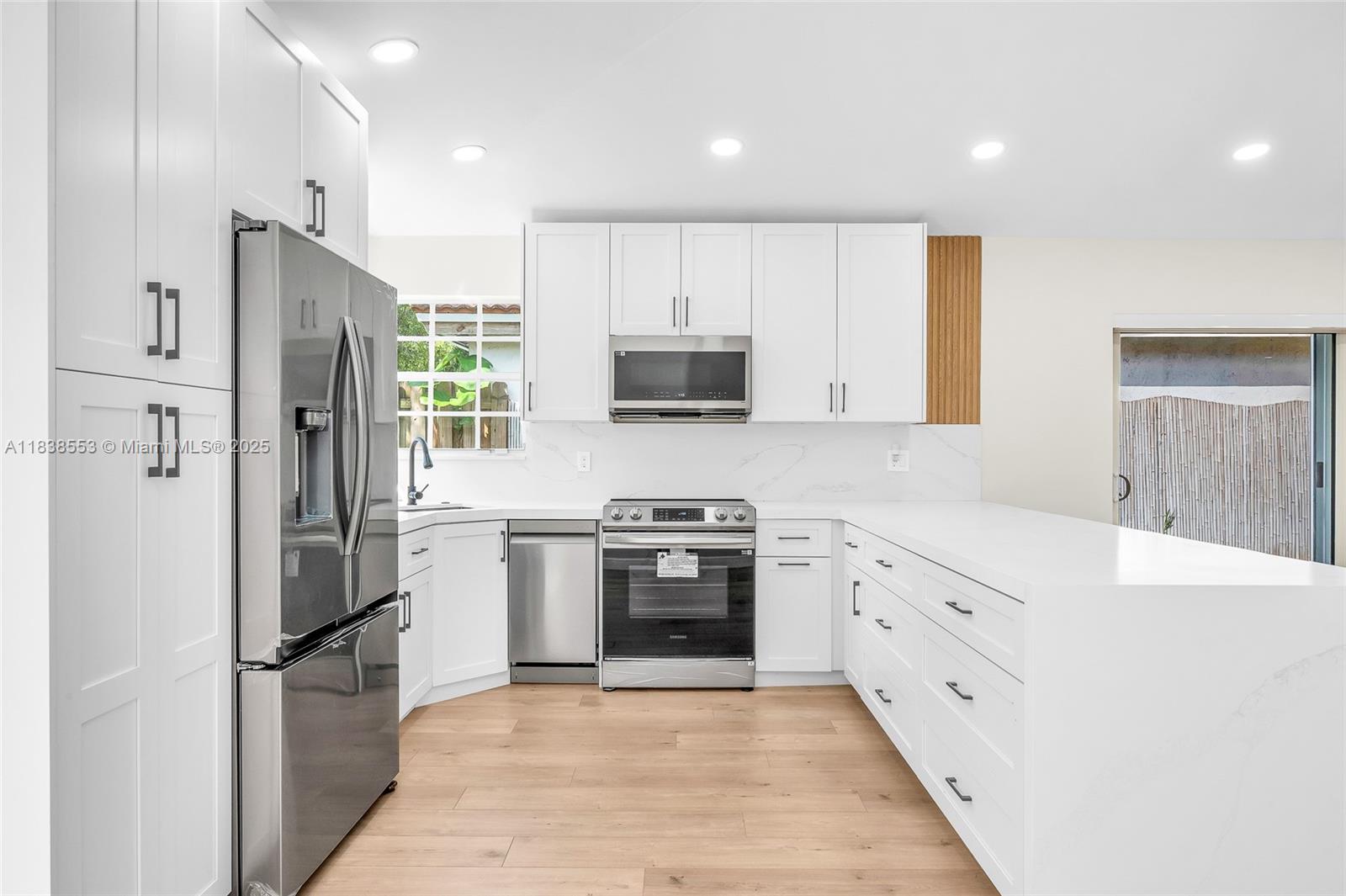 Seller Motivated! Welcome to this fully renovated 3/2 home in the desirable Sawgrass Plantation! Savings from day one! Insurance ready with 2022 roof and impact windows. This stylish residence features an open layout with a spacious family room, quarts countertops, white shaker cabinets, new stainless steel appliances, and an oversized peninsula perfect for entertaining. Hardwood floors throughout. The spa-inspired primary suite offers a freestanding soaking tub, updated closets, an sleek lighting. Additional upgrades include new AC ducts, updated plumbing and electrical, fresh paint, new baseboards, and a new washer/dryer, and new sod with fenced yard.Low HOA $96 mo paid quarterly. Prime location near Sawgrass Mills, I-595, I-75, this home offers unbeatable style, convenience, and value.