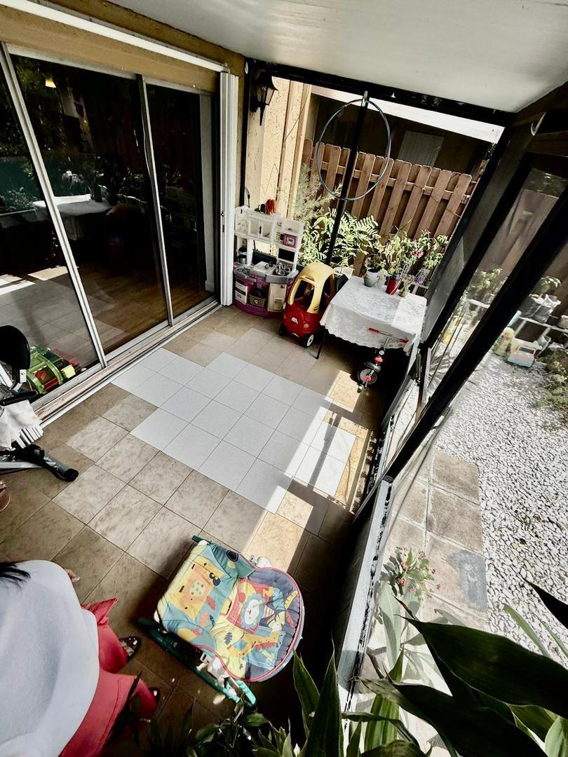 Spacious 3-bedroom, 2.5-bath two-story condo offering 1,428 sq ft of interior living space. The first level features a bright living and dining area, tile flooring, and a kitchen with updated countertops, cabinetry, and an extended serving bar. A half bath and laundry room are also located downstairs. Upstairs includes three bedrooms with wood-style flooring and two full bathrooms, including a tub/shower combo. The primary suite offers generous space and closet storage. Enjoy a screened-in patio and fully fenced garden area with outdoor access. Assigned parking included. Centrally located near schools, major roads, and shopping centers.
