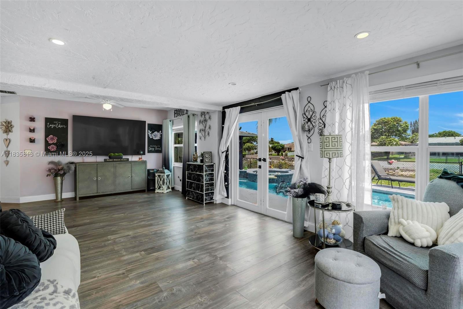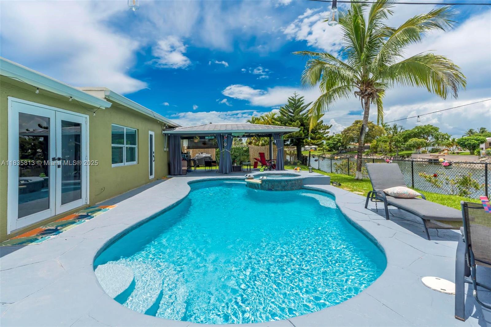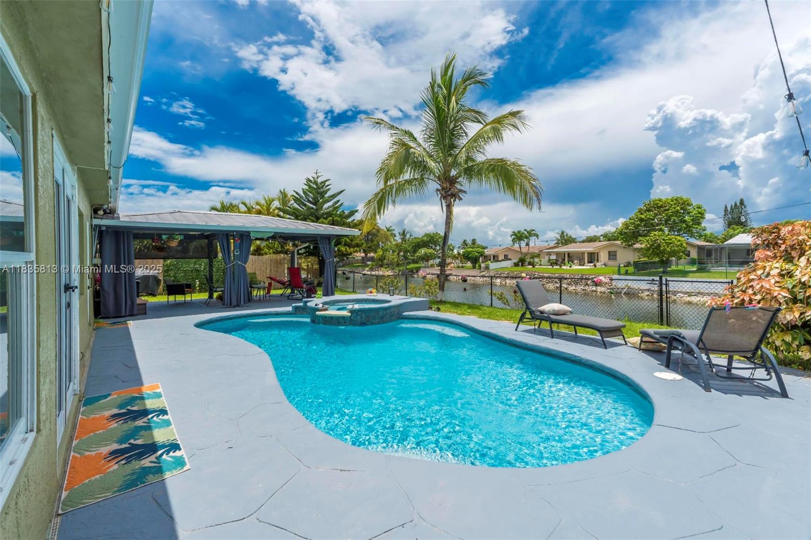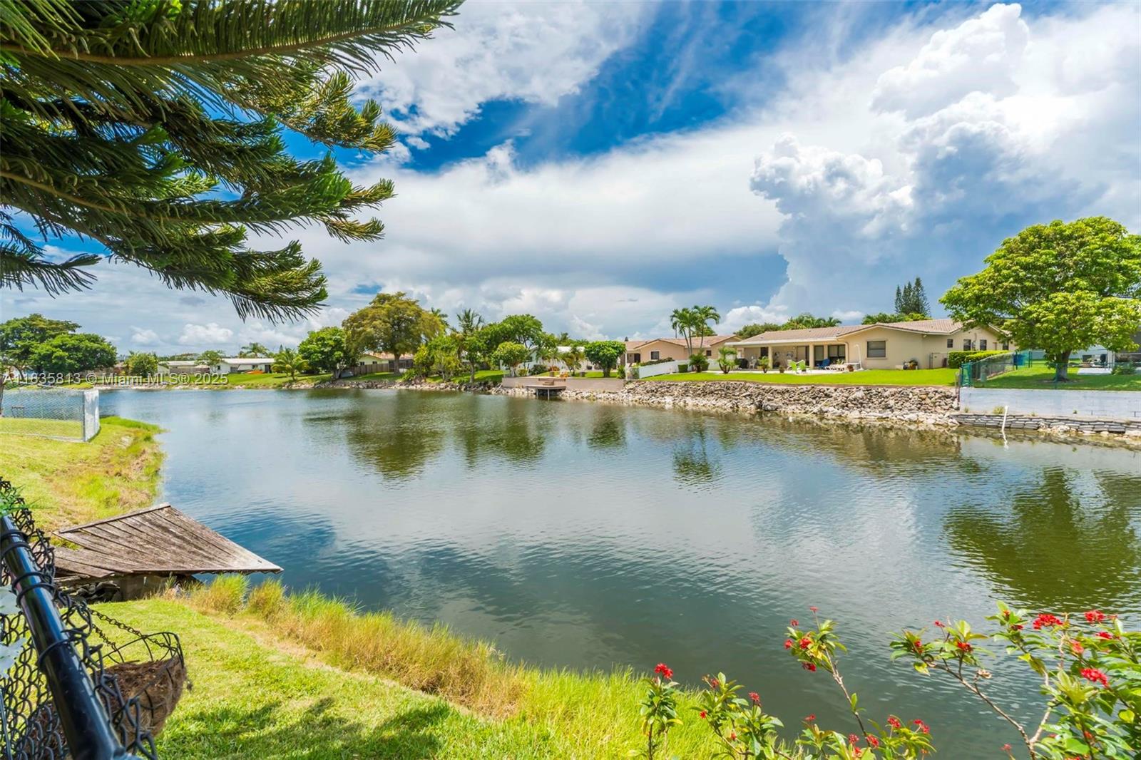 Make this gorgeous 3/2 waterfront pool home yours today! This lovely home has everything you need. Relax in the backyard by the pool overlooking the lake. Updates throughout the entire house. Large family room overlooking the pool and water. New roof, new AC unit, new water heater. Primary suite features large custom bathroom which cabanas out to the pool area. Bathroom fully updated accompanied with a bidet and his and hers sinks. Hurricane Impact windows throughout the whole house including doors. Washer and dryer in the garage. Covered patio with bar area all overlooking the pool and water. Pool features a spillover spa. Don't miss out on this gem!!