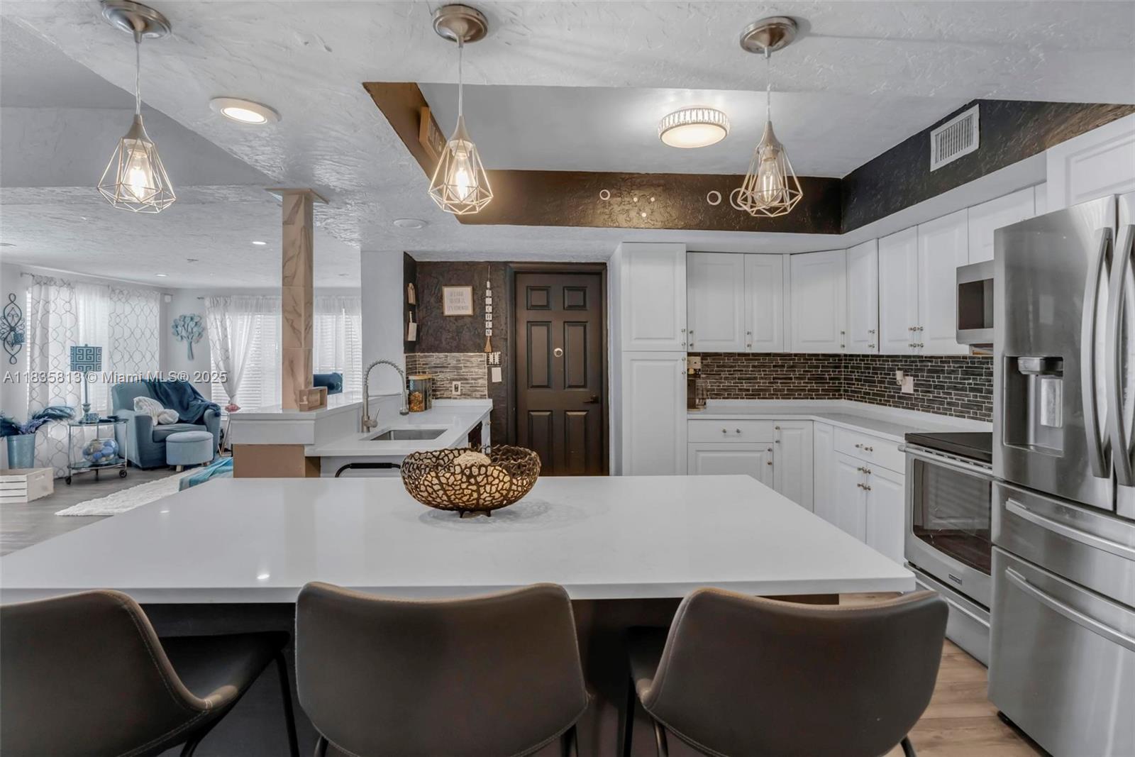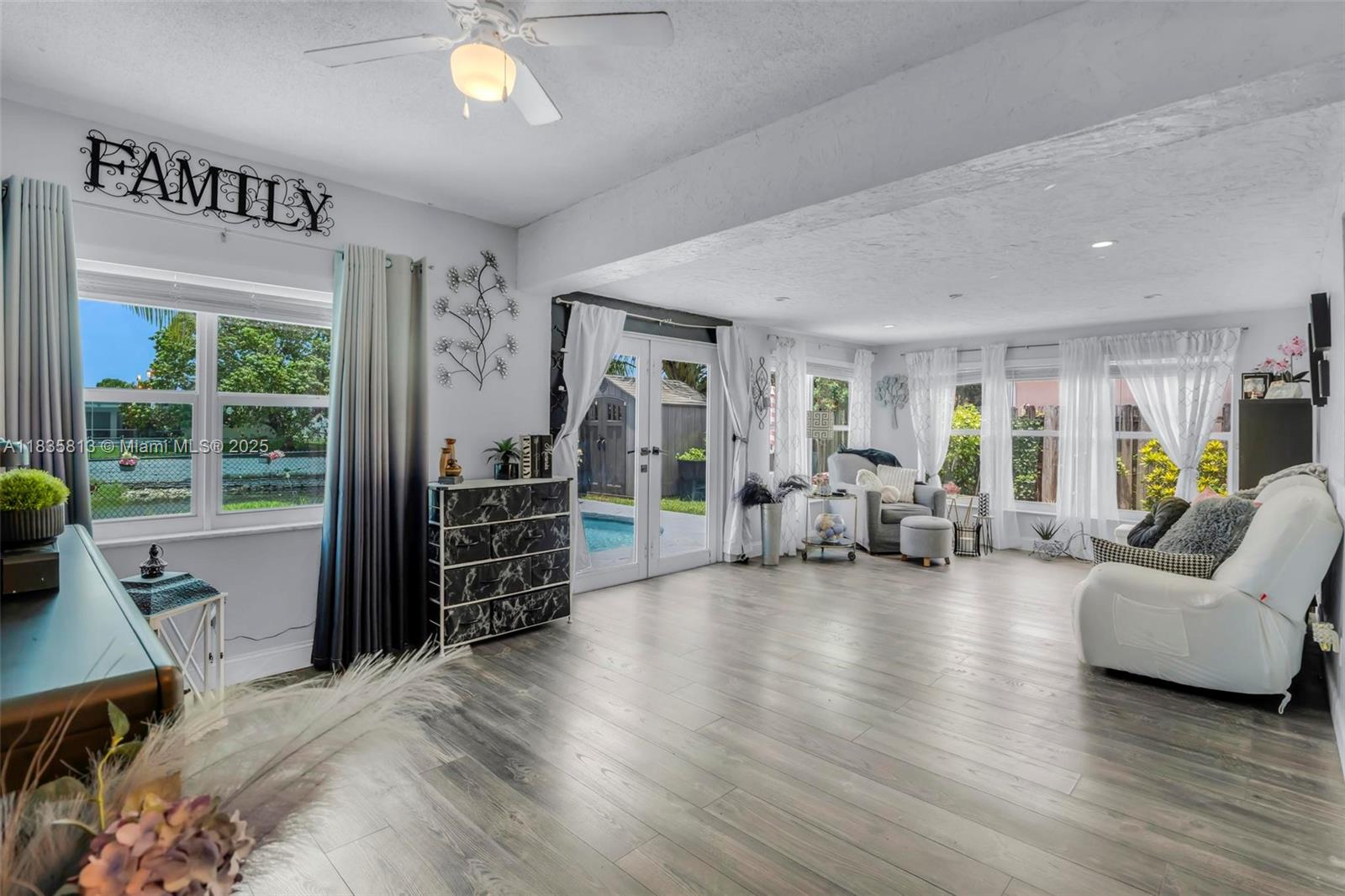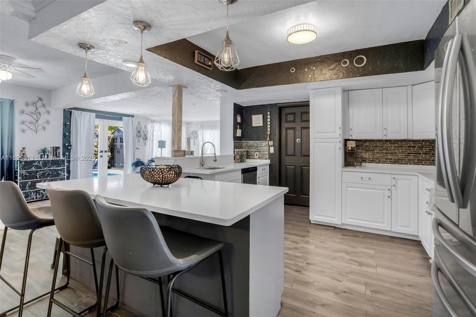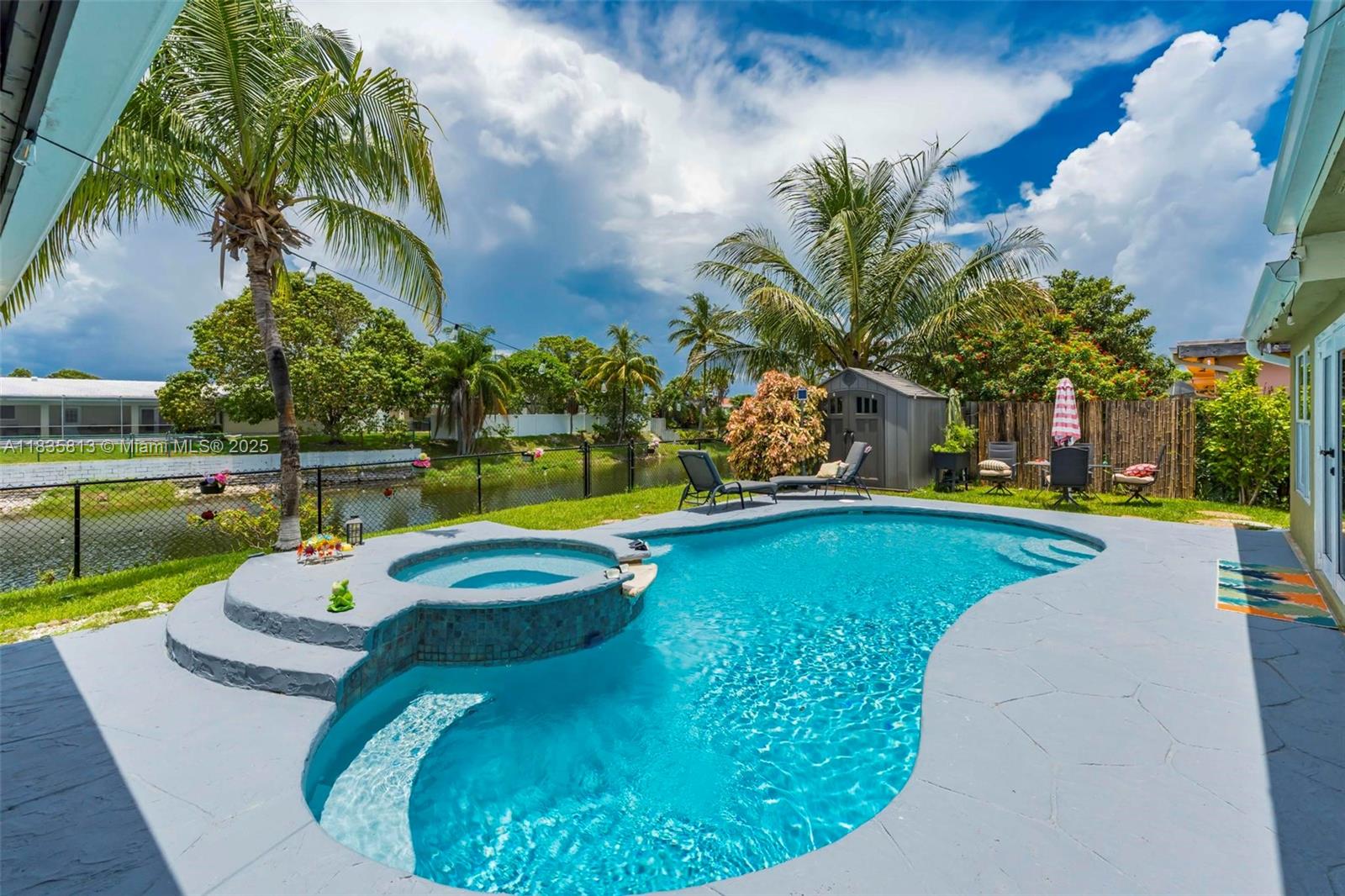 Make this gorgeous 3/2 waterfront pool home yours today! This lovely home has everything you need. Relax in the backyard by the pool overlooking the lake. Updates throughout the entire house. Large family room overlooking the pool and water. New roof, new AC unit, new water heater. Primary suite features large custom bathroom which cabanas out to the pool area. Bathroom fully updated accompanied with a bidet and his and hers sinks. Hurricane Impact windows throughout the whole house including doors. Washer and dryer in the garage. Covered patio with bar area all overlooking the pool and water. Pool features a spillover spa. Don't miss out on this gem!!