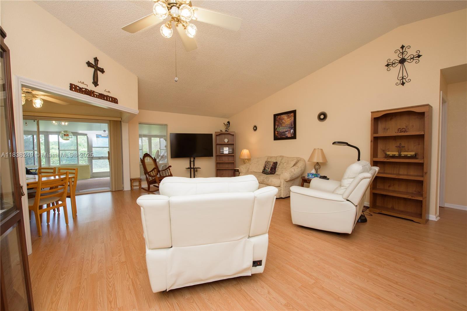 Looking for a motivated buyer for this Beautiful 3 BR/2BA split-plan home in gated Northgate Village at Keys Gate. This home has a super large driveway (4 Cars) and garage with ladder access to attic storage. Walk Through your screened front porch to a spacious living room that opens through triple sliding doors to a large 45'x13' covered patio with vinyl sliding windows. There is also access from primary suite which has dual vanities, walk-in closet, and shower. The kitchen has side patio great for grilling and pass through to the dinning/extra are - (office, games) 2 remaining guest rooms share a bathroom with a tub. Enjoy resort style living with access to the beautiful clubhouse with gym, sauna, pool, jacuzzi, billiards, library, and so much more. The HOA includes WIFI, Direct TV, Monitored Alarm - Gated and roving manned security along with lawn maintenance and exterior house painting - new water softener (2024) 4 Ton A/C (2025) and water heater 2020. PROOF OF FUNDS AND/OR PRE-APPROVAL LETTER REQUIRED PRIOR TO SCHEDULING A SHOWING OF THE PROPERTY!