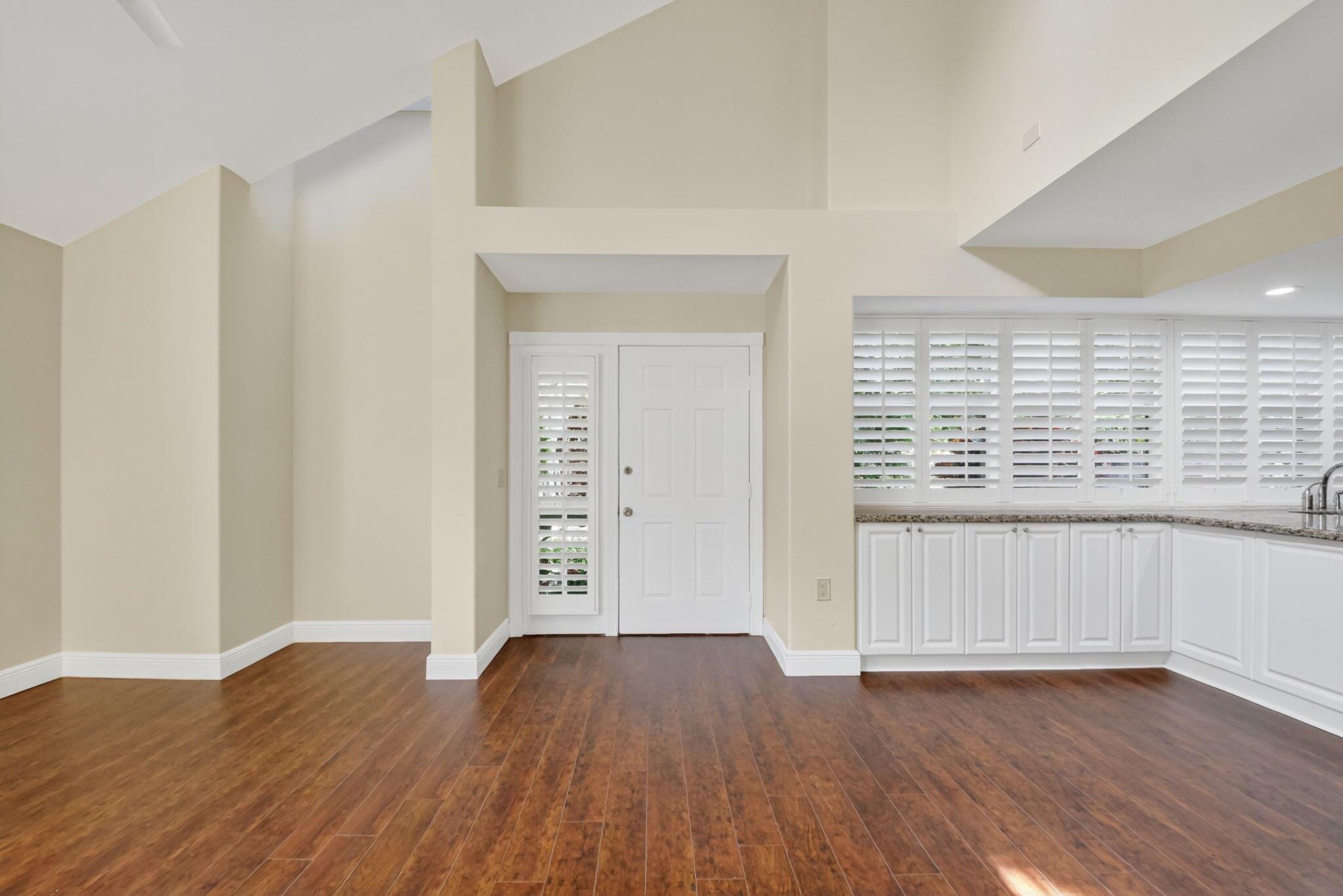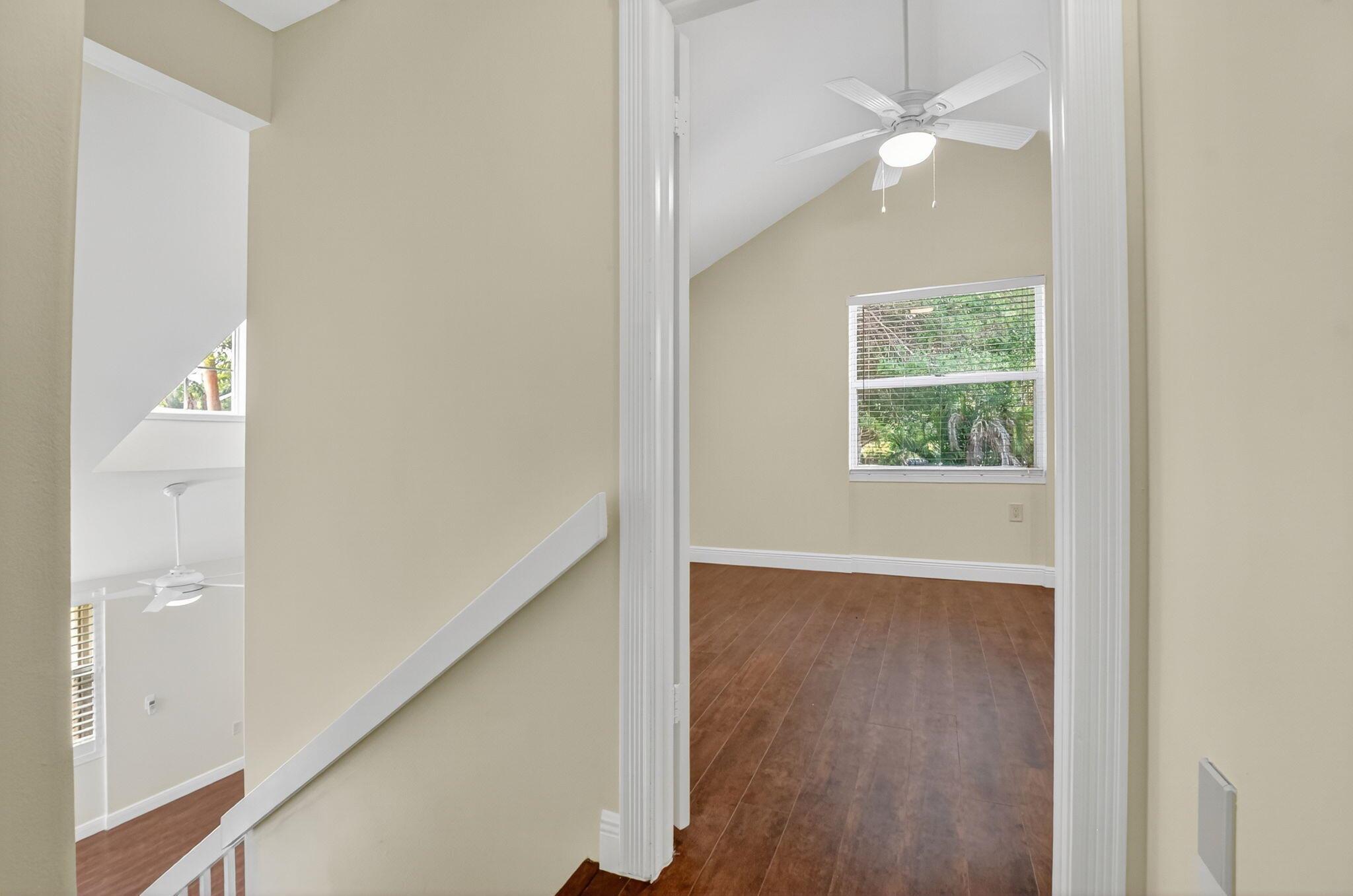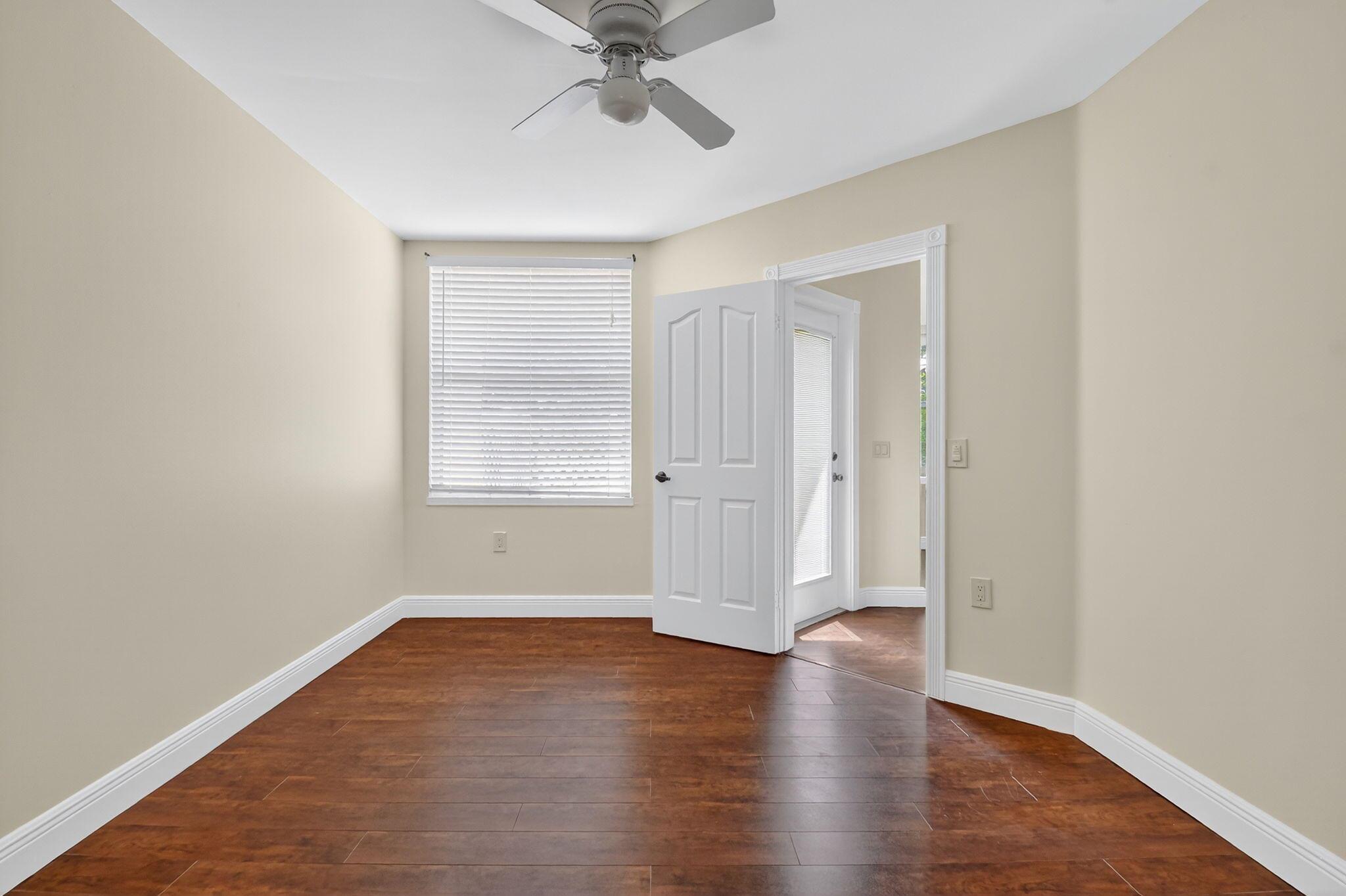 PERFECTION AWAITS YOU. LOCATED IN A PRIVATE CORNER OF THIS WELL MAINTAINED COMMUNITY, YOU WILL FIND A FRESHLY PAINTED UNIT WITH NEW SOARING KNOCKDOWN CEILINGS. THE UPDATED KITCHEN BOAST 48'' WHITE CABINETS, GRANITE COUNTERS, AN ISLAND & A LARGE PANTRY. LAMINATED WOOD FLOORS THRUOUT & BOTH BATHROOMS HAVE BEEN UDATED. THE 1 BEDROOM DOWNSTAIRS OFFERS THE FLEXIBILTY OF BEING THE PRIMARY, OR GUEST, YOU CHOOSE. OUTSIDE ENJOY THE FRONT PORCH, OPEN PATIO, OR THE SHADE OF A NATURE LOVING MATURE TREE, TOTALLY RELAXING & NO PARKING LOT TO LOOK AT! EASY TO CALL THIS ONE HOME W/O THE MAINTENANCE OF THE EXTERIOR OR ROOF, LANDSCAPE OR EXT INSURANCE SINCE THE HOA COVERS IT & A 24 HR MANNED GATE. STORM READY WITH ACCORDIAN SHUTTERS. AMMENITIES; COMM POOL, JACUZZI, TENNIS, PICKLEBALL & KIDS PLAY YAR