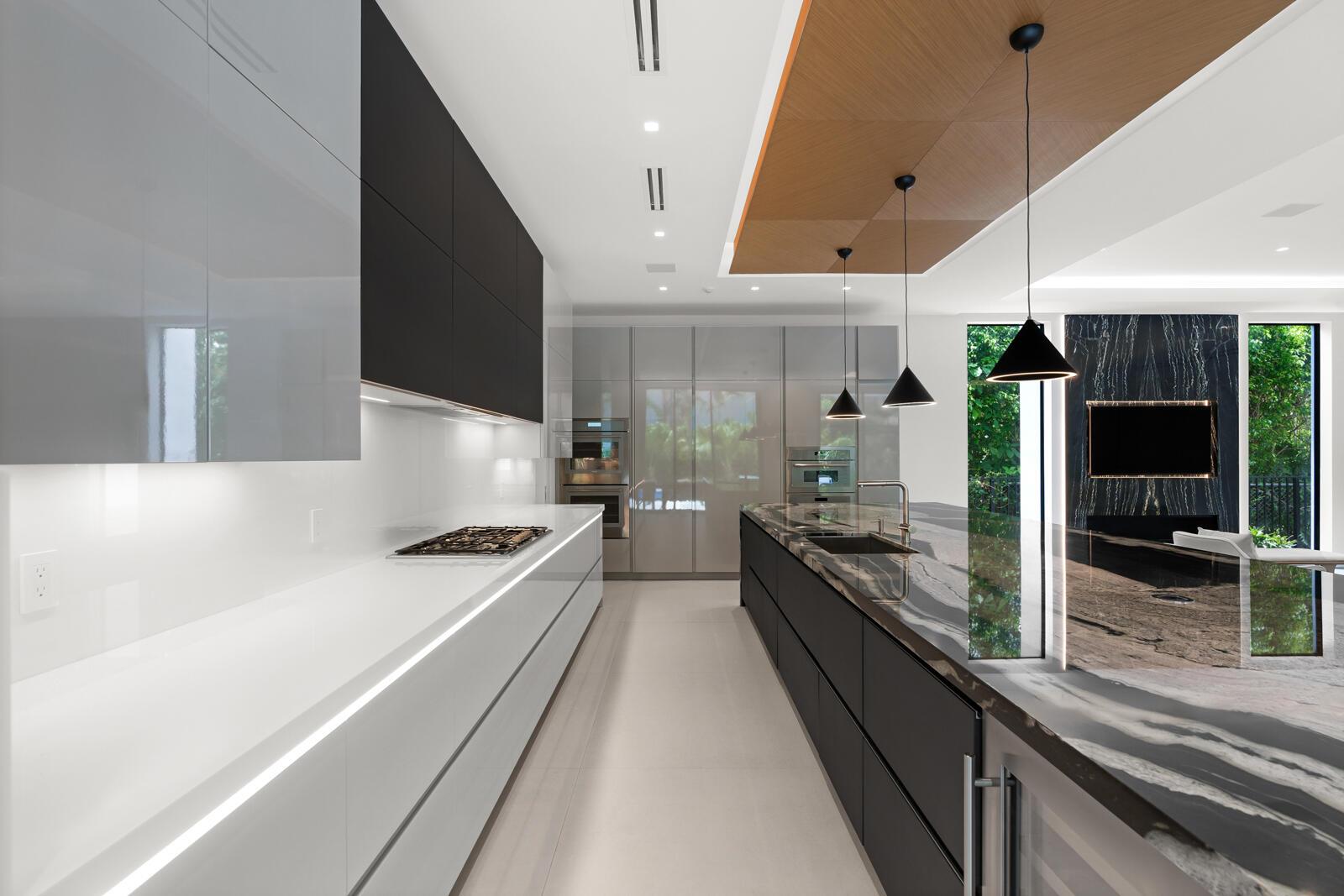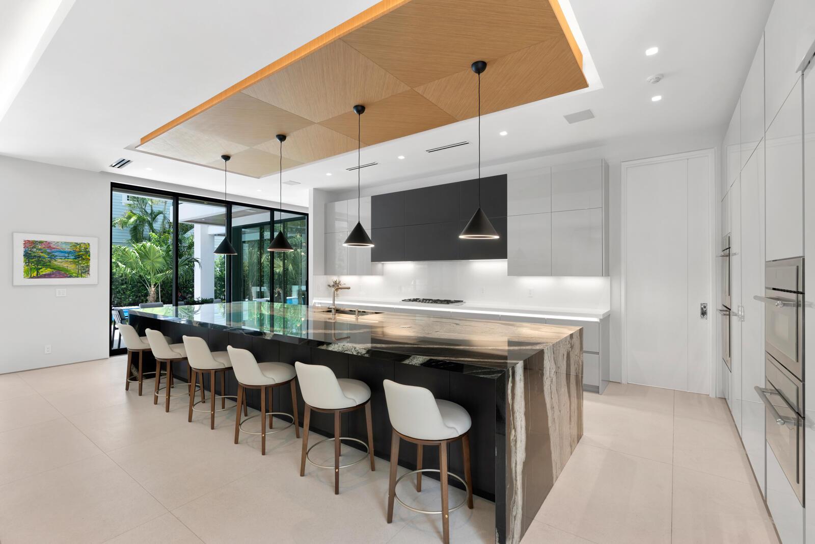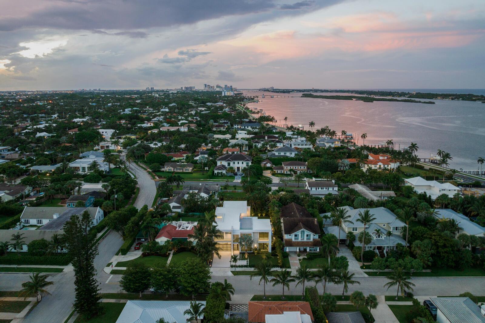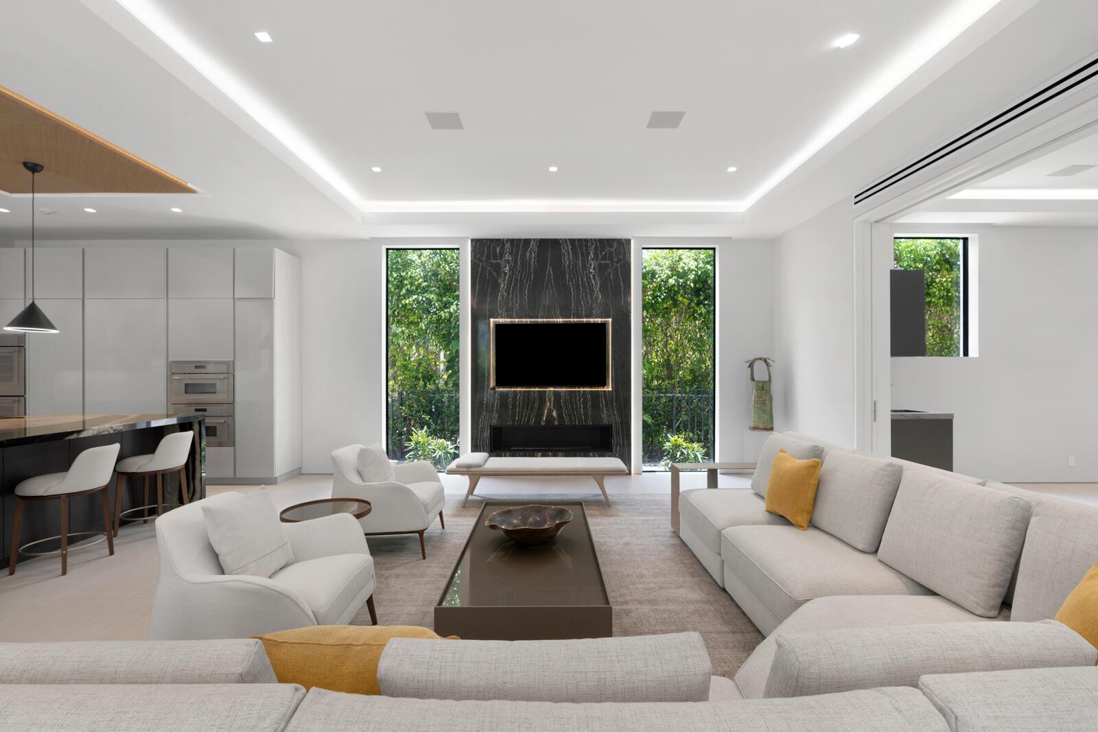 Experience cutting-edge design and comfort at 141 Cortez Rd. in W.P.B.'s prestigious SoSo area, near the Intracoastal. This 6,774 sq. ft. home epitomizes modern luxury, offering sophistication and ease. Highlights include a grand entry foyer with a magnificent staircase, a state-of-the-art media room, and a chef's kitchen with high-end appliances and wood-accented ceilings. The stylish dining area provides pool views. The living room features a fireplace and wet bar, perfect for entertaining. The attached guest house includes a kitchenette and private balcony. The owner's suite boasts dual baths and a balcony overlooking the pool. Enjoy the rooftop deck with stunning views. Additional features include a luxurious elevator, Control4 automation, laundry on both floors, and a 60 kW generator