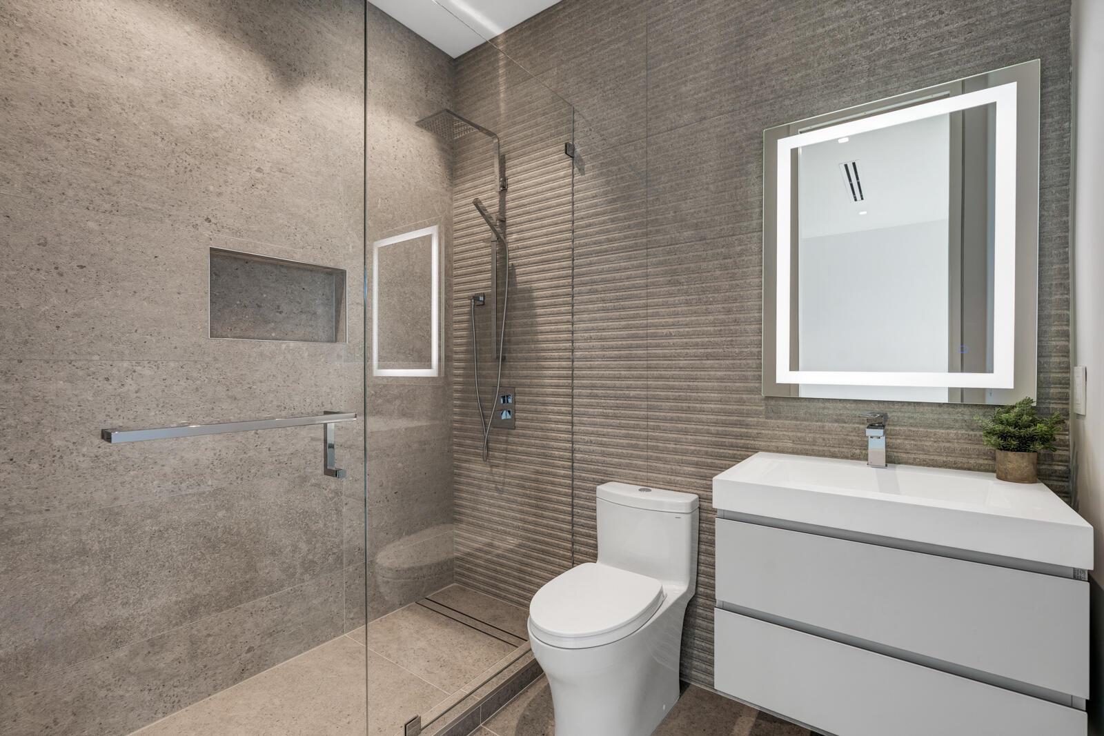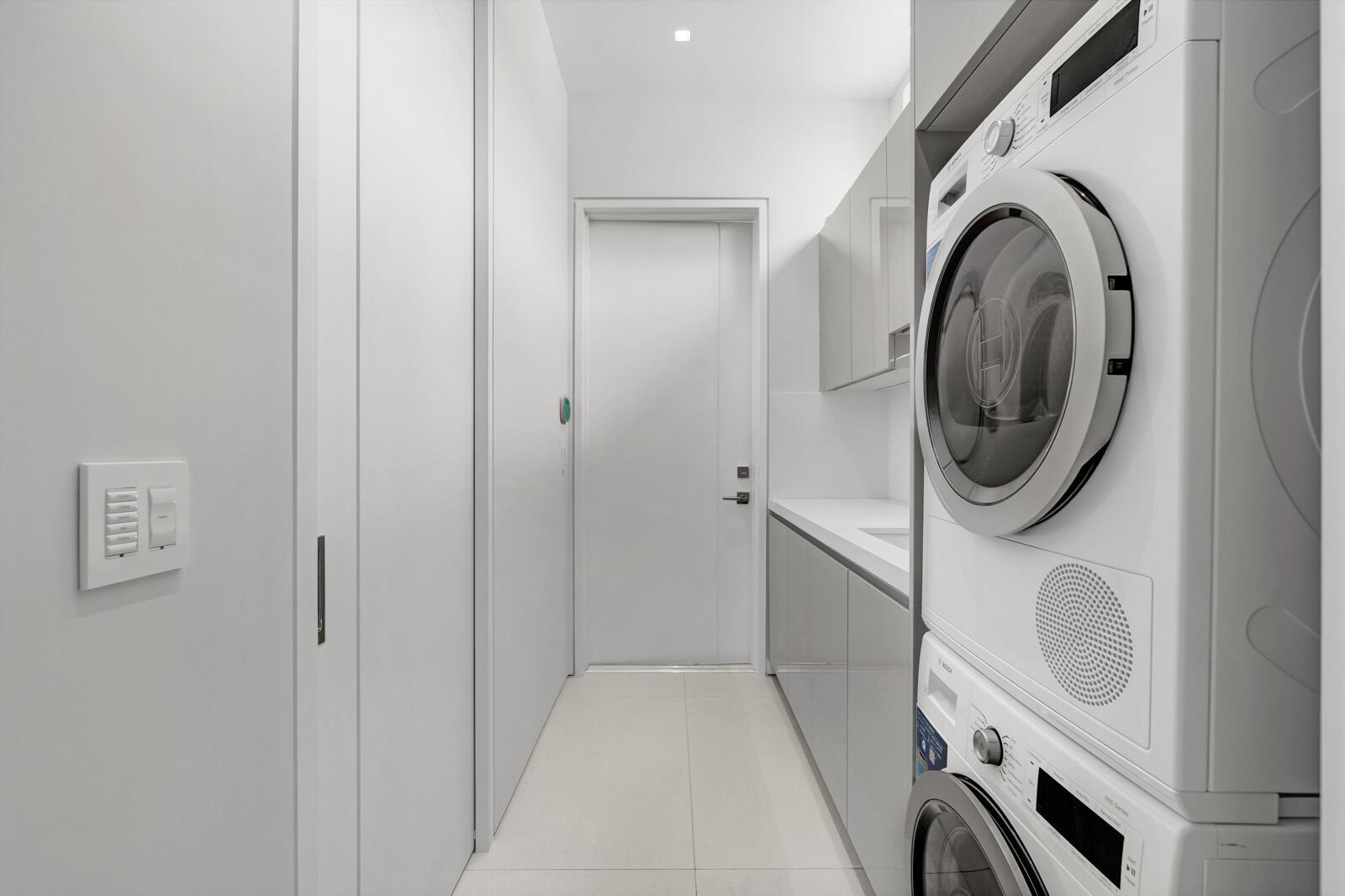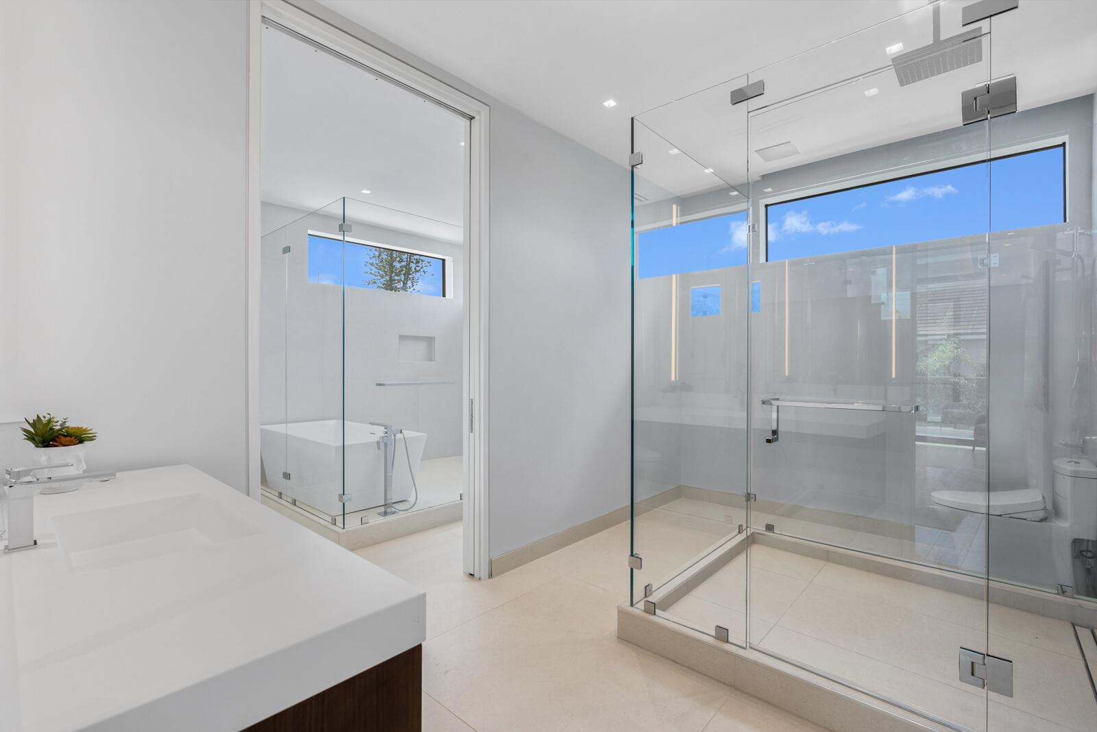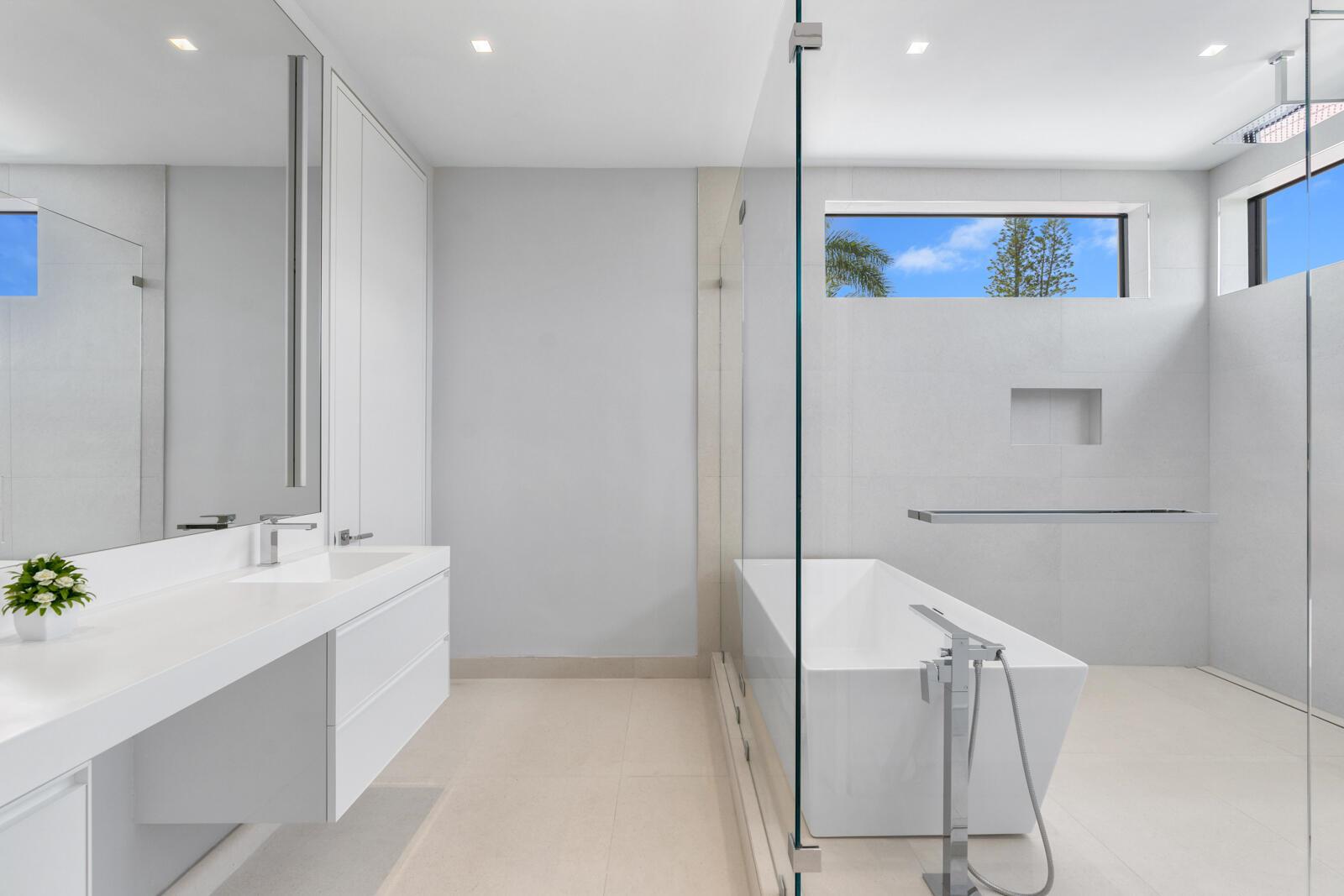 Experience cutting-edge design and comfort at 141 Cortez Rd. in W.P.B.'s prestigious SoSo area, near the Intracoastal. This 6,774 sq. ft. home epitomizes modern luxury, offering sophistication and ease. Highlights include a grand entry foyer with a magnificent staircase, a state-of-the-art media room, and a chef's kitchen with high-end appliances and wood-accented ceilings. The stylish dining area provides pool views. The living room features a fireplace and wet bar, perfect for entertaining. The attached guest house includes a kitchenette and private balcony. The owner's suite boasts dual baths and a balcony overlooking the pool. Enjoy the rooftop deck with stunning views. Additional features include a luxurious elevator, Control4 automation, laundry on both floors, and a 60 kW generator