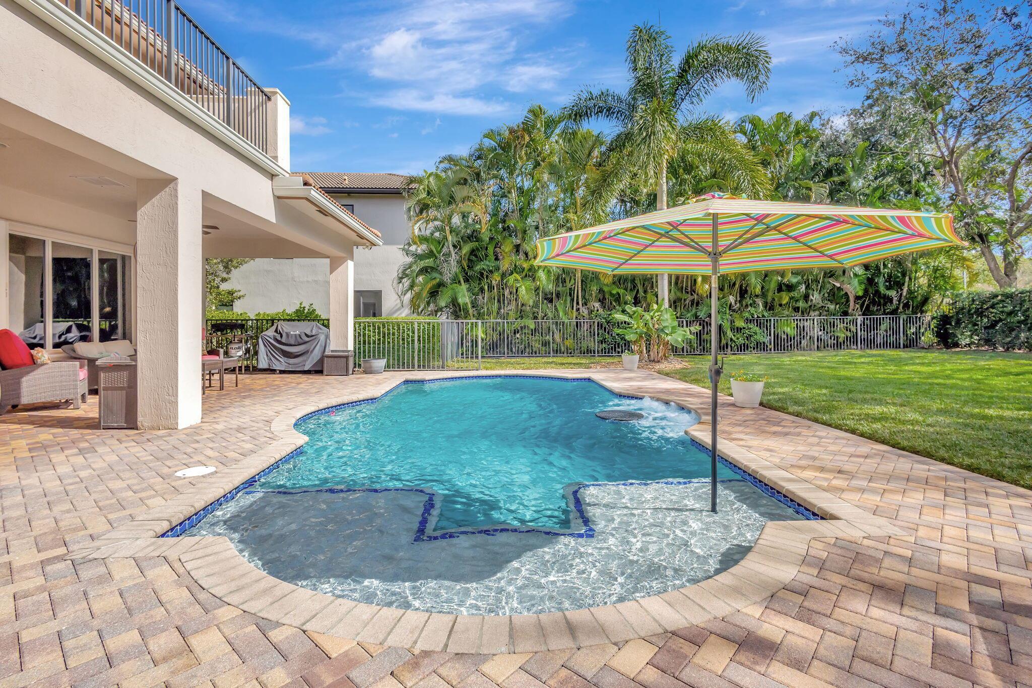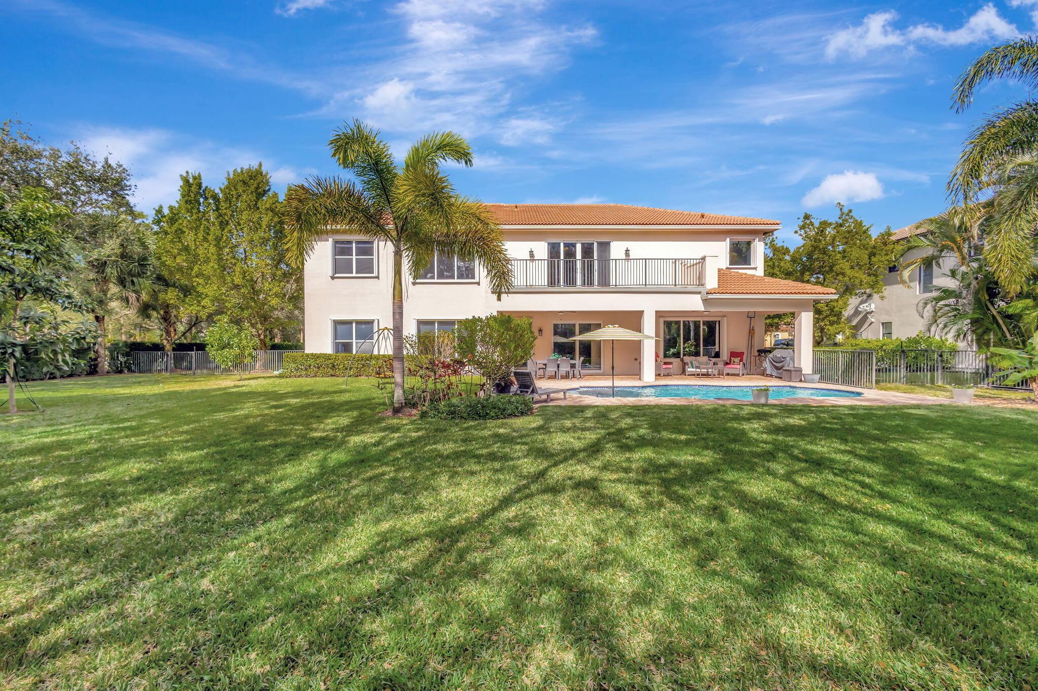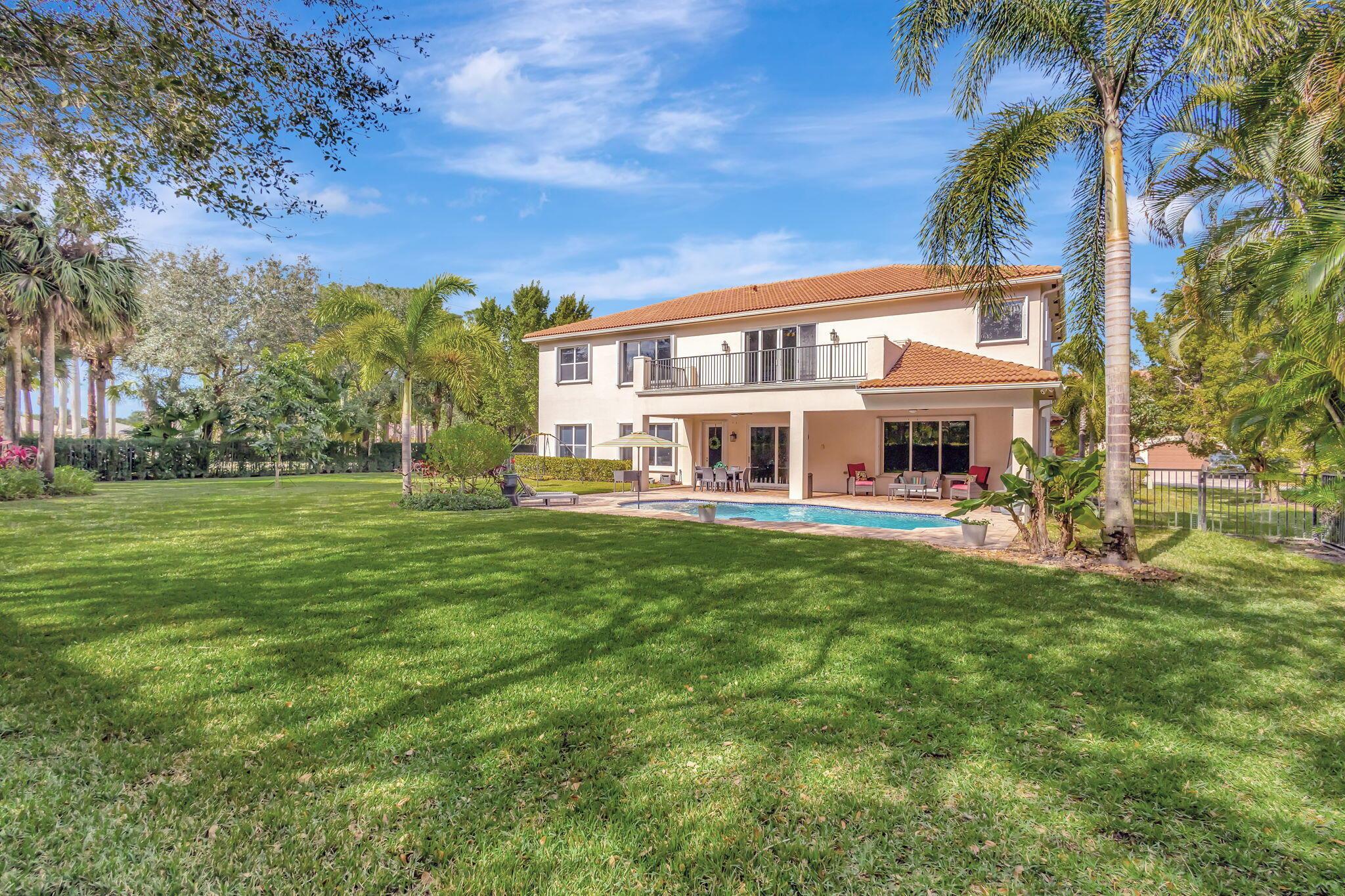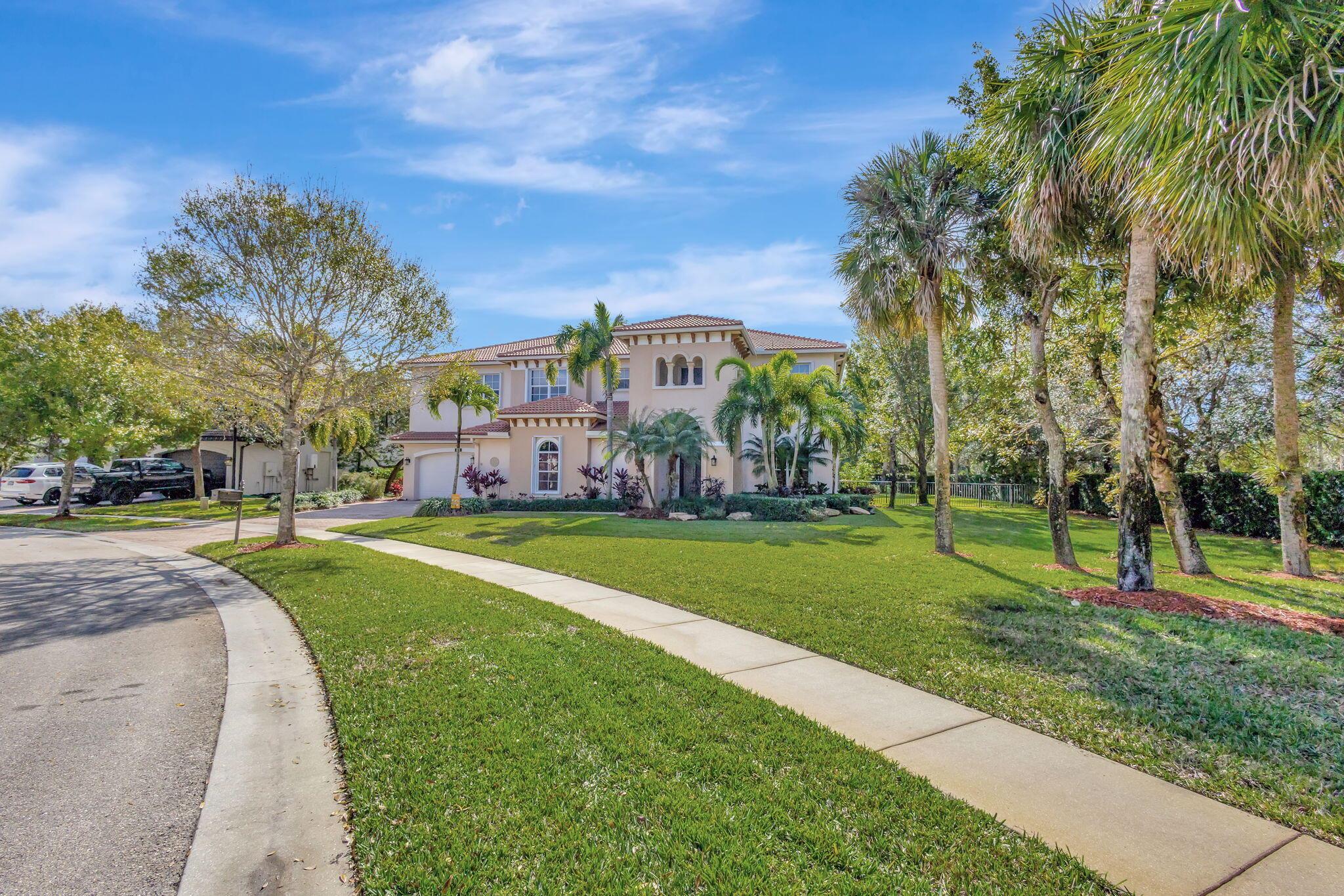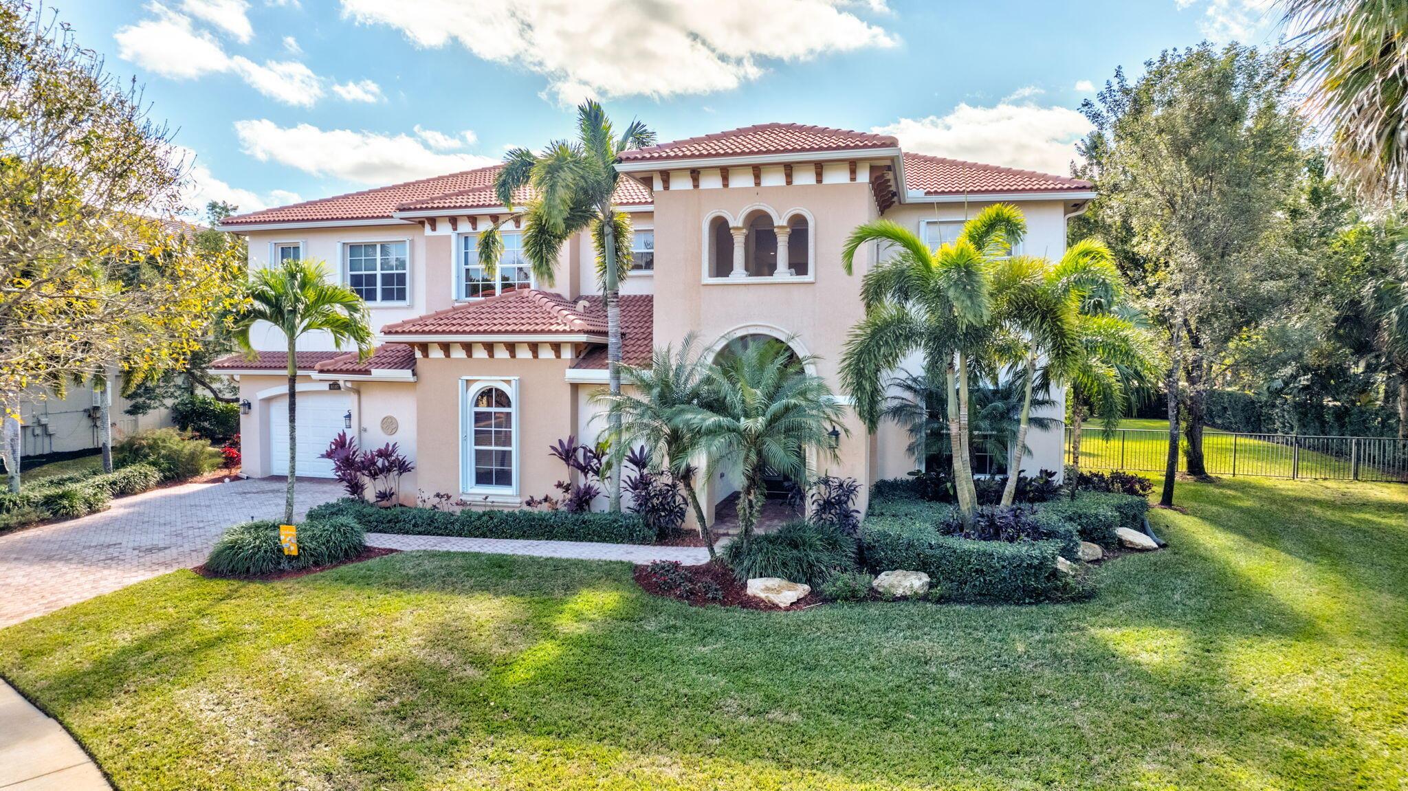 Situated in an exclusive and tranquil community, this impressive 2 story Mediterranean style single family home has 6 bedrooms, 6 bathrooms, a spacious 3-car garage, and a luxurious heated saltwater pool. Sitting on a large lot, half-acre--it provides ample space and privacy for both relaxing and entertaining. Behind the gated entry, this home combines timeless style, modern comfort, and practical features. It is equipped with impact-resistant doors and accordion shutters for added safety and peace of mind. Recent upgrades include new A/C units, water heaters, modern light fixtures, all-new LED lighting, fresh interior paint, a new pool heater, and improvements to the irrigation system.