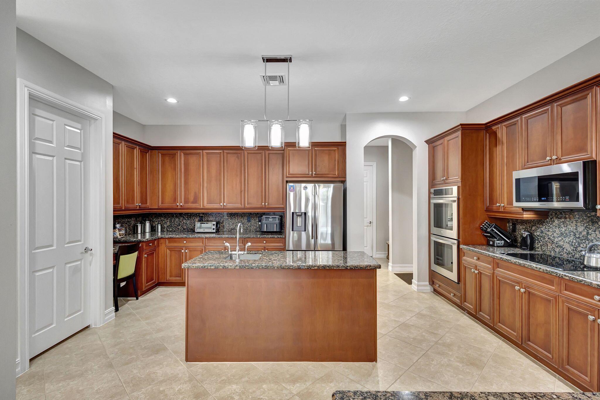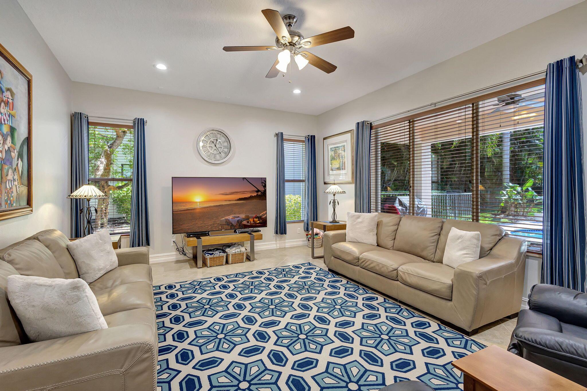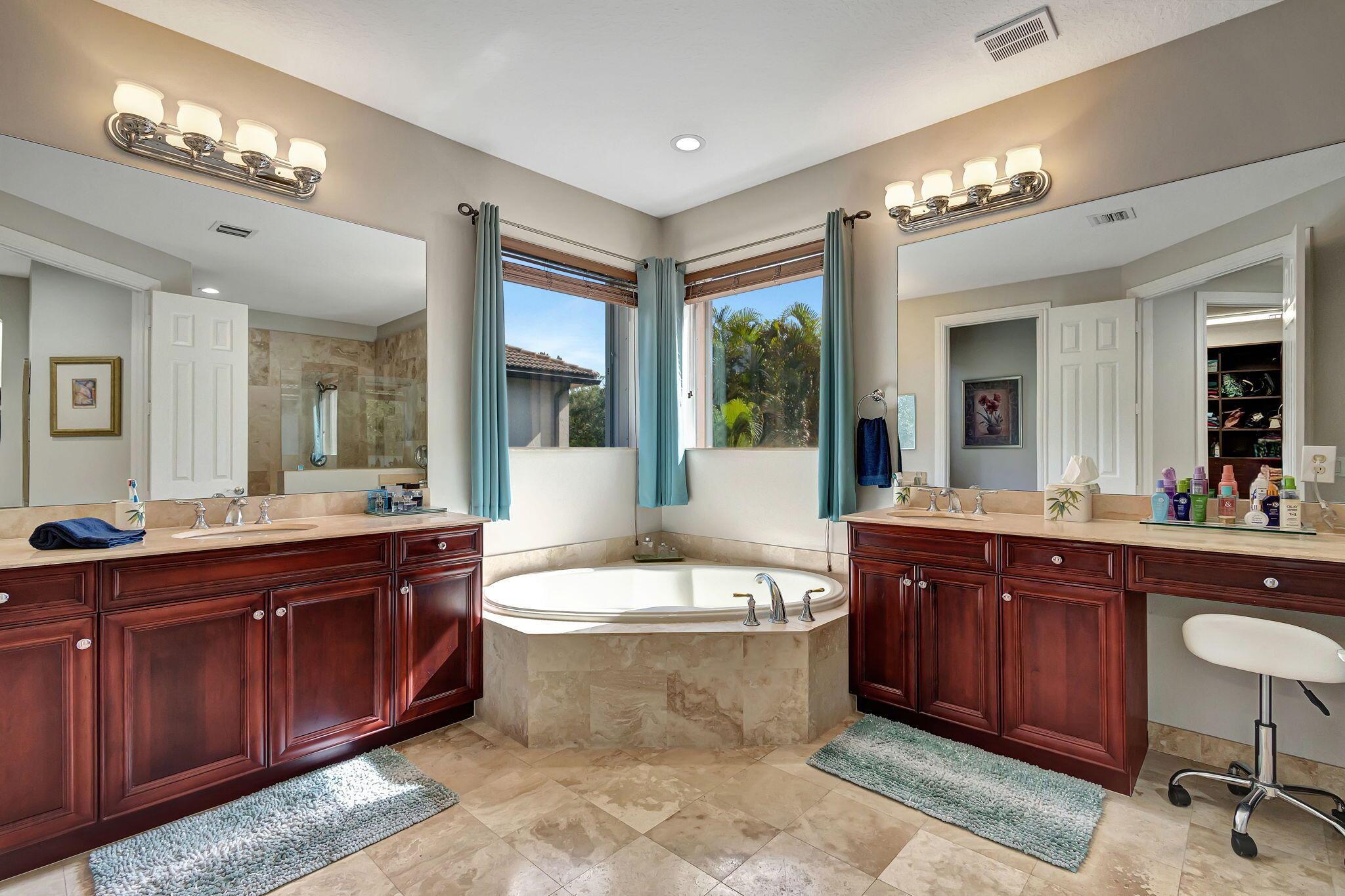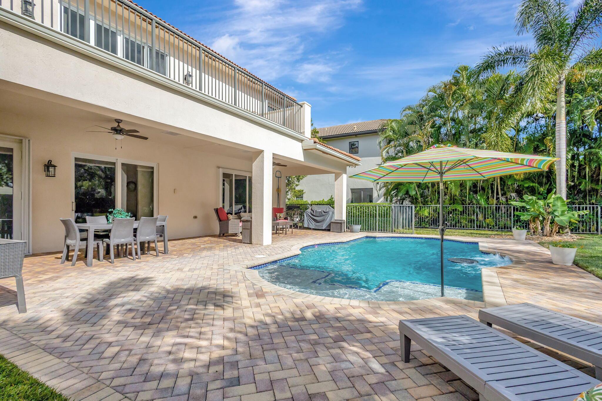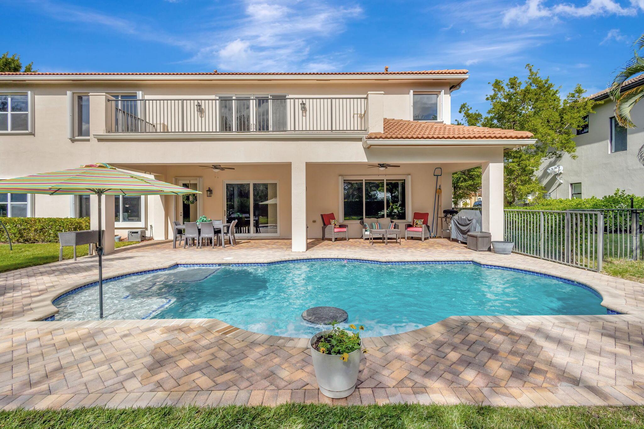Situated in an exclusive and tranquil community, this impressive 2 story Mediterranean style single family home has 6 bedrooms, 6 bathrooms, a spacious 3-car garage, and a luxurious heated saltwater pool. Sitting on a large lot, half-acre--it provides ample space and privacy for both relaxing and entertaining. Behind the gated entry, this home combines timeless style, modern comfort, and practical features. It is equipped with impact-resistant doors and accordion shutters for added safety and peace of mind. Recent upgrades include new A/C units, water heaters, modern light fixtures, all-new LED lighting, fresh interior paint, a new pool heater, and improvements to the irrigation system.