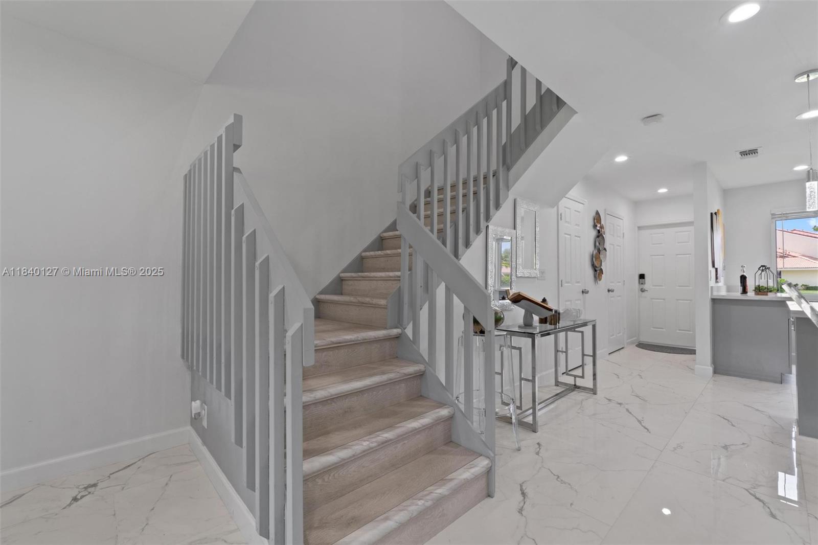 Welcome to this beautiful townhouse nestled in one of Boca Raton's most exclusive areas. This fully remodeled 2-bedroom, 2-bath home is move-in ready and designed for comfortable and modern living. The spacious kitchen features elegant quartz countertops, stainless steel Whirlpool appliances (2021). On the first floor, you will find modern ceramic floors, high-impact windows, zebra blinds In the living room, bright LED lighting, and 10-foot ceilings. The A/C was replaced in 2021. Upstairs, enjoy the master suites with custom closets, laminate flooring, and an abundance of natural light. The electrical panel was updated in 2021, along with the washer and dryer, conveniently located on the second floor. new indoor doors, and updated outlets for peace of mind.