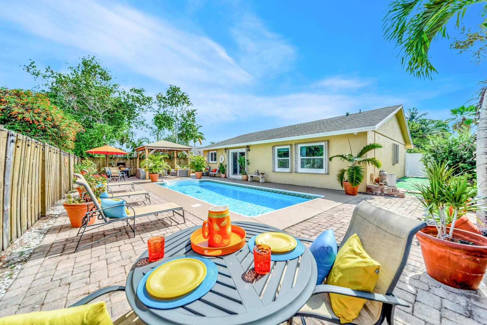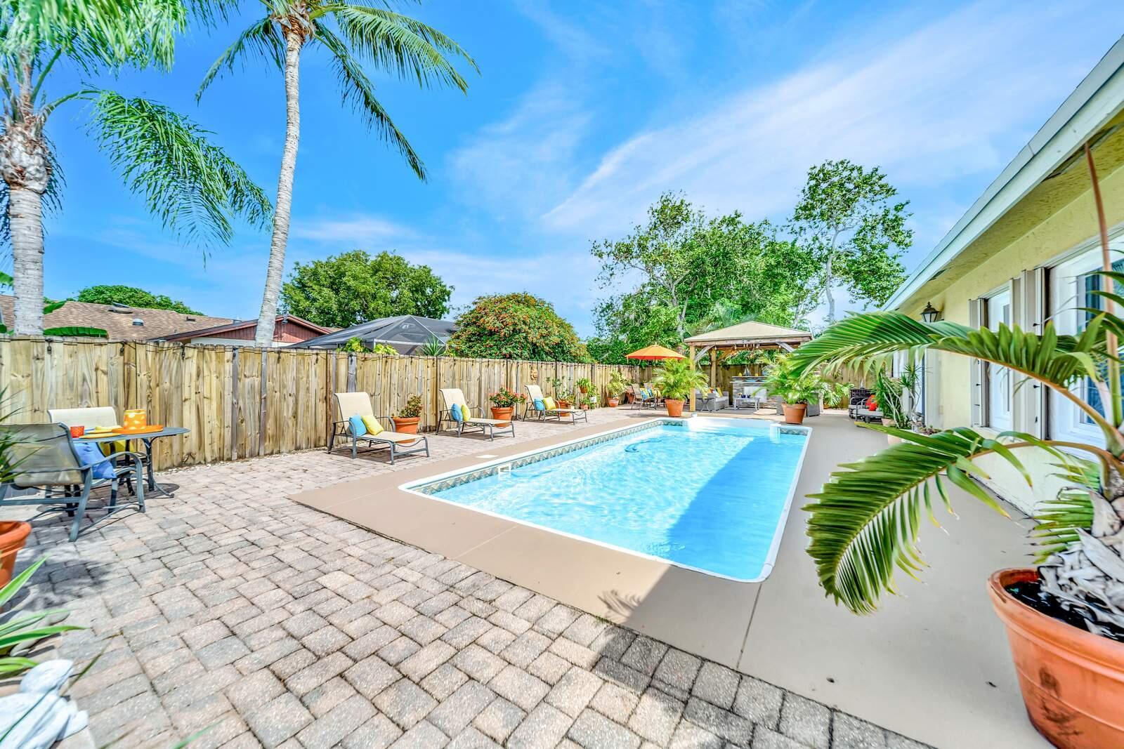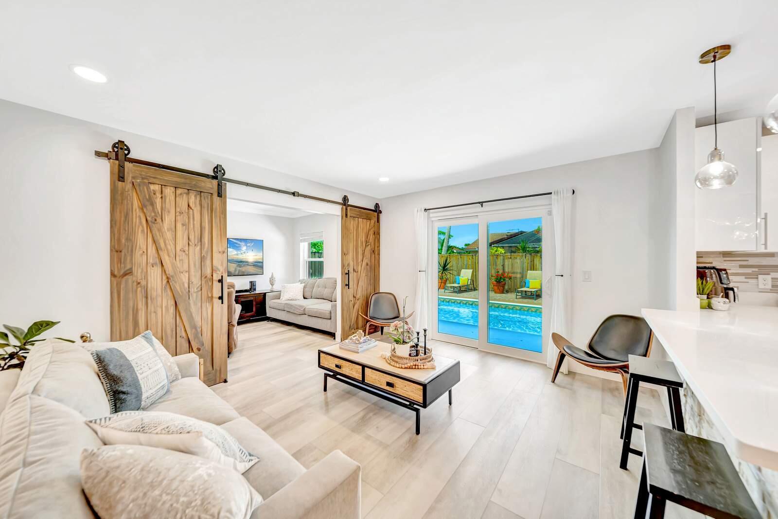 WOW! Super Spacious Single Family Home Features 3 Bedrooms, 2 Bathrooms, a 2 Car Garage, Huge Sparkling POOL and amazing backyard located in Saddlebrook/Spanish Isles! Impact glass windows plus accordion shutters for an extra layer of protection. Roof 2016 . BRAND NEW A/C & WATER HEATER!! In process of being installed this week. This Home Has Been Updated from Floor to Ceiling as You Find from Designers on HGTV! Modern cohesive design with high end luxury finishes throughout including an expansive gourmet kitchen that features quartz counter tops, wall to ceiling glass tile backsplash, stainless appliances including a French door refrigerator, deep stainless farmers sink, sleek solid wood cabinetry with custom built in spice shelves, lazy Susan,