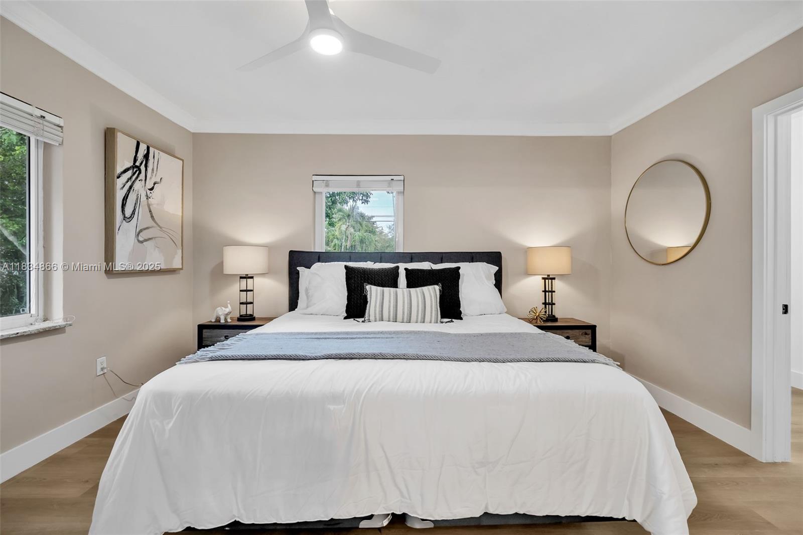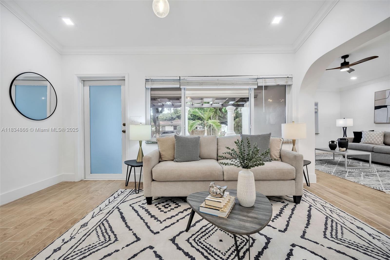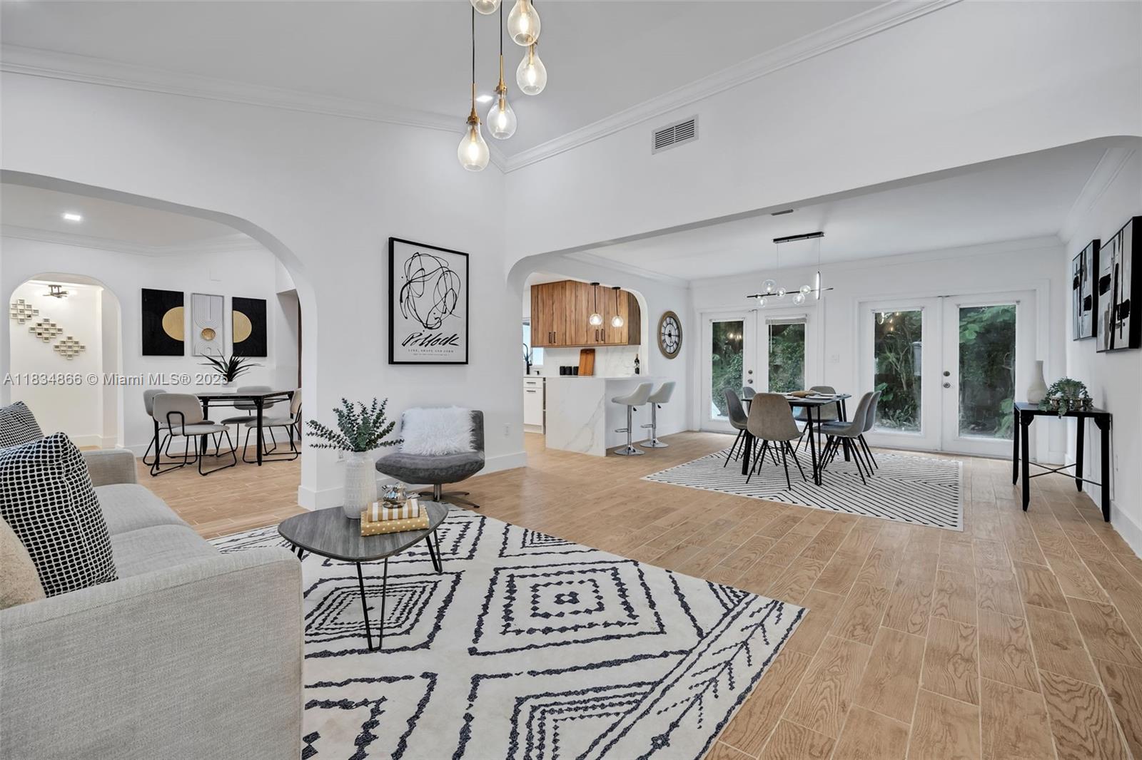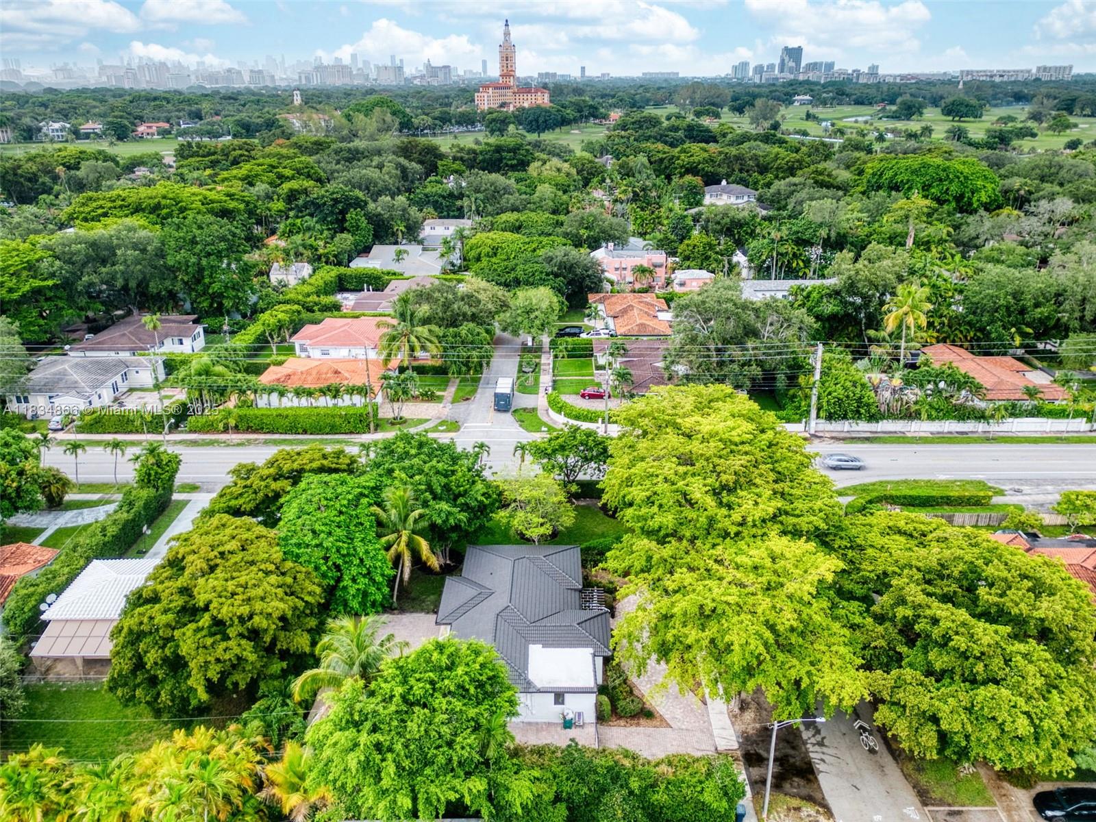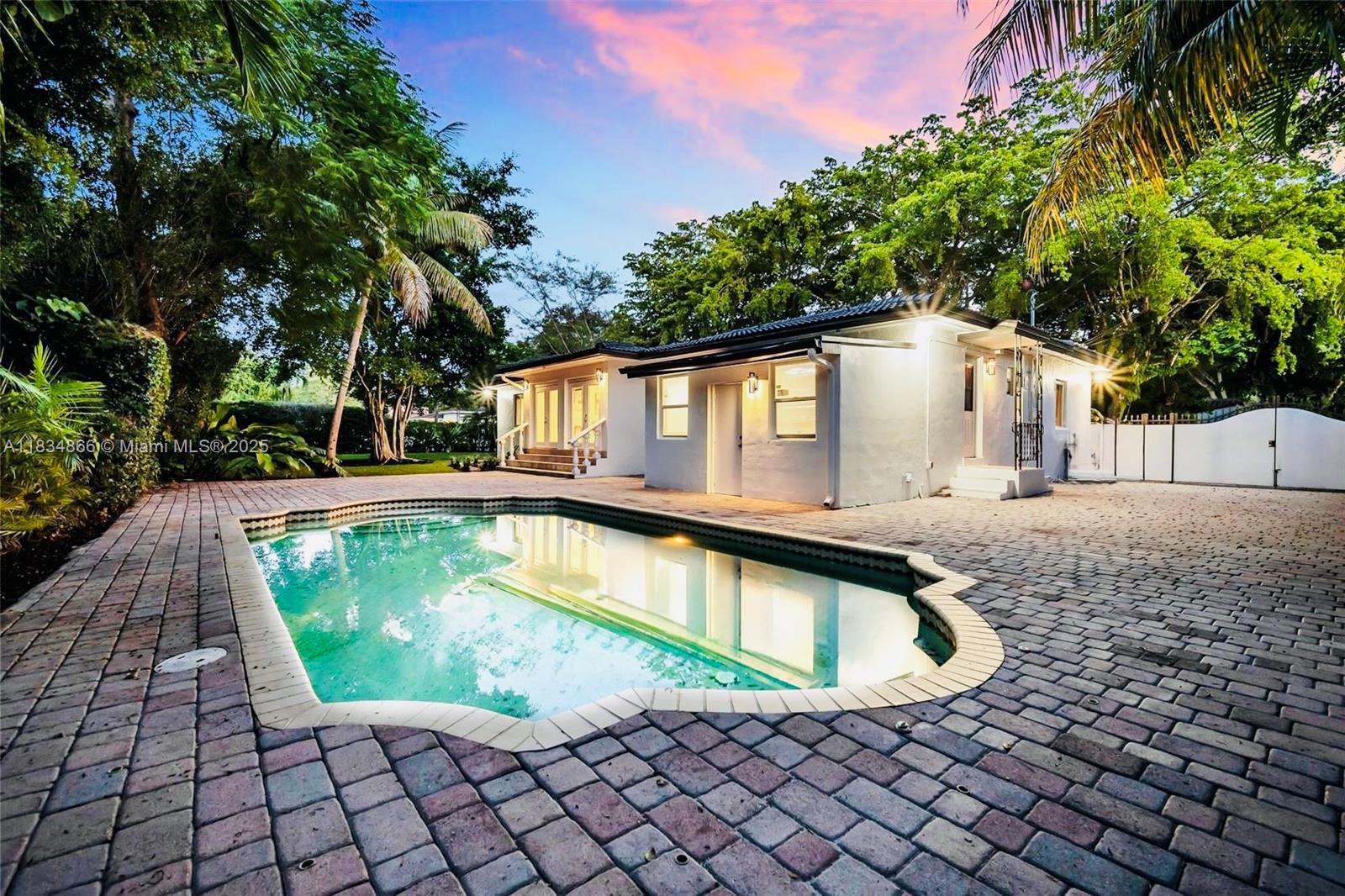 Spanish-Mediterranean home situated on a 12,000 SF double Lot (red road & 33 St), 1 mile from University of Miami & the Biltmore Hotel. This 4 bedroom/2 bath residence+1 Cabana Bath features soaring ceilings & abundant natural light. A brand new Italian style kitchen boasts Calacatta Quartz countertops, sleek cabinetry & new GE-Cafe appliances. Updated PVC plumbing & electric, wood & porcelain flooring throughout, the French doors open to a gated & fenced huge backyard oasis & a pool, surrounded by large oak trees. A semi-circular paver driveway provides ample off-street parking space for up to 8 cars +1 boat. This home has the old elegance & charm of Schenley Park/Coral Gables combined with all the modern upgrades in an unbeatable location. A-rated schools. Excellent income potential.