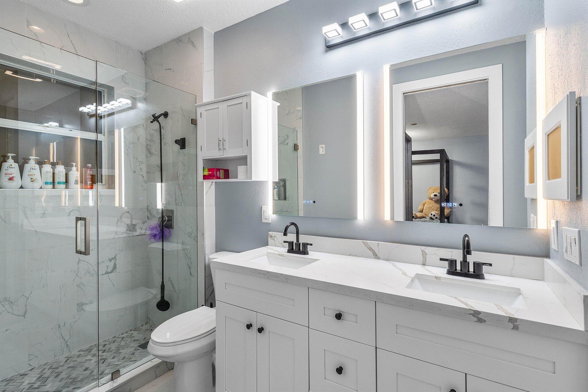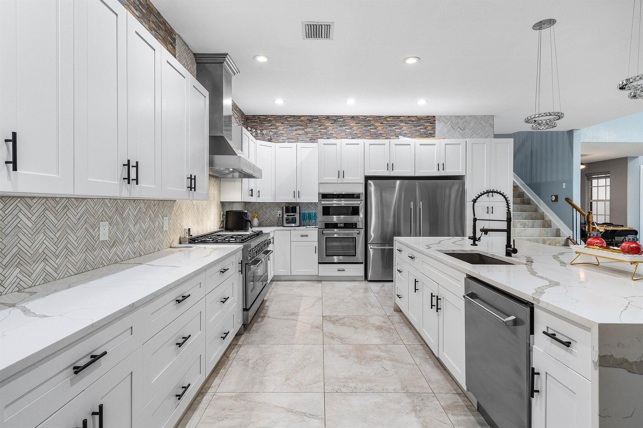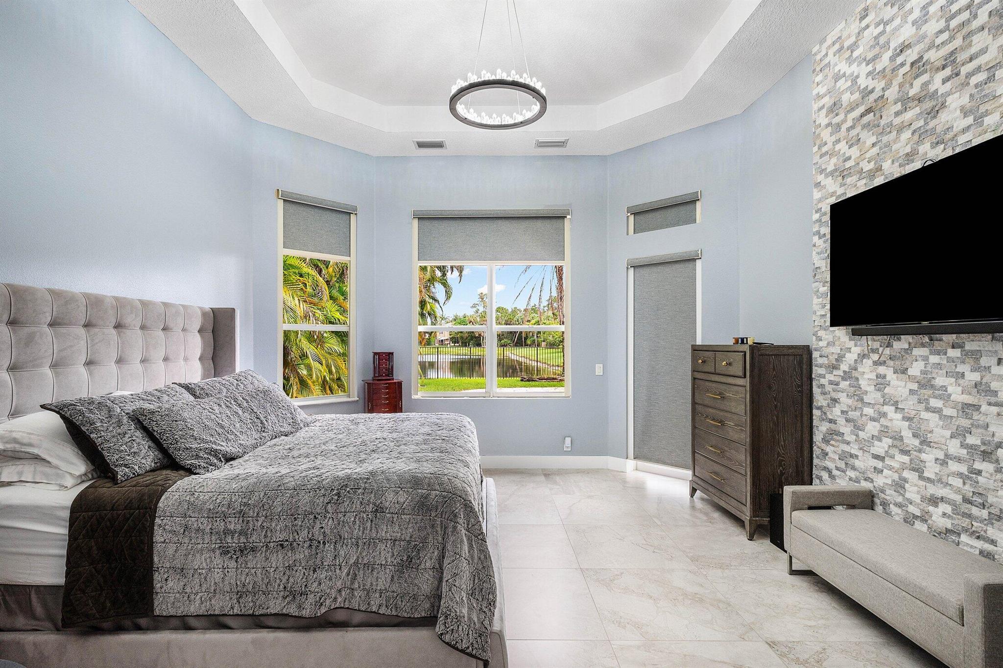Resort-Style Luxury with Lake Views!Experience the perfect blend of elegance and entertainment in this stunning home. Nestled in a gated community with lush landscaping, it offers breathtaking lake views and a resort-style pool with slide, spa, and expansive deck. Enjoy an outdoor kitchen, mounted TV, and ample space for gatherings.Inside, the chef's kitchen shines with a gas Wolf range, dual refrigerators & freezers, quartz countertops, and a waterfall island. The private master suite features 13' ceilings, serene pool views, and a spa-inspired bath with soaking tub, walk-in shower, and custom closets.Smart home upgrades include tile floors throughout, tech-enabled bathrooms with Bluetooth audio, and smart mirrors. Conveniently located near shopping, dining, The Polo Grounds,