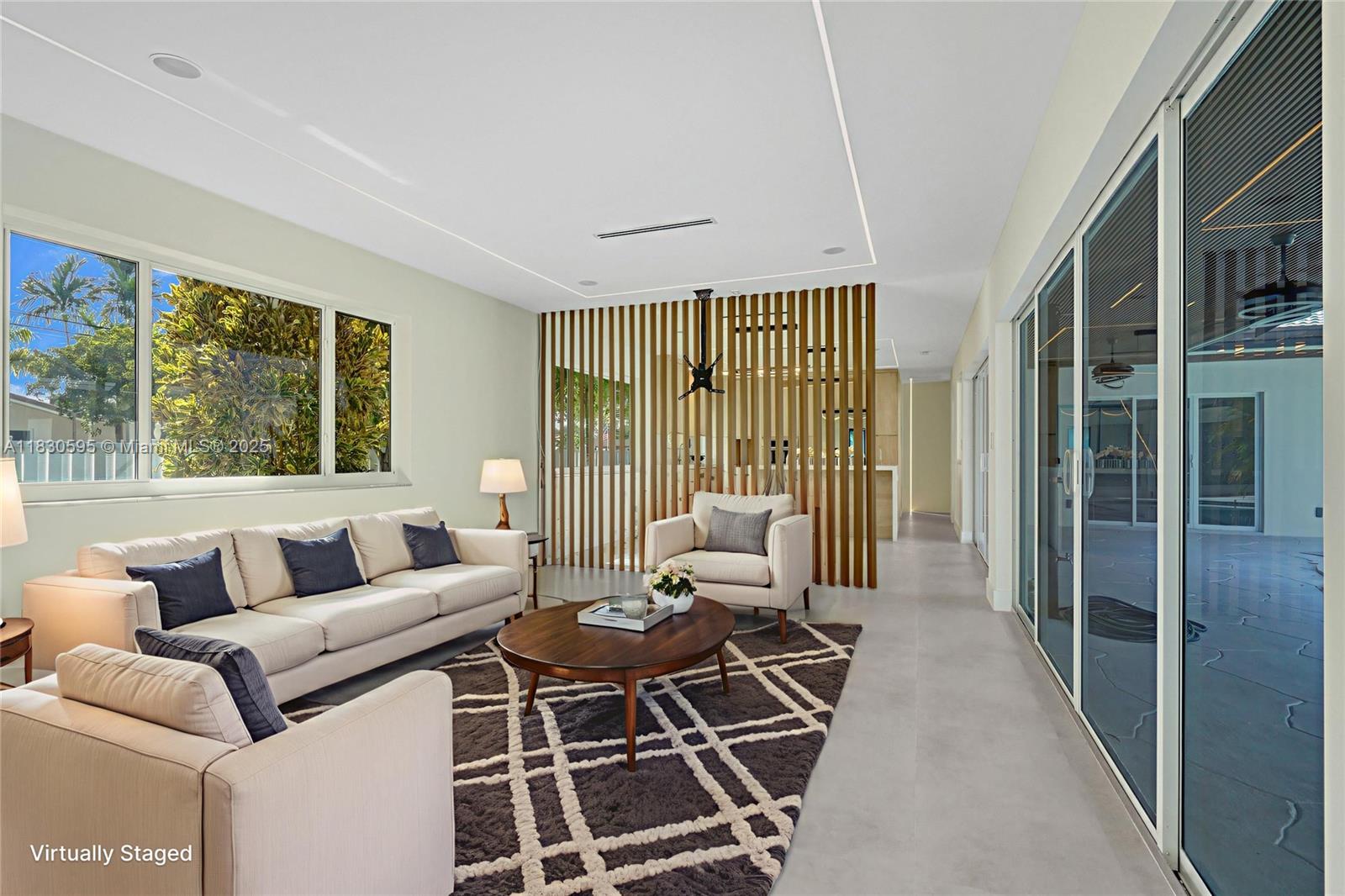 A Separate Guest Suite With 3 Entrances Offers Endless Flexibility-Perfect For Visitors, A Nanny, Or Rental Income. Resort-Style Living Awaits In This Fully Renovated Residence With Full Impact Protection, Smart Lighting, And Lush Tropical Landscaping. The Open-Concept Layout Seamlessly Connects Indoor And Outdoor Spaces, Ideal For Relaxed Living. A Designer Kitchen Showcases Imported Acacia Wood Cabinetry, Waterfall Quartz Island, Samsung Appliances, Bosch Dishwasher, And Built-In Speakers. The Primary Suite Features A Custom Vanity & Dual Rain Showers. Outdoors, Enjoy A Fenced Yard With Avocado And Mango Trees & Security Cameras. The Garage Includes The Hidden Pool Filter, & A Whisper-Quiet Opener. Zoned For Top Schools And Just Minutes From I-95, Airport, And Downtown - All With No HOA!