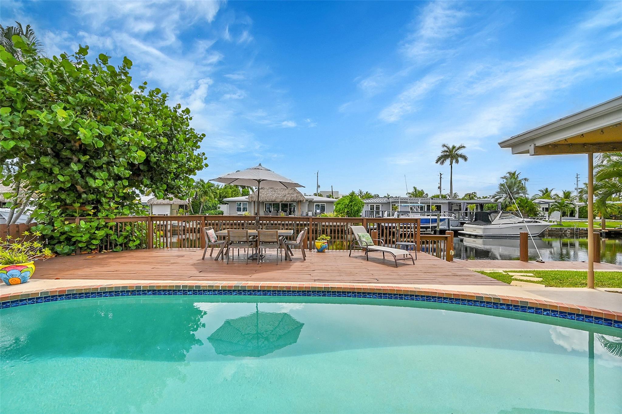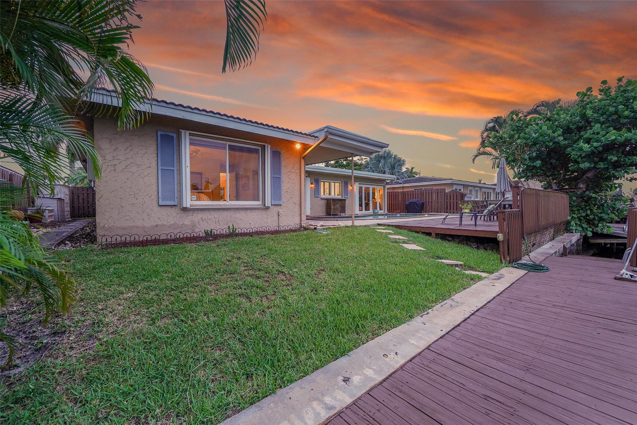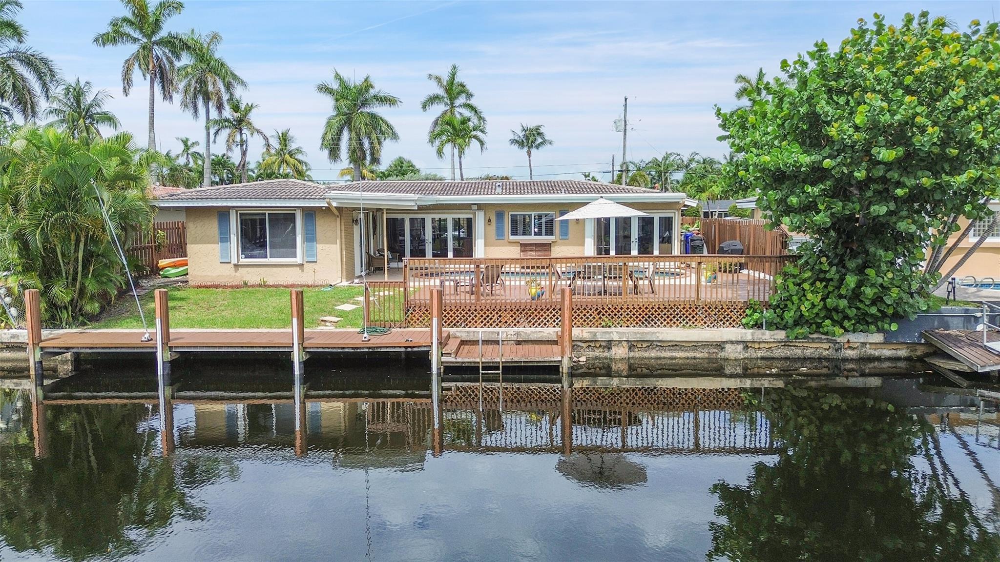 Best-priced ocean access waterfront pool home in Pompano Beach! Located in sought-after Cypress Harbor, this 3BR/3BA home features a split floorplan, updated kitchen, renovated baths, full hurricane protection, garage, and a separate office or guest space. Bright and spacious interior with large windows and water views throughout. Primary bedroom overlooks the water. Interior waterline piping replaced in 2022. Tile flooring, stainless steel appliances, interior laundry, and circular driveway. New A/C system and ducts (2024), water heater (2024). Quiet cul-de-sac with entry courtyard that can be enclosed. East facing backyard. —great layout, sq footage and value! No hoa