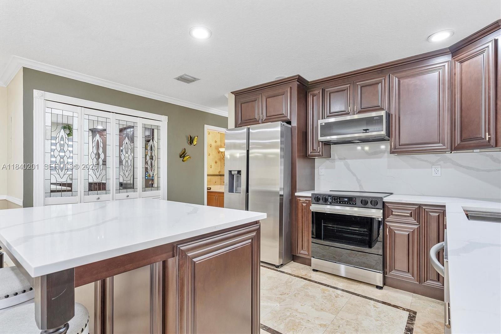 BRAND NEW ROOF INSTALLED, Pella hurricane rated impact windows and Feather River front door. Open concept kitchen with new Samsung stainless steel appliances and quartz countertops. This beautifully renovated 2-story home, 3bed/2.5bath, inground pool, screen patio, tile flooring on the first floor with hardwood upstairs. Enjoy a spacious, fully fenced backyard with a screened-in patio and sparkling pool—perfect for entertaining! The home is situated on an oversized corner lot on a cul-de-sac in the desirable Cooper City community. Zoned for A+ schools. Additional features include a 2-car garage, full impact windows & doors and accordion shutters, washer & dryer 2024. Close to shopping, dining, and houses of worship. Bundled service pricing available for buyers.