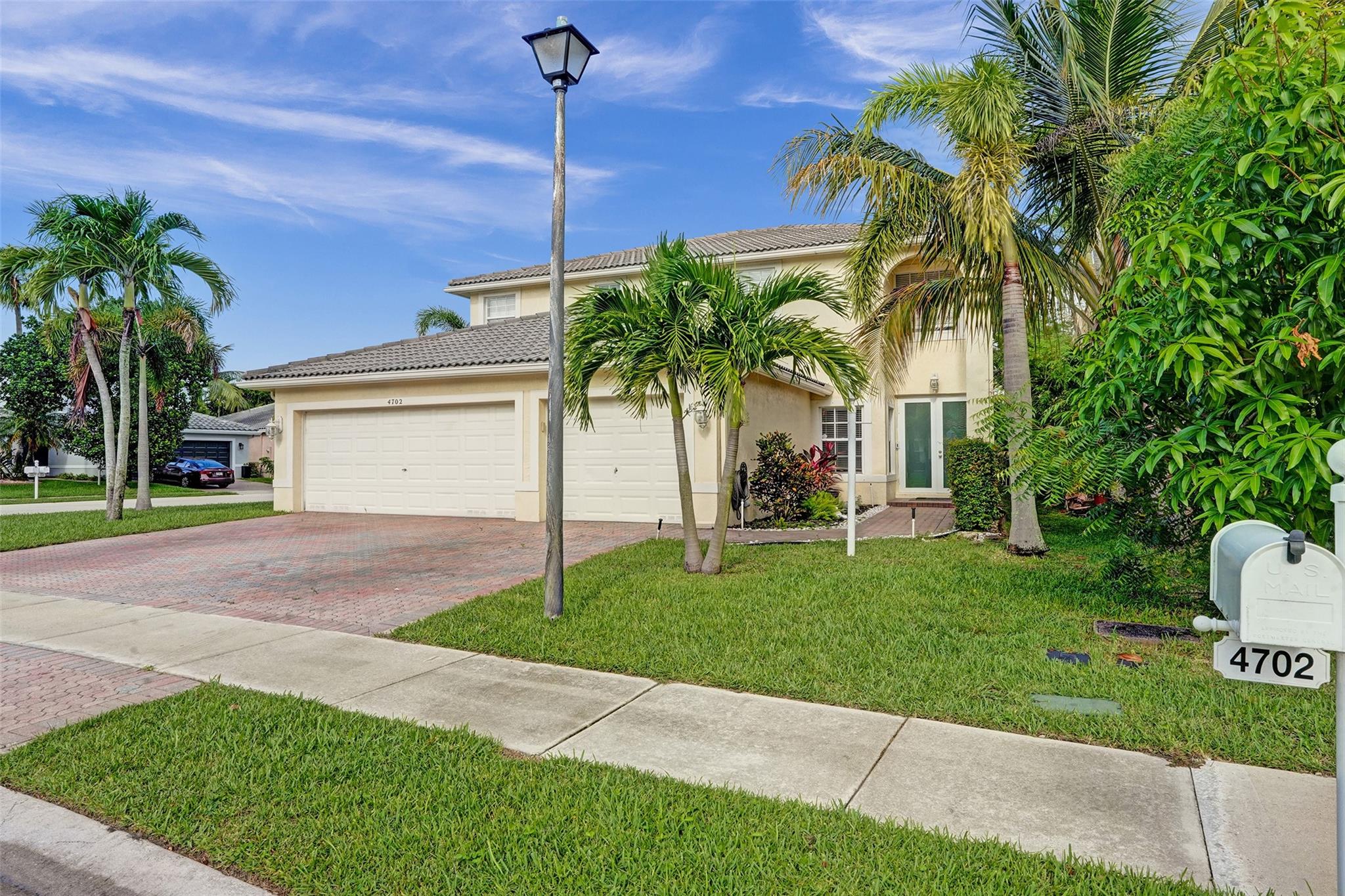 Best value!!! Welcome Home to gated Pelican Trails in Wyndham Lakes in desirable North West Coral Springs and very low HOA fees which includes gate access and lawn care. This beautiful 5 bedrooms, 4 bathrooms, 3 car garage, pool home is situated on a corner lot. The home is just shy of 3,000 sq feet, double frosted glass front doors greets you, one bedroom and bath is located on the first floor, back door sliders are hurricane rated. Oversized primary suite with sitting area, laminate floors upstairs all of the bathrooms has been updated. The tranquil private back yard with a large pool with child fence and grassy area with tropical fruit trees, lush hedges for extra privacy. Close proximity to highways, shopping, excellent A schools and parks. Four point inspection attached to MLS.