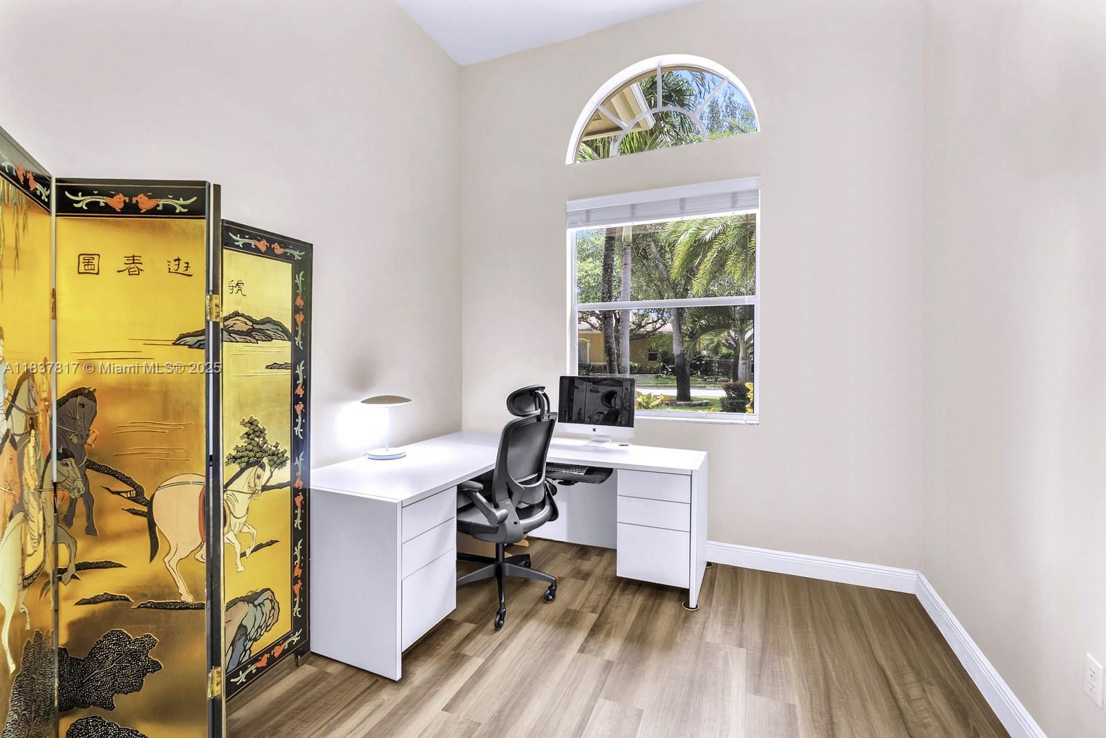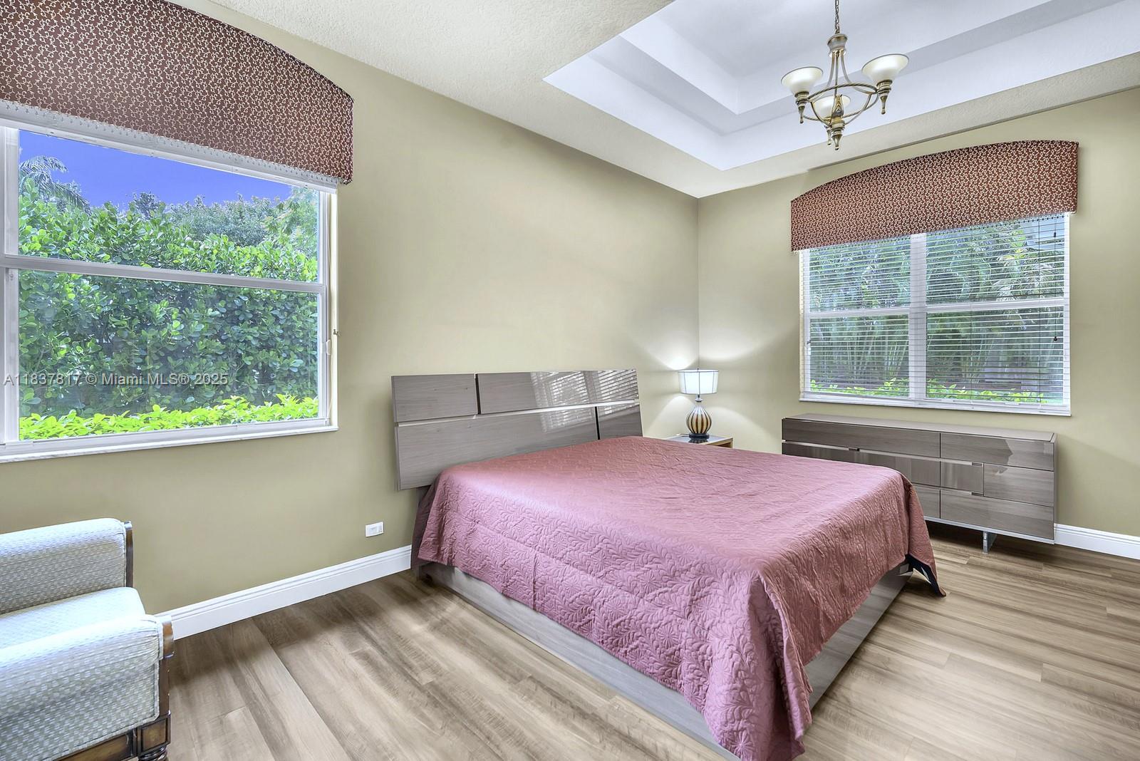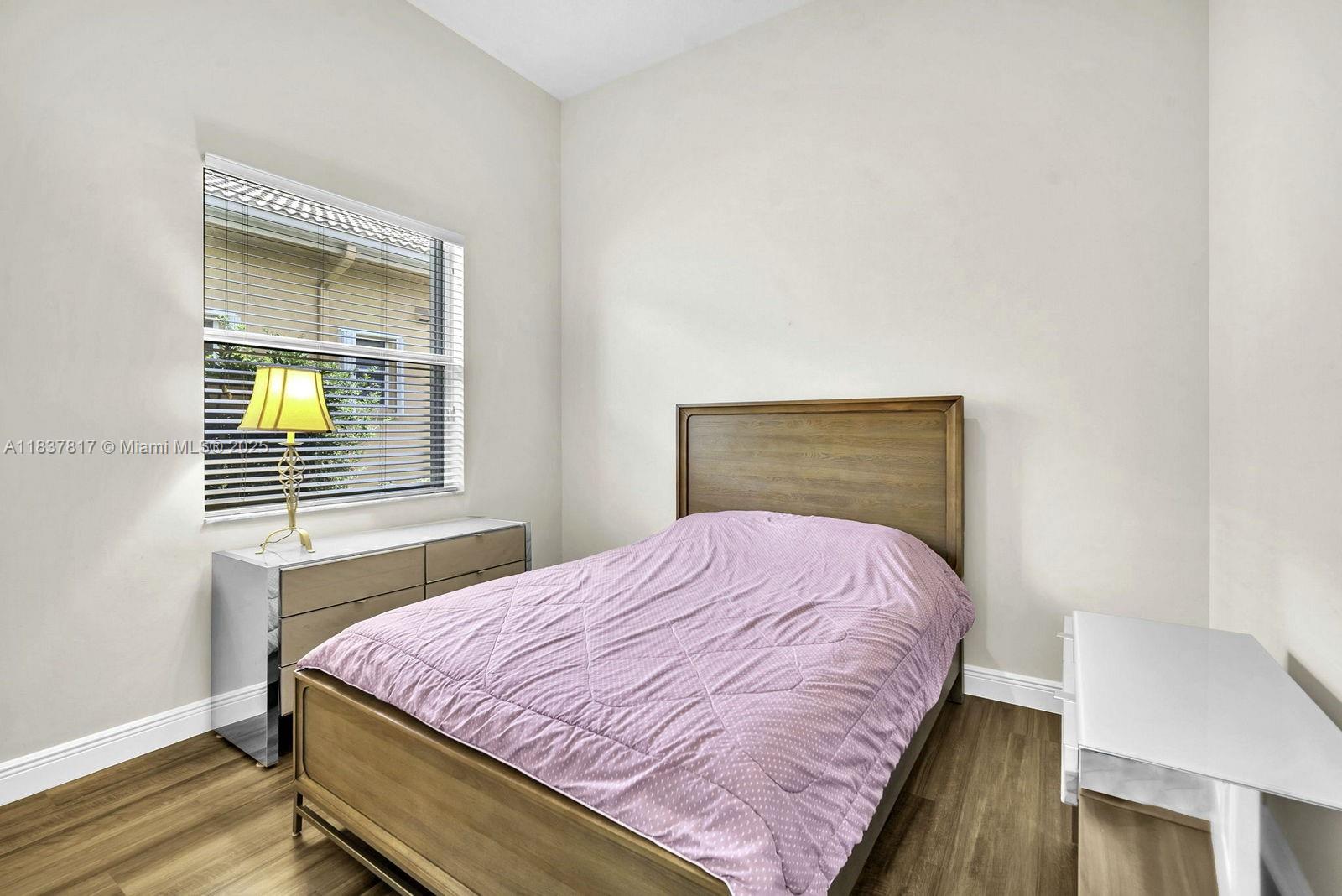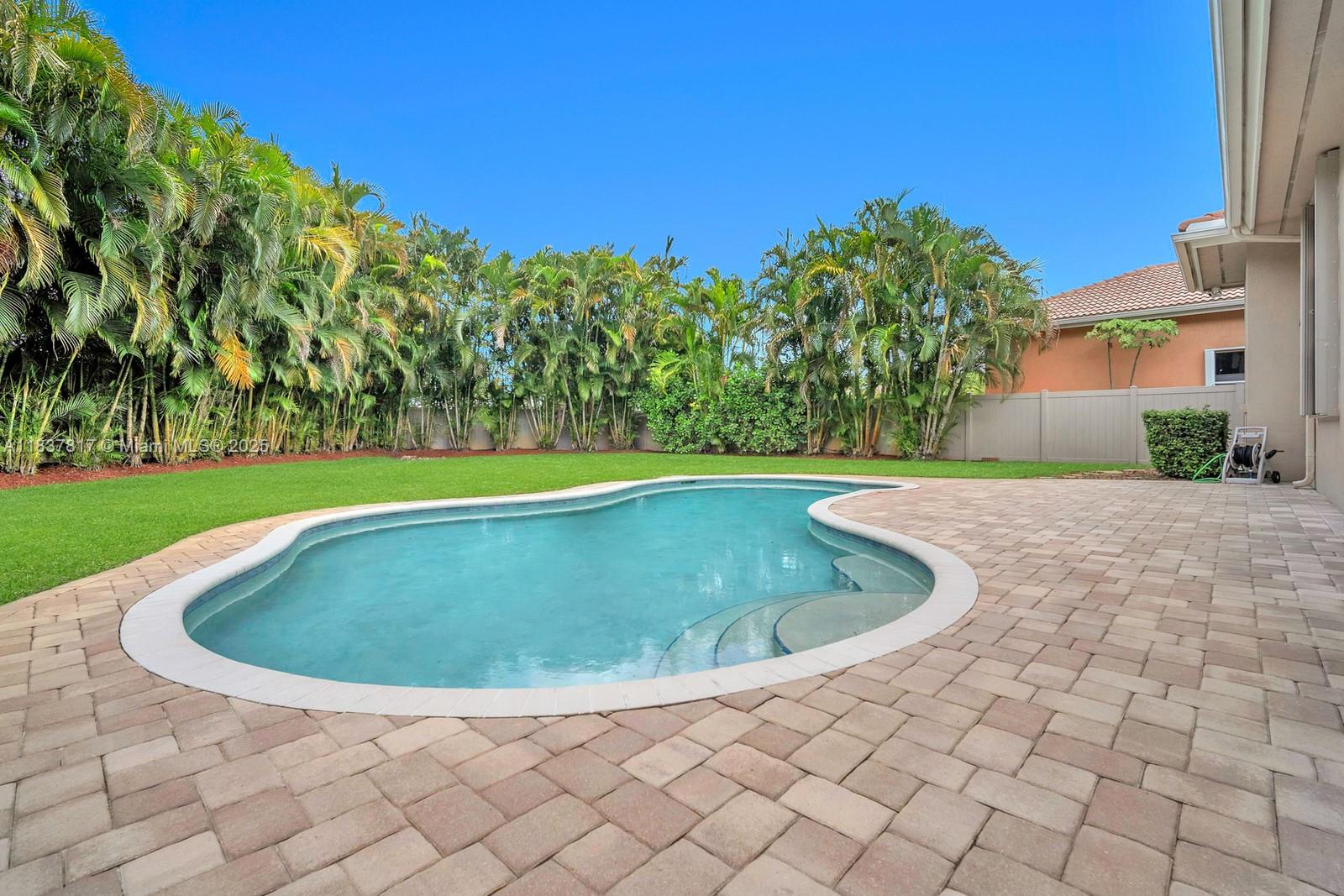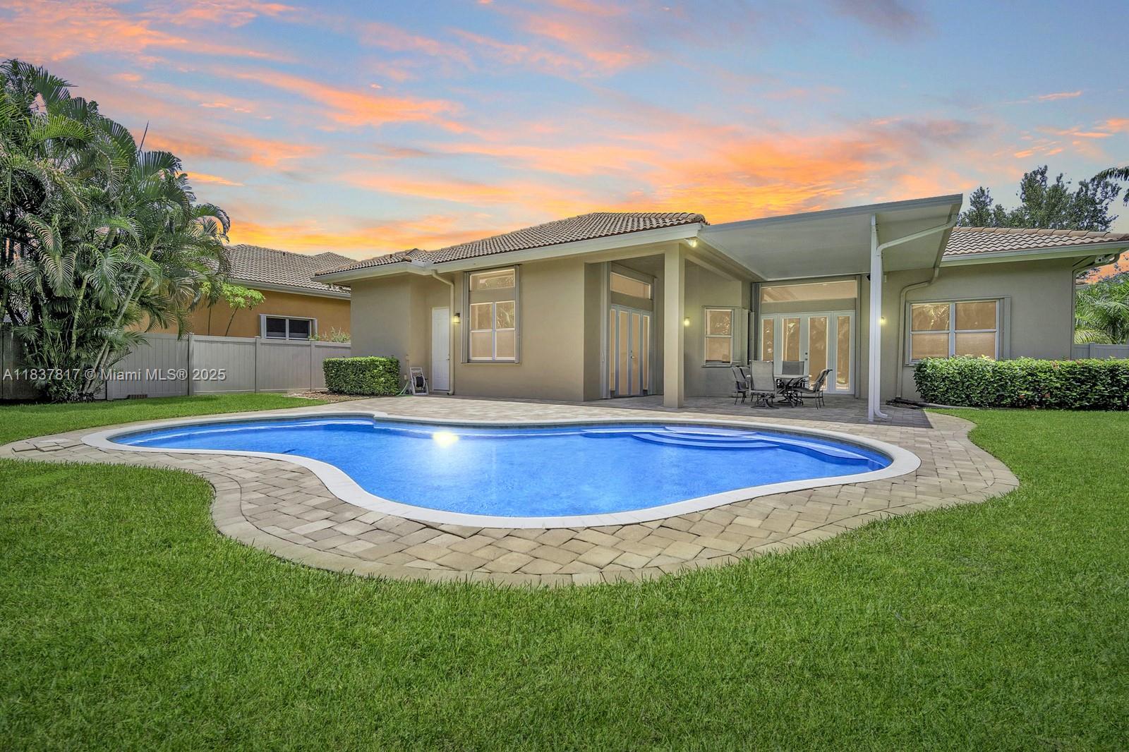 Welcome to this incredible oasis in the heart of Plantation at the Lagos Estates community! This immaculately maintained 5 bed, 3 bath home is situated on a premium, expansive 15,160 sq ft fenced lot in a gated community with only 18 homes. Spacious home with 2,592 sq ft offering an exceptional experience with a triple split bedroom plan, open kitchen counter-height seating, flowing areas for entertaining w living, family & dining rooms, brand new remodeled cabana bathroom, pretty wood-like flooring in all bedrooms, high ceilings, plantation shutters in living room & tinted windows throughout for added comfort. Spectacular outdoor space with sparkling pool, covered patio and mature landscaping. Additional features: newer A/C system & water heater, accordion shutters & gutters. Low HOA fee.