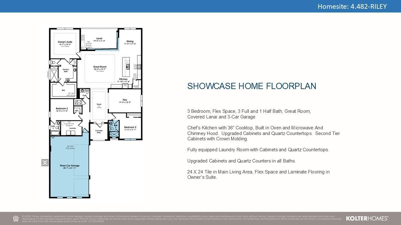 **New Construction** This brand-new Riley floorplan, built by Kolter Homes, is situated on a private homesite in Westlake's only gated 55+ community. The home includes 3 bedrooms, 3 1/2 bathrooms, and a 3-car garage. The home also includes gas cooking in the kitchen along with a 3'' thick quartz kitchen island and second tier upper cabinets. This Riley comes with the upgraded corner sliding glass door, spray foam insulation, under cabinet LED lighting, a laundry tub rough-in connection and a gas connection for a future pool heater.