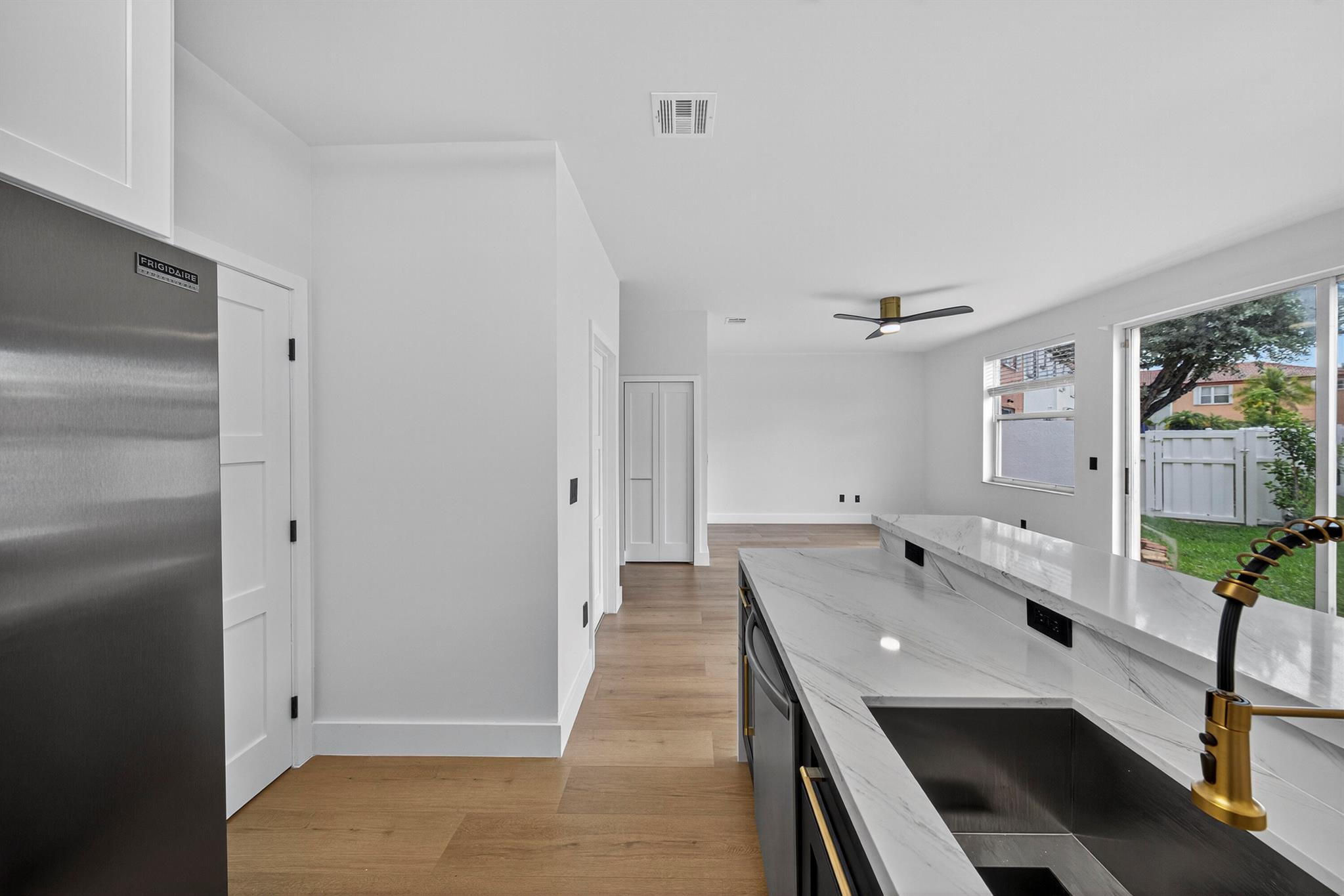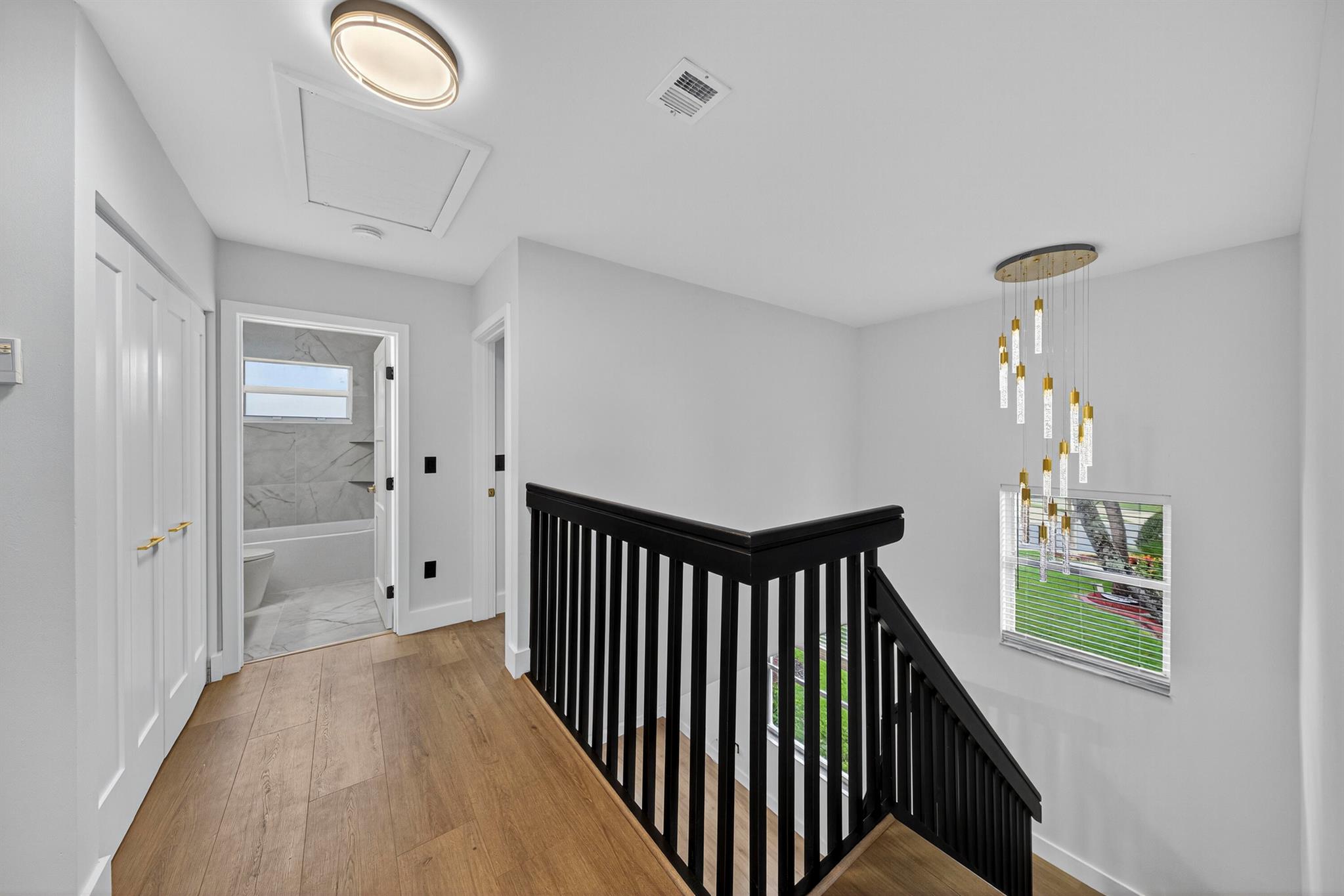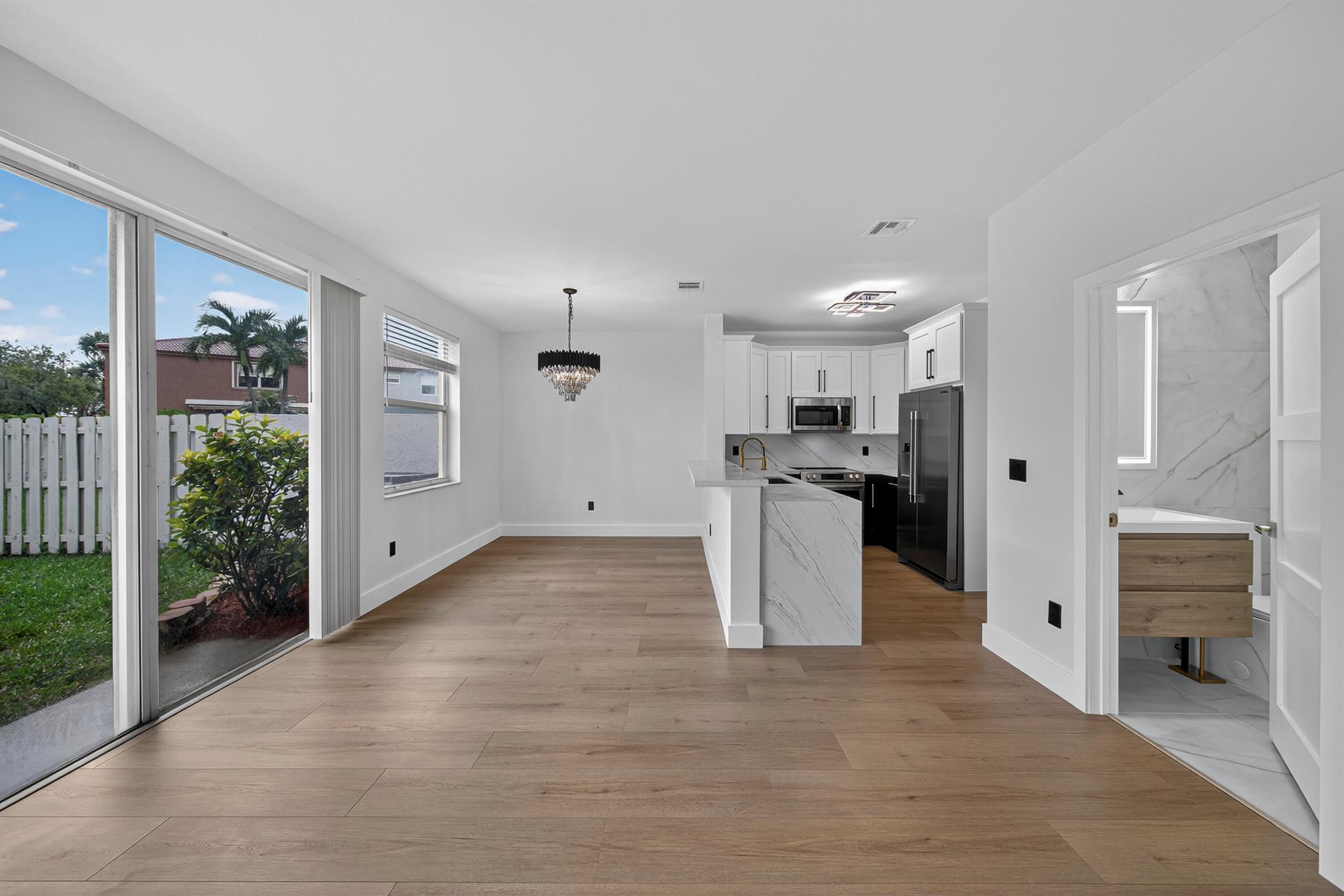 Step into this beautifully updated 3-bed, 2.5-bath home on a spacious corner lot. Timeless elegance meets modern luxury throughout this fully renovated property.Enjoy rich wood-grain flooring with water-resistant technology and a high-performance protective topcoat perfect for busy households. The kitchen features quartz countertops, stainless steel appliances, sleek soft-close cabinetry, bold black-and-gold hardware, and elegant chandeliers. A dramatic black staircase adds a striking focal point.Spa-inspired bathrooms include floating vanities, LED mirrors, marble-style tile, and gold rainfall fixtures. A new roof (2022) offers peace of mind.Located in a resort-style community with pools, courts, playgrounds, and picnic areas- all close to A-rated schools, shopping, and dining.