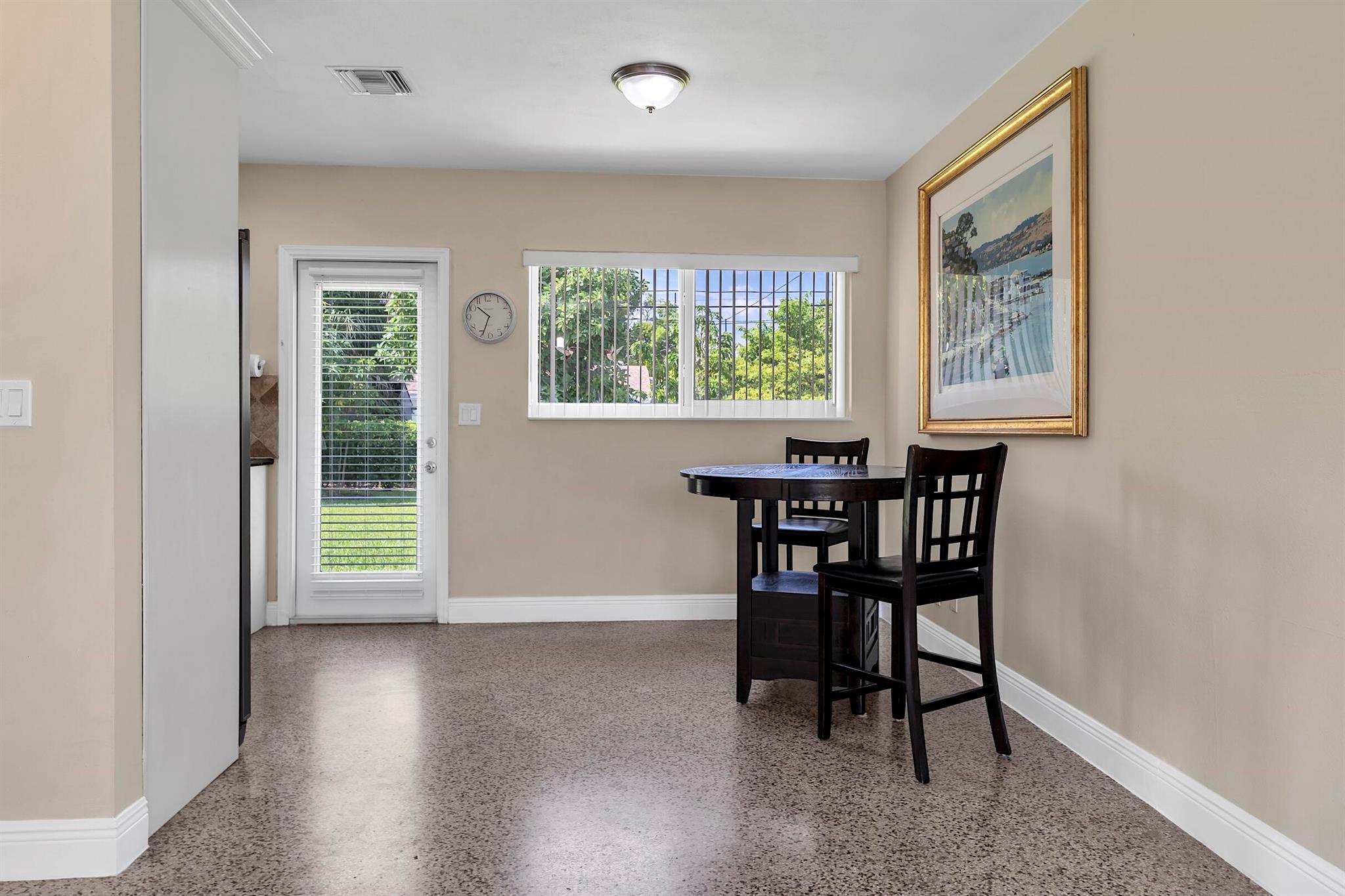 Welcome to this immaculately maintained 3/1 bath home that perfectly blends timeless charm with modern upgrades. The polished terrazzo floors flow throughout the light-filled interior allowing a seamless connection between the living spaces creating a more expansive feeling. Outfitted with hurricane impact windows and door, this home provides peace of mind and energy efficiency, along with a quiet, secure environment year-round. Outside, enjoy your own private oasis fully fenced featuring mature fruit trees, and impeccably maintained landscaping. This charming cottage is perfect for a primary residence, vacation home or investment opportunity. This move-in ready gem offers style, security and prime location.