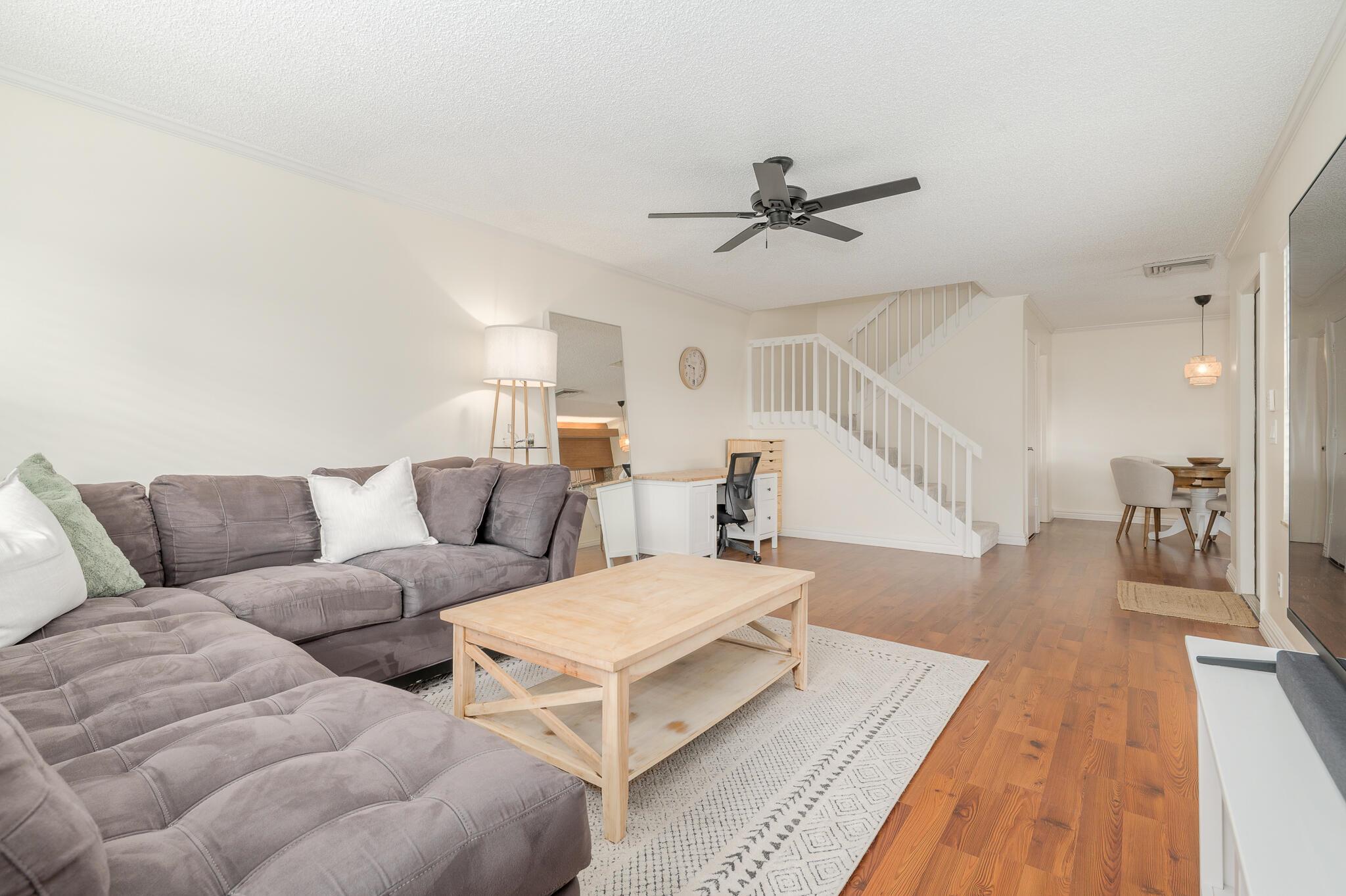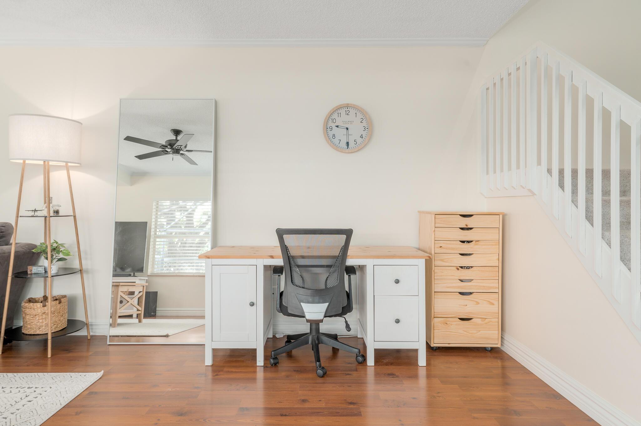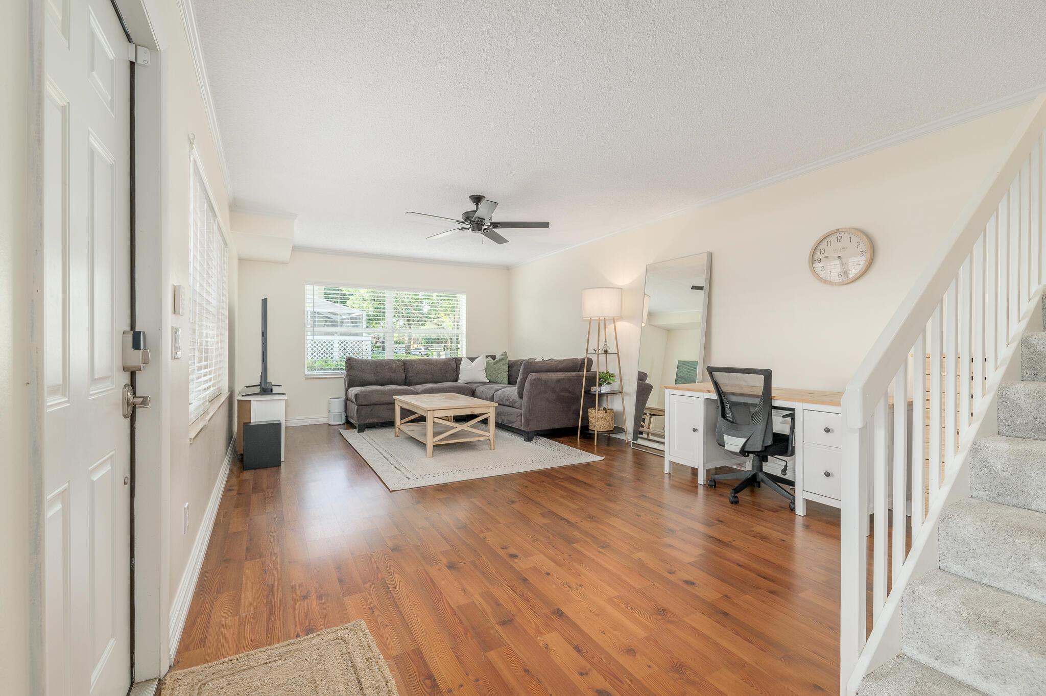 Beautifully Updated Townhome with Lake Views!! Your light & bright 2-bed, 2.5-bath townhome offers serene lake views from every room. The spacious layout features 2 ensuite bedrooms upstairs and a convenient half bath and washer/dryer on the main level. The kitchen has been tastefully updated, and the stunning primary bath includes quartz countertops & modern finishes. Easy-care laminate flooring flows through the dining & living areas. Enjoy peaceful mornings & tranquil evenings with lake views & exceptional privacy from your spacious, screened patio. Located in the highly sought-after Stamford at the Villages of Palm Beach Lakes, known for its tree-lined streets & park-like setting. Amenities include pools, parks, & tennis courts. Nearby PBI airport, shopping, dining, and entertainment.