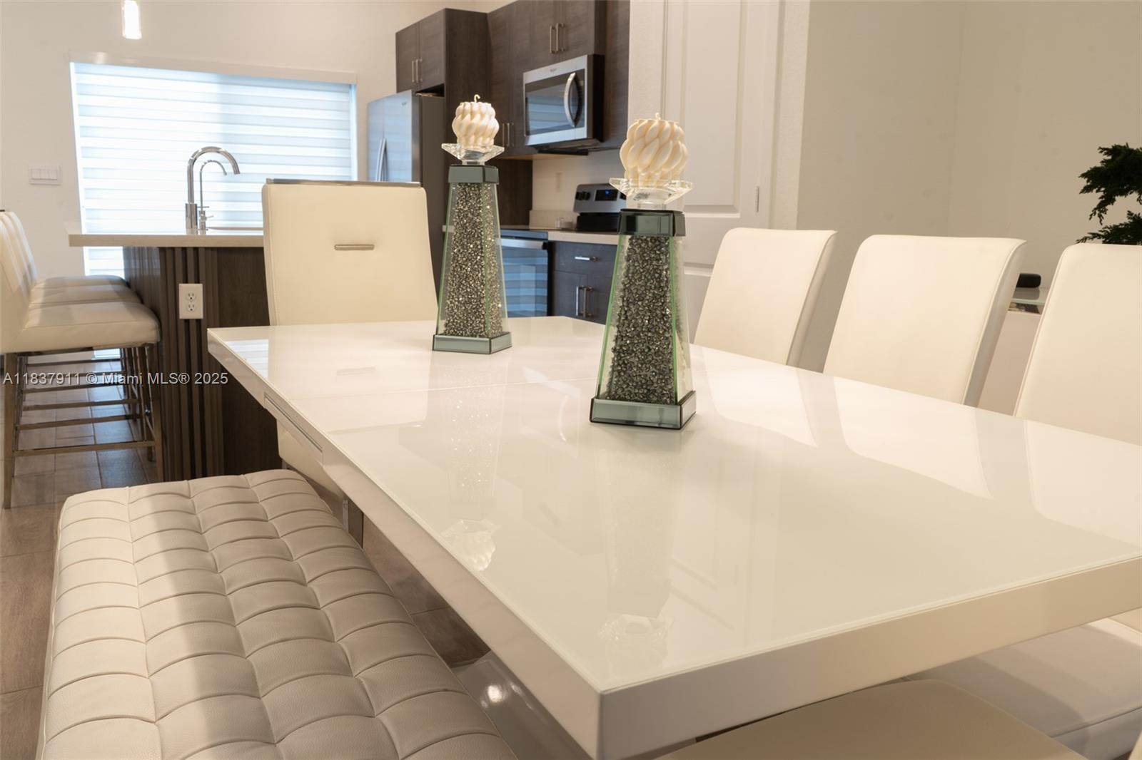 Beautiful 3-bedroom, 2.5-bath home located in a quiet community with low HOA fees. Features a covered garage for 1 car plus space for 2 more. Fully fenced backyard with low-maintenance artificial grass, perfect for relaxing or entertaining. Sold fully furnished, with furniture negotiable. Modern kitchen with stainless steel appliances, washer, and dryer included. The primary bedroom offers a lovely private balcony to unwind. Conveniently located near supermarkets, shops, and everything you need for a comfortable lifestyle. Move-in ready!