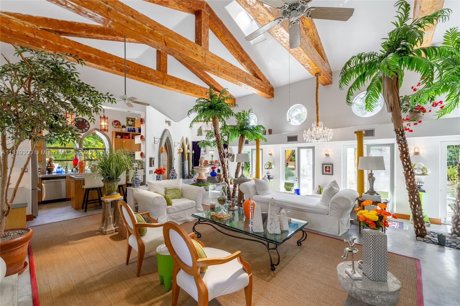 Nestled in the heart of South Miami, this Mediterranean gem is a true architectural masterpiece designed by architect Jose Anthony Enriquez. This one-of-a-kind home stands out in the community with its unique design and exquisite craftsmanship. Every door is handmade from wood, adding a touch of artisanal elegance. The grand vaulted ceilings are adorned with hand-stamped wood beam accents, evoking the grandeur of a majestic palace. The polished cement flooring throughout enhances the home's modern yet timeless appeal. This home is not just a place to live, but a work of art that exudes luxury and sophistication. The newly updated white exterior enhances curb appeal and highlights the home’s distinctive lines. Ideal as a private residence or a high-performing short-term rental investment.