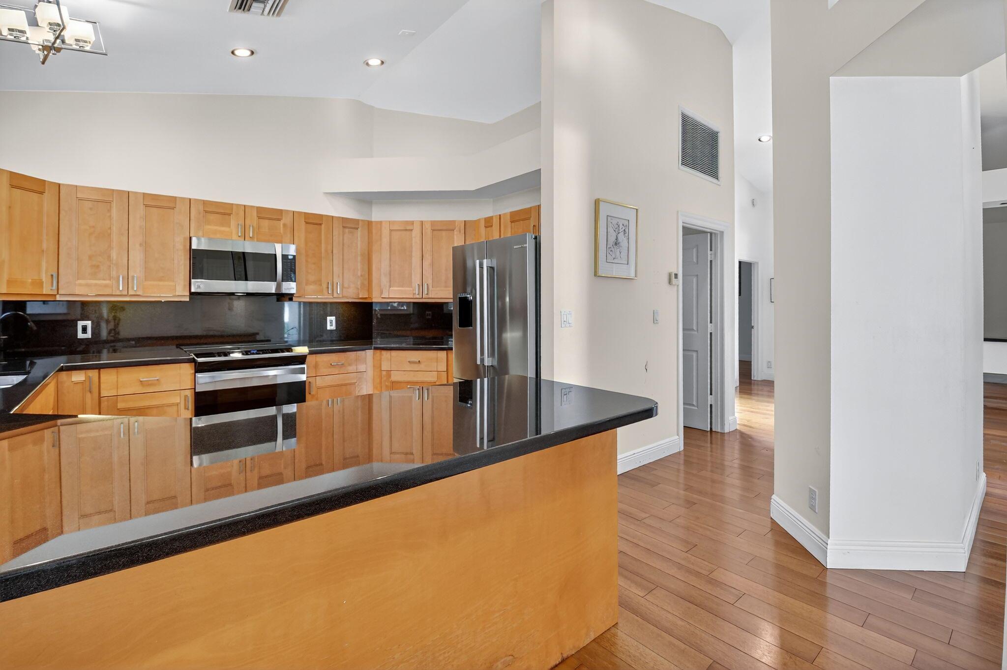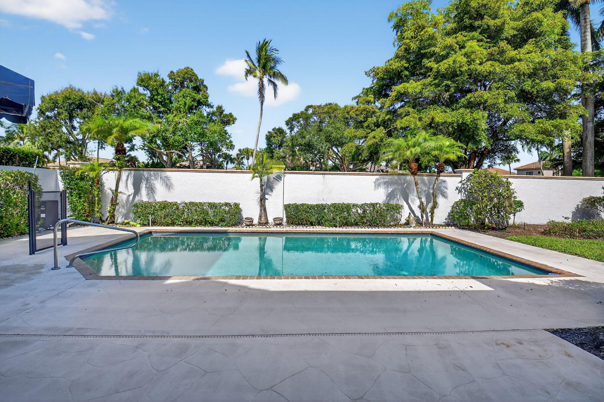 Welcome to your private oasis in the prestigious village of Fairway Bend, located within the award-winning Broken Sound Country Club. This spacious one-story single-family home offers over 2,300 square feet of thoughtfully designed living space on an expansive 1/4-acre lot. With 3 generously sized bedrooms and 2.5 baths, this residence features a desirable split bedroom floor plan, perfect for both privacy and functionality. Smooth walls and clean lines create a modern, timeless aesthetic, while newer impact windows and doors provide peace of mind and energy efficiency. Step outside to your enclosed backyard retreat--ideal for entertaining or relaxing--featuring a private pool surrounded by lush landscaping and ample space for outdoor living. Don't miss this rare opportunity to own this