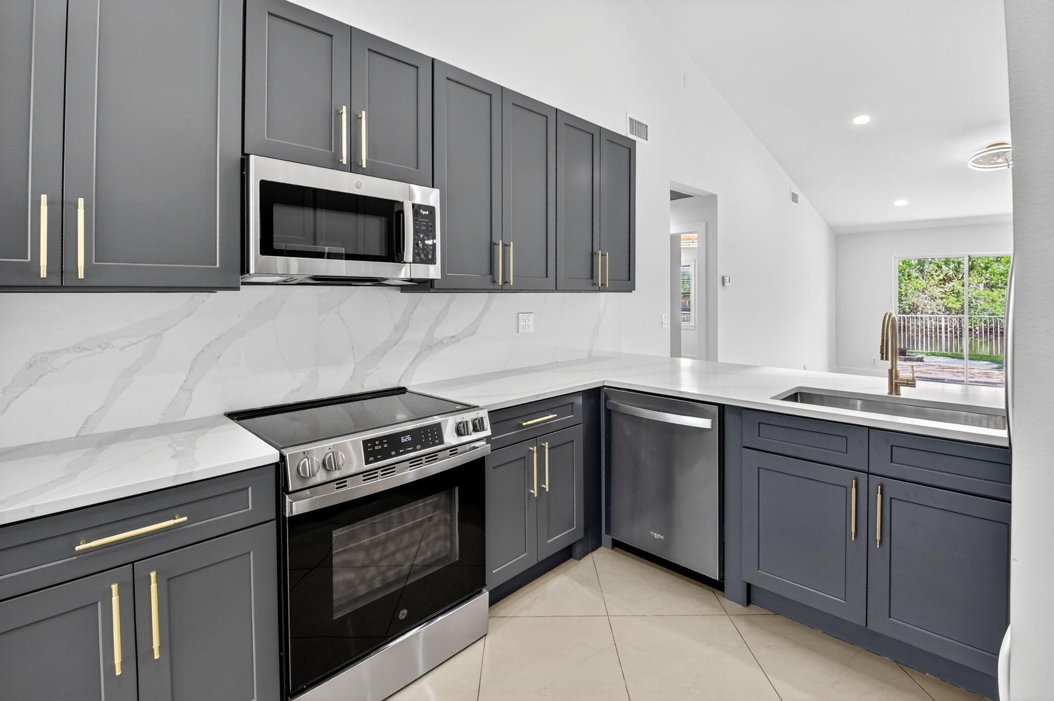 Move-in ready and beautifully updated, this 4-bedroom, 2-bathroom home in the highly desirable Boca Chase community offers comfort, style, and space--inside and out. Step into the brand-new kitchen featuring stunning quartz countertops, a matching backsplash, and new appliances. The spacious master suite boasts a luxurious master bath with a free-standing soaking tub, walk-in closet, and modern finishes. Three additional generously sized bedrooms showcase new flooring and ample closet space, perfect for family, guests, or a home office. Enjoy Florida living at its best in your oversized, fully fenced backyard--complete with a tiled deck, built-in firepit, outdoor lighting, and a large side yard ideal for pets and children. Community amenities include a heated pool and clubhouse, tennis and