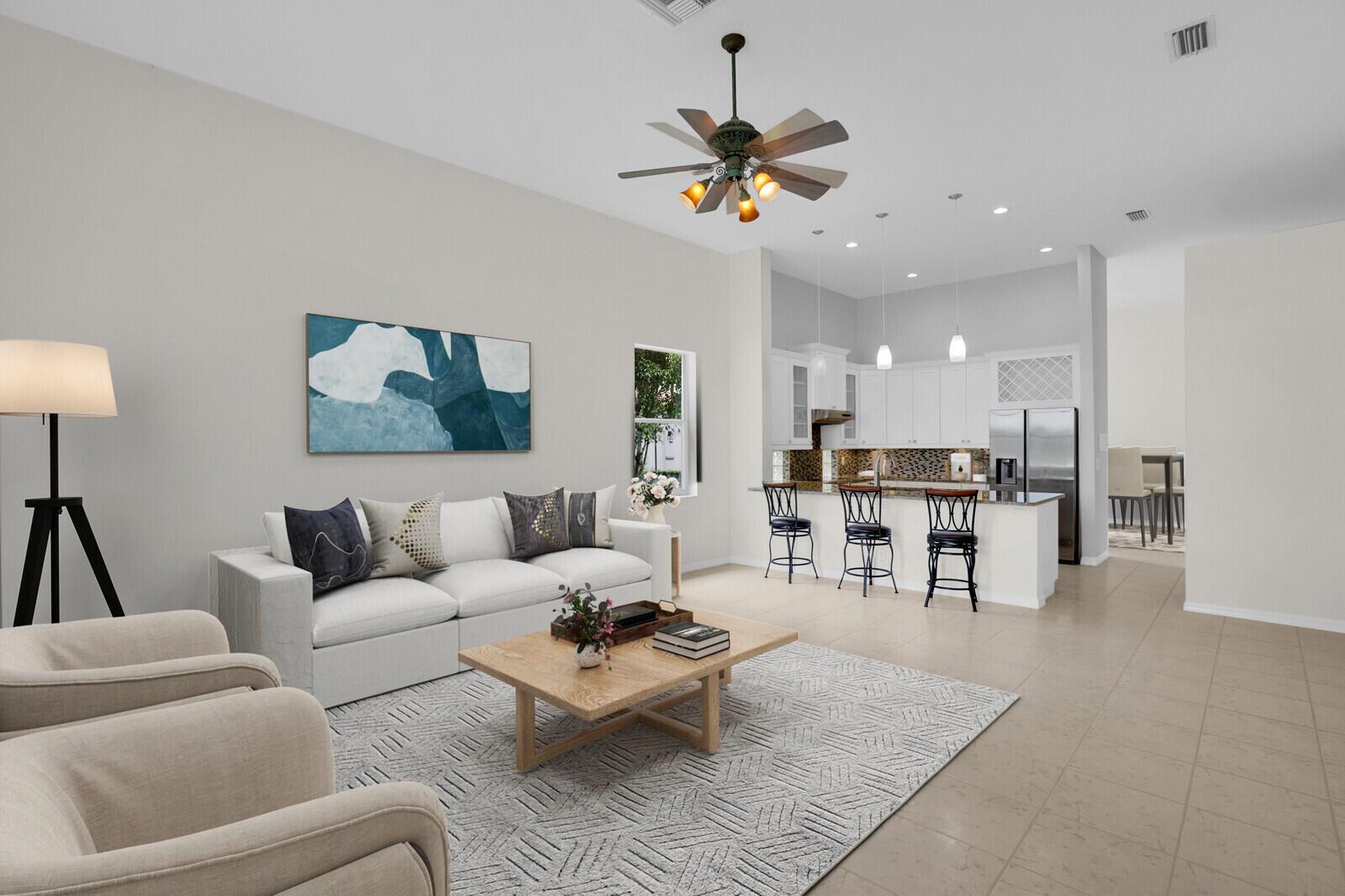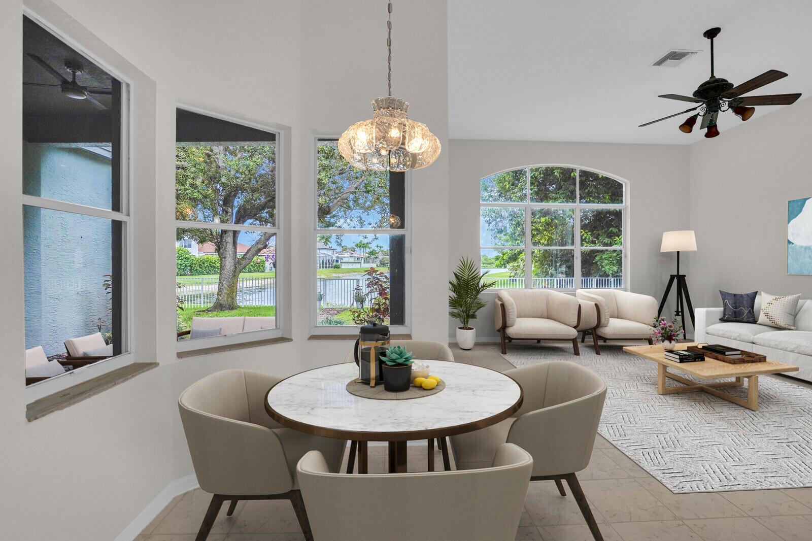 Step into this rare 4-bedroom, 2.5-bathroom home located in the sought after gated community of The Shores at Boca Raton. Situated on one of the best waterfront lots in the community with long lake views, this home offers a rare sense of privacy. Brand new roof installed in 2025! Curb appeal sets the tone with fresh landscaping and a freshly painted exterior inviting you inside to a thoughtfully designed floor plan filled with natural light.Throughout the home, beautiful laminate and tile flooring create a warm, low-maintenance atmosphere. The oversized living room offers 12 foot ceilings and plenty of seating room perfect for soaking in the stunning lake view.