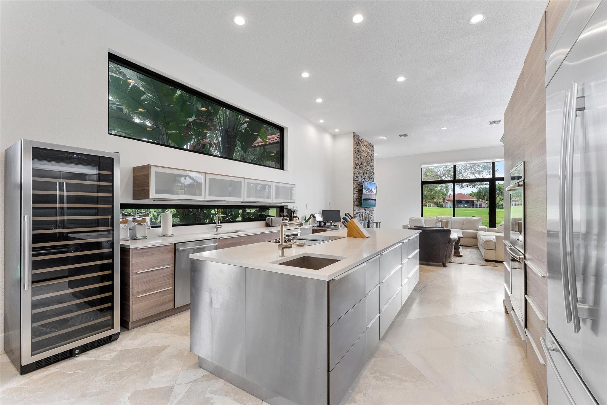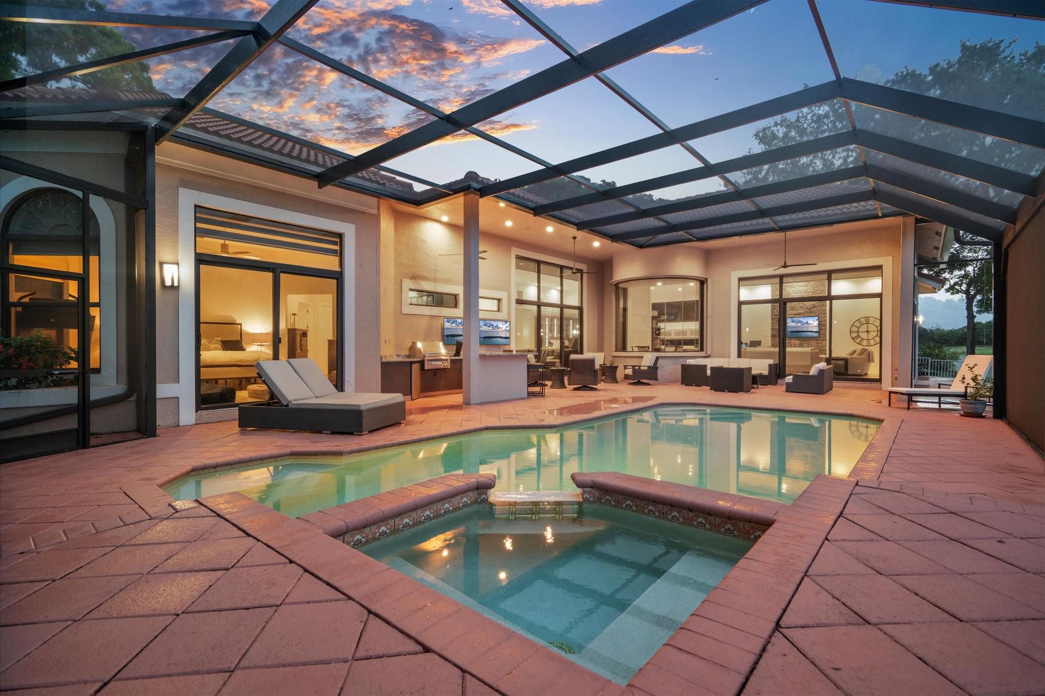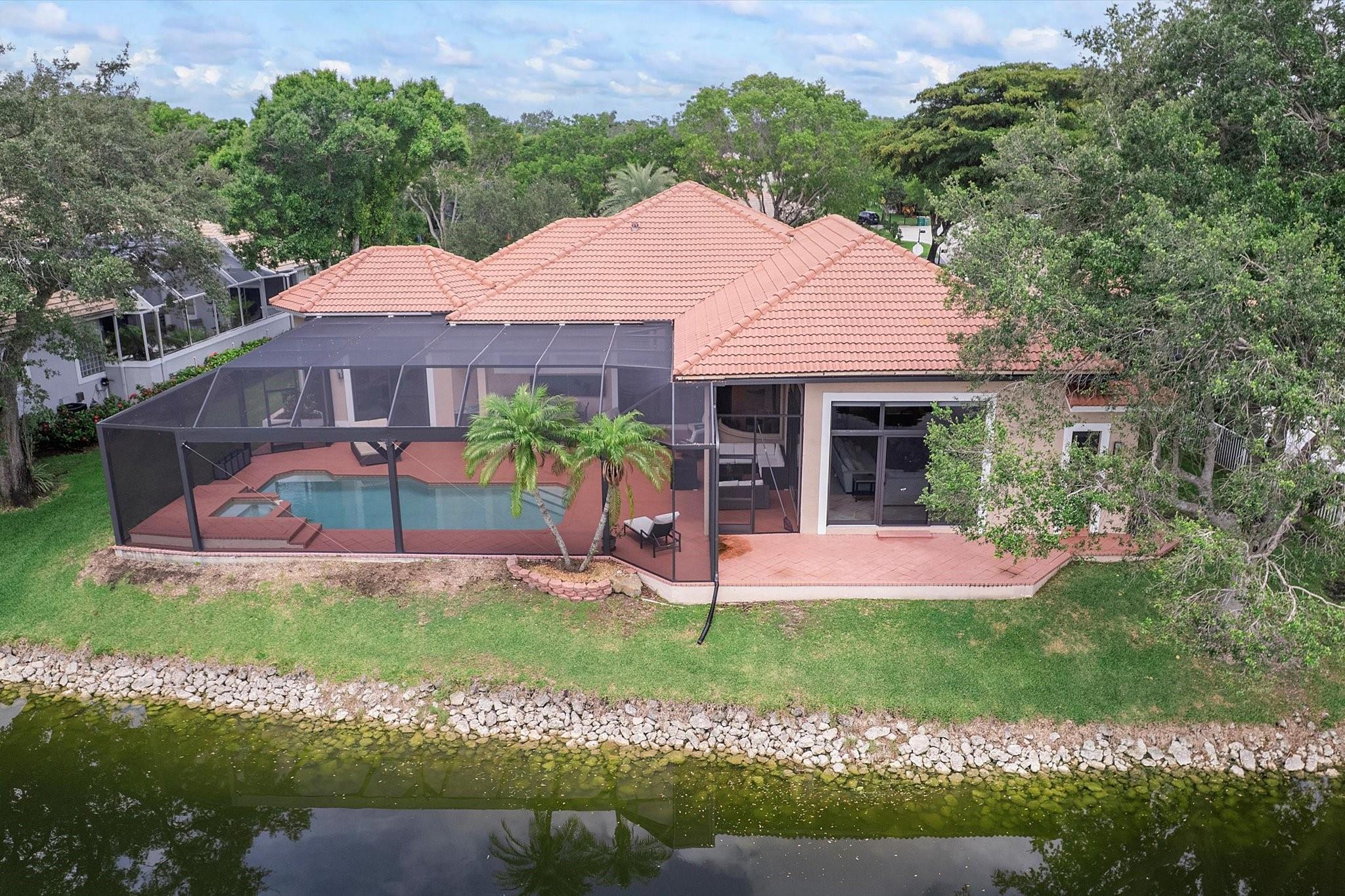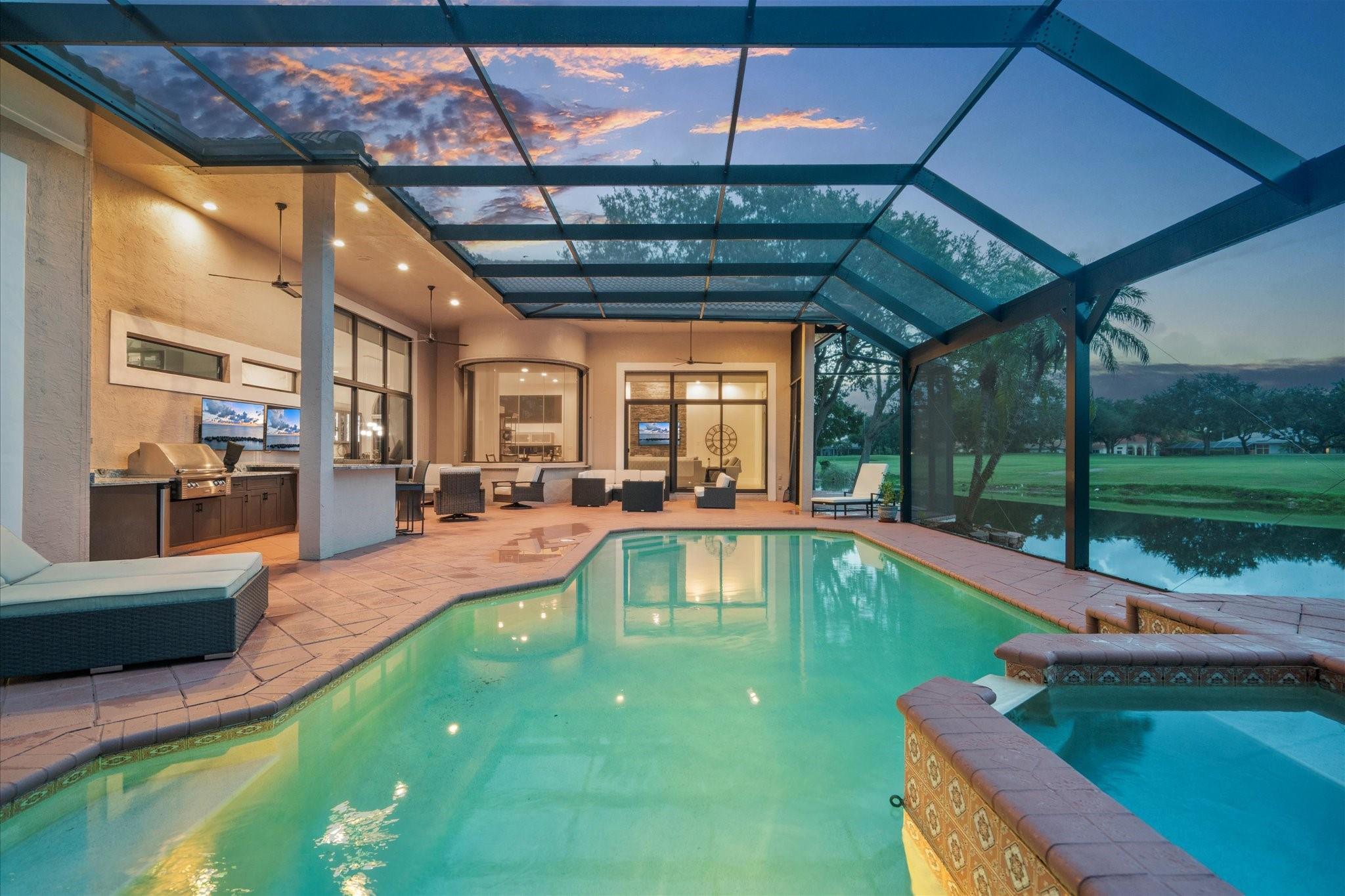 Stunning 4BR/4.5BA modern home in prestigious Eagle Trace with water and golf views. Features include high ceilings, impact windows and doors and LED lighting. The chef’s kitchen boasts JennAir appliances, a quartz island, and custom cabinetry. A large dining area is perfect for entertaining, & both the living and family rooms overlook the pool. The luxurious primary suite offers 2 custom walk-in closets and a spa-style bath with a floating vanity, soaking tub, and glass-enclosed shower. Enjoy a resurfaced saltwater pool, outdoor kitchen, high-end pool enclosure, new wireless sprinkler system, and updated landscaping. A newer A/C. Gated community with golf, tennis, and more. See feature sheet.