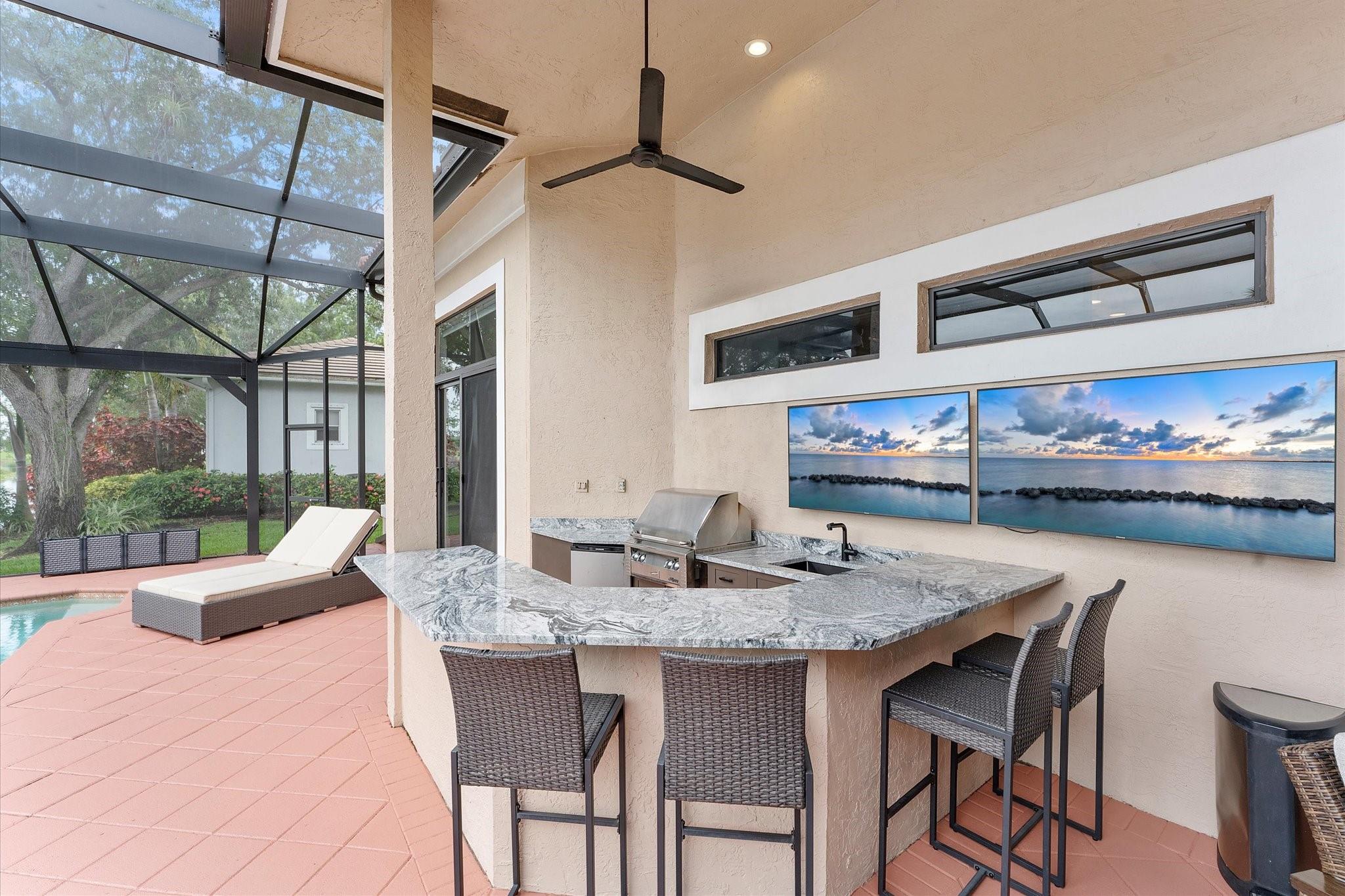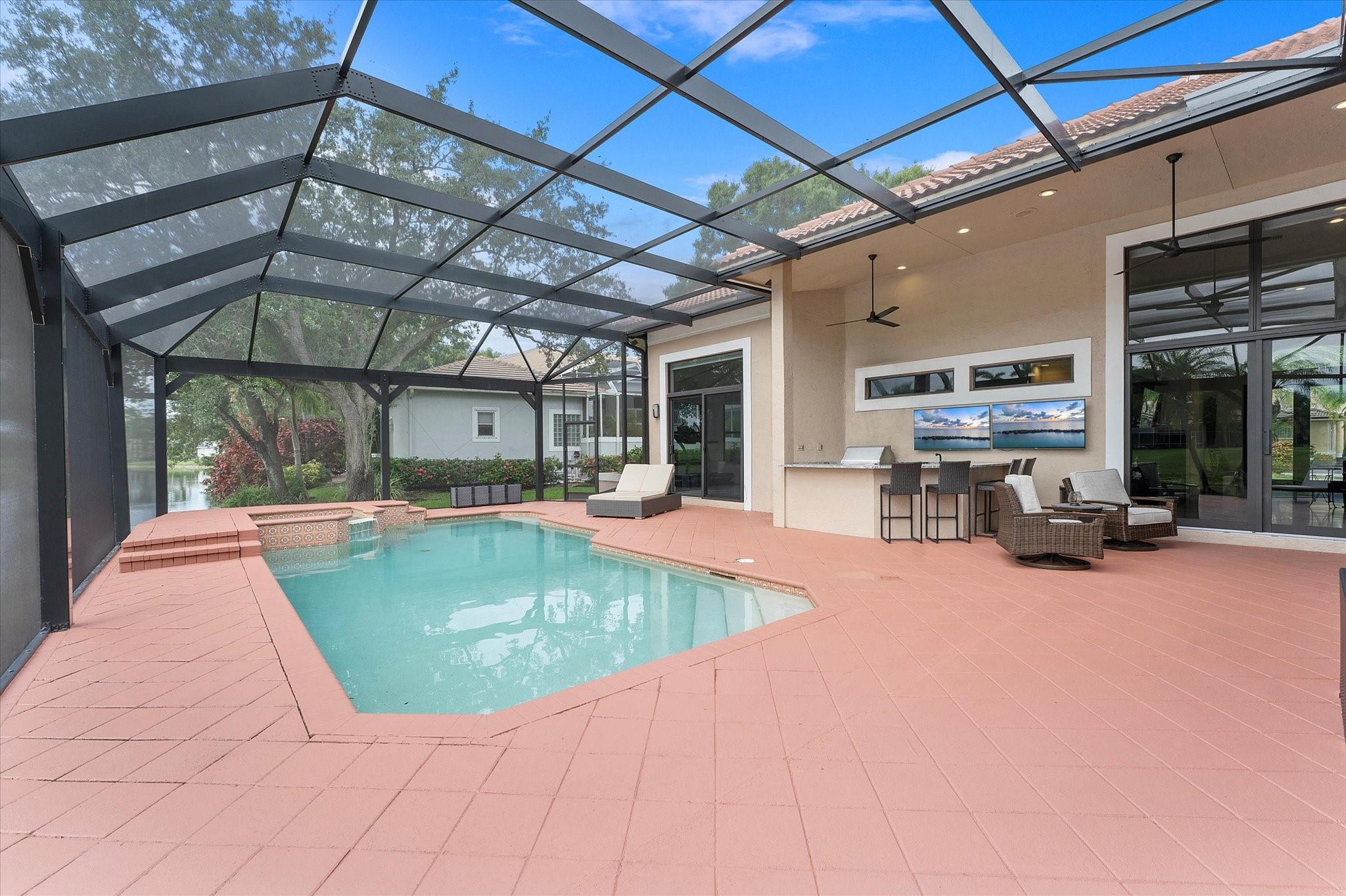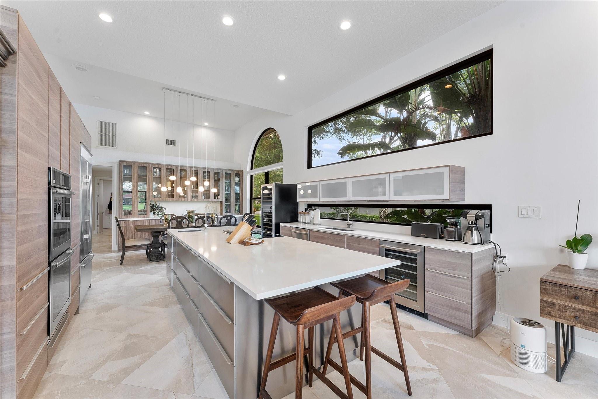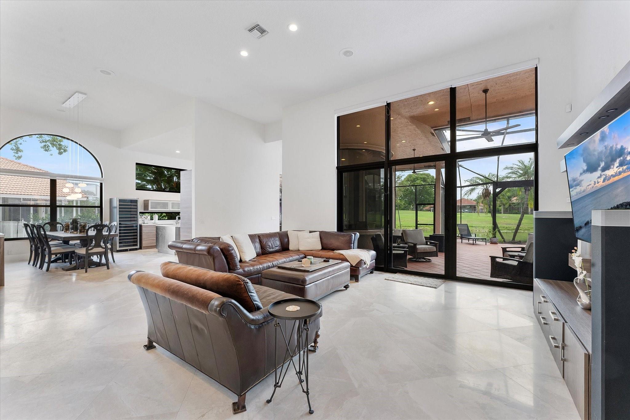Stunning 4BR/4.5BA modern home in prestigious Eagle Trace with water and golf views. Features include high ceilings, impact windows and doors and LED lighting. The chef’s kitchen boasts JennAir appliances, a quartz island, and custom cabinetry. A large dining area is perfect for entertaining, & both the living and family rooms overlook the pool. The luxurious primary suite offers 2 custom walk-in closets and a spa-style bath with a floating vanity, soaking tub, and glass-enclosed shower. Enjoy a resurfaced saltwater pool, outdoor kitchen, high-end pool enclosure, new wireless sprinkler system, and updated landscaping. A newer A/C. Gated community with golf, tennis, and more. See feature sheet.