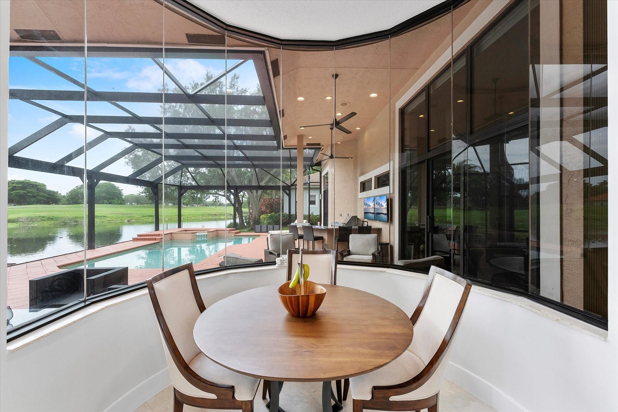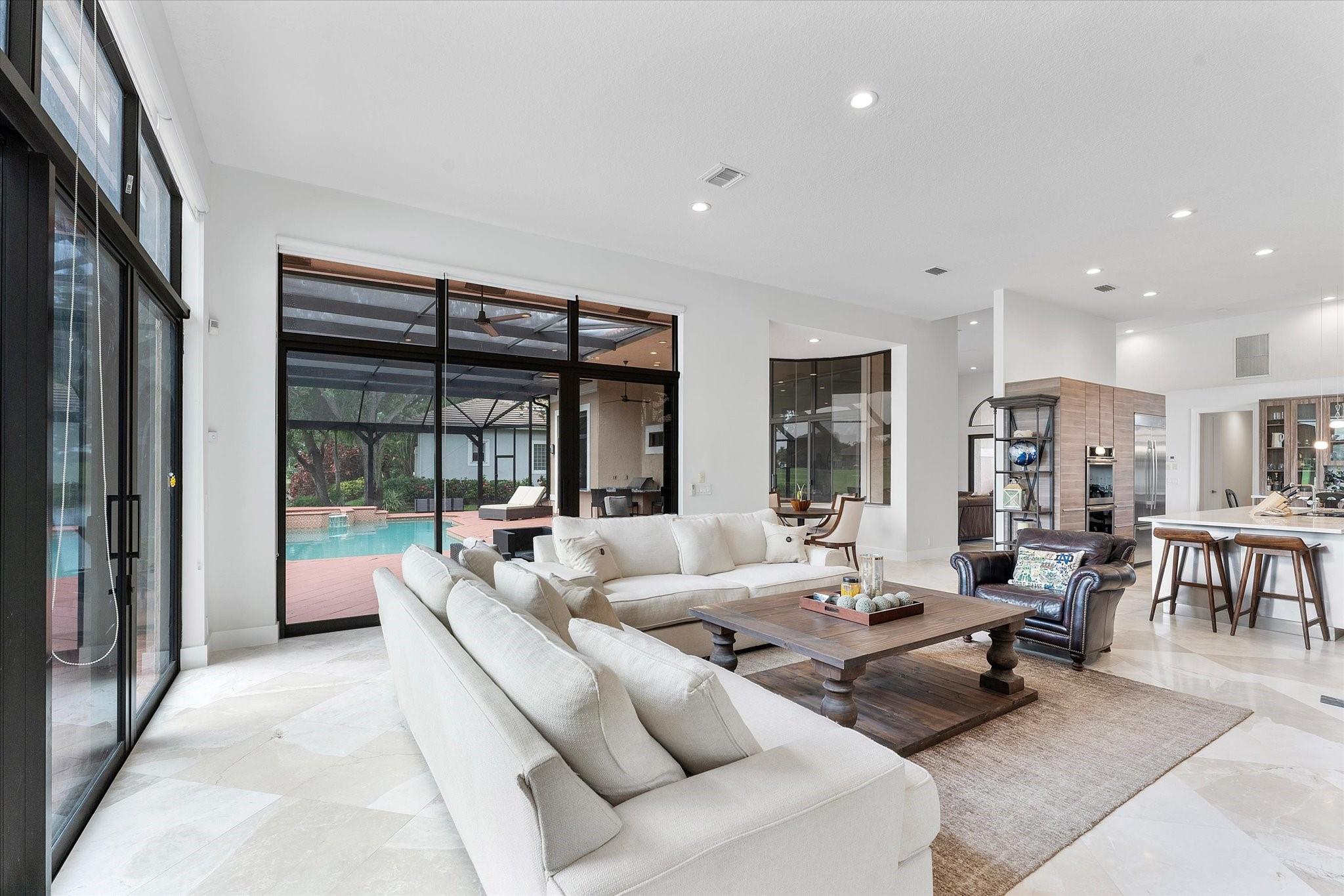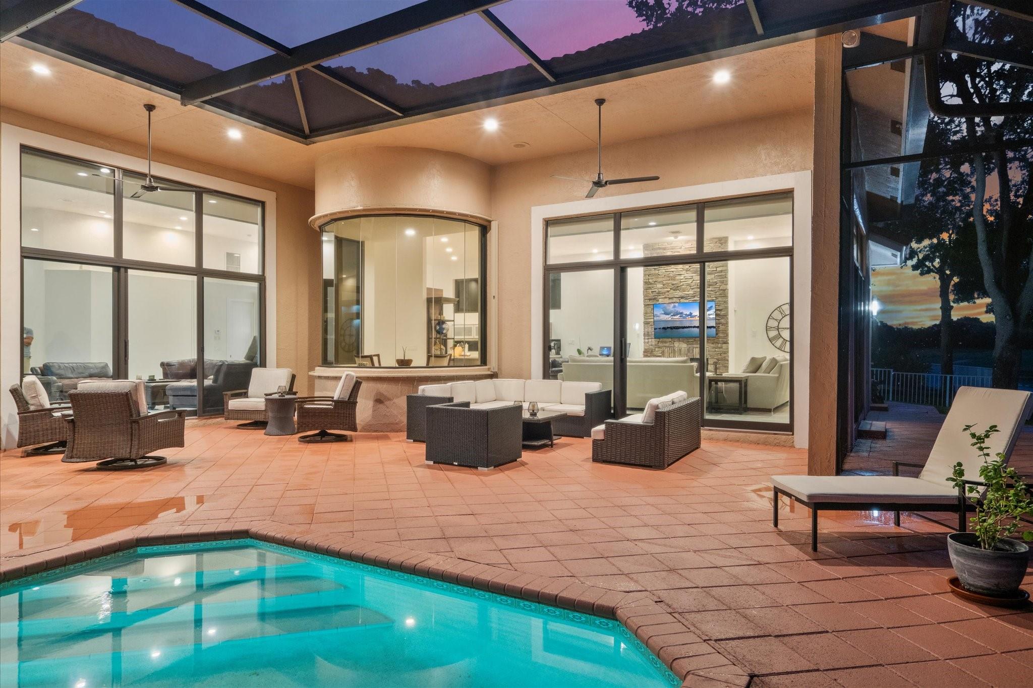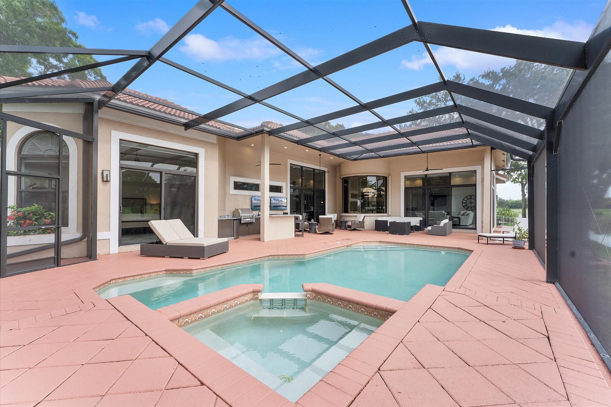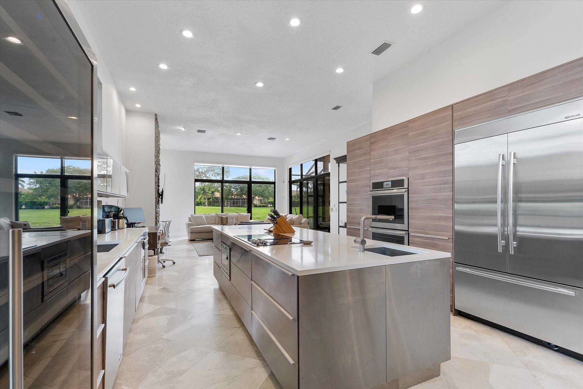 Stunning 4BR/4.5BA modern home in prestigious Eagle Trace with water and golf views. Features include high ceilings, impact windows and doors and LED lighting. The chef’s kitchen boasts JennAir appliances, a quartz island, and custom cabinetry. A large dining area is perfect for entertaining, & both the living and family rooms overlook the pool. The luxurious primary suite offers 2 custom walk-in closets and a spa-style bath with a floating vanity, soaking tub, and glass-enclosed shower. Enjoy a resurfaced saltwater pool, outdoor kitchen, high-end pool enclosure, new wireless sprinkler system, and updated landscaping. A newer A/C. Gated community with golf, tennis, and more. See feature sheet.
