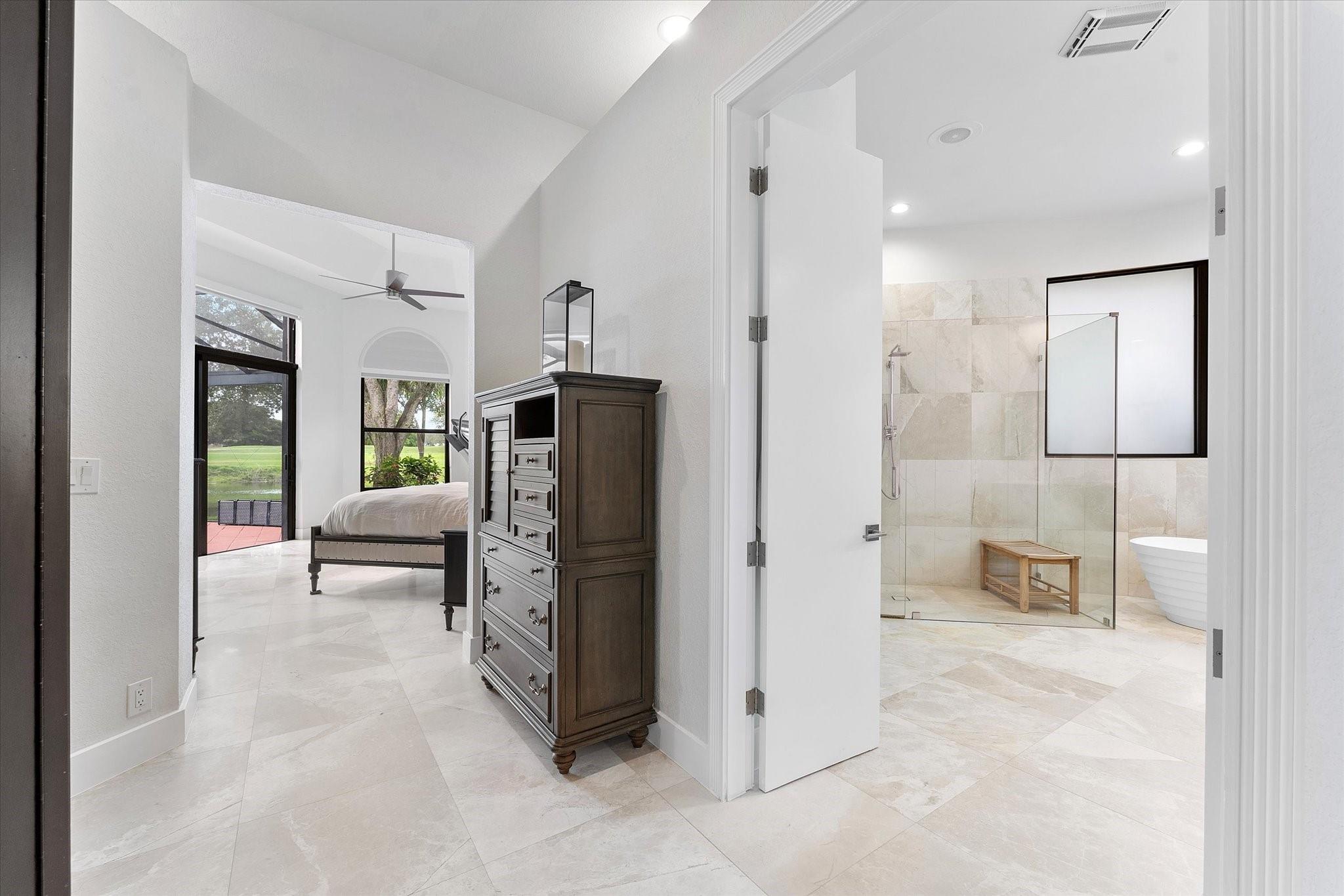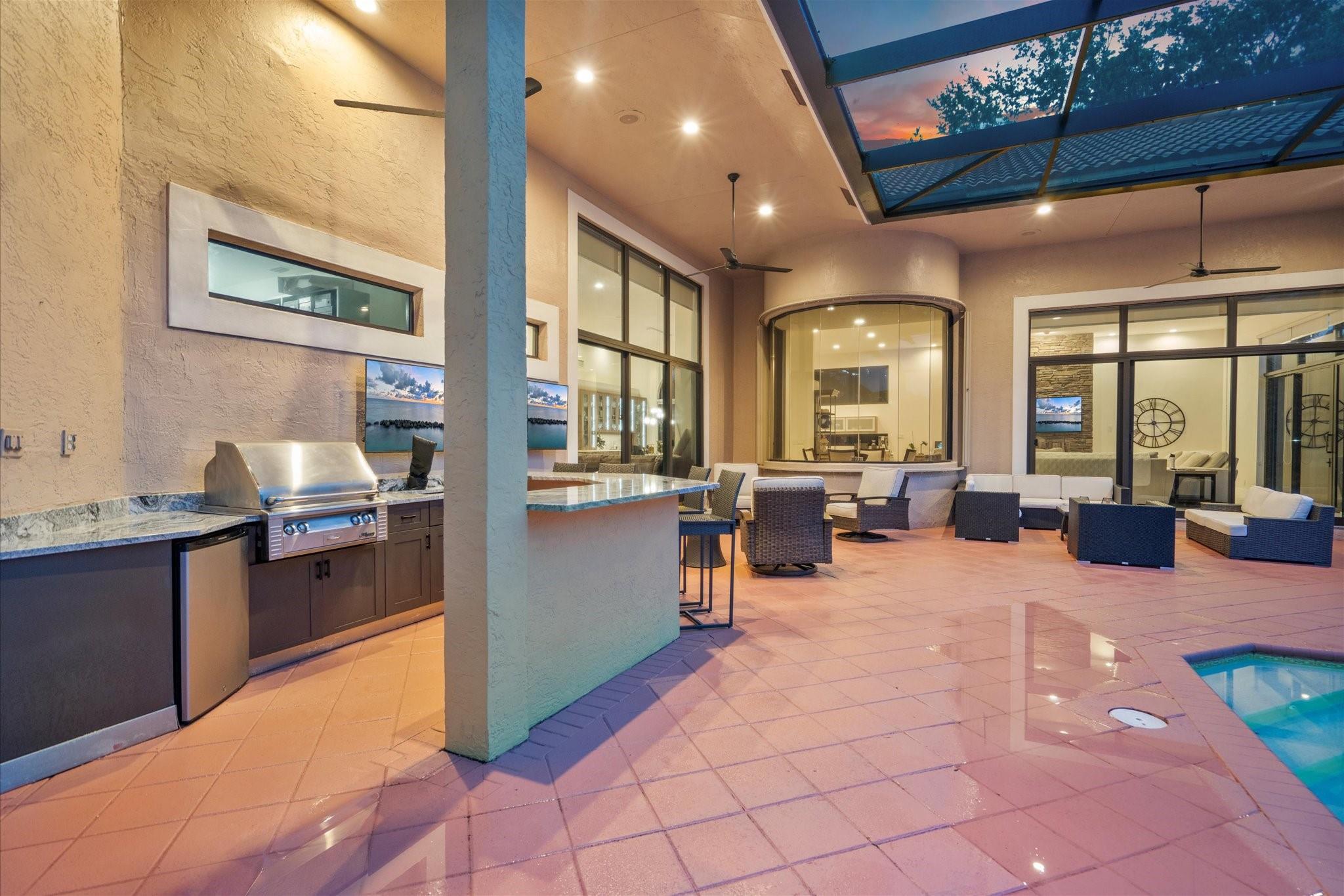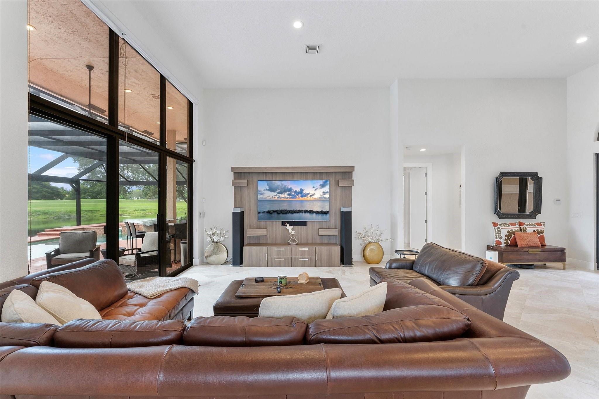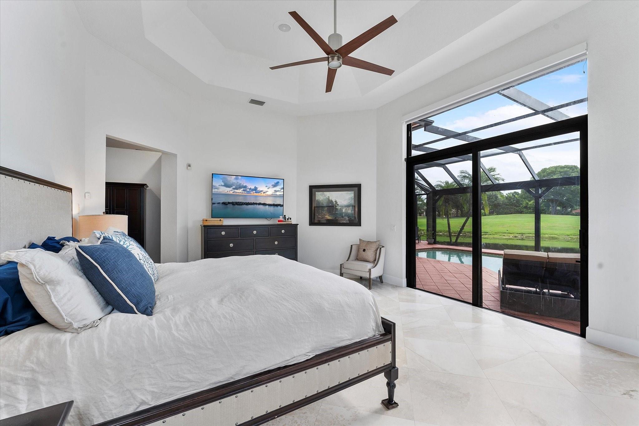 Stunning 4BR/4.5BA modern home in prestigious Eagle Trace with water and golf views. Features include high ceilings, impact windows and doors and LED lighting. The chef’s kitchen boasts JennAir appliances, a quartz island, and custom cabinetry. A large dining area is perfect for entertaining, & both the living and family rooms overlook the pool. The luxurious primary suite offers 2 custom walk-in closets and a spa-style bath with a floating vanity, soaking tub, and glass-enclosed shower. Enjoy a resurfaced saltwater pool, outdoor kitchen, high-end pool enclosure, new wireless sprinkler system, and updated landscaping. A newer A/C. Gated community with golf, tennis, and more. See feature sheet.