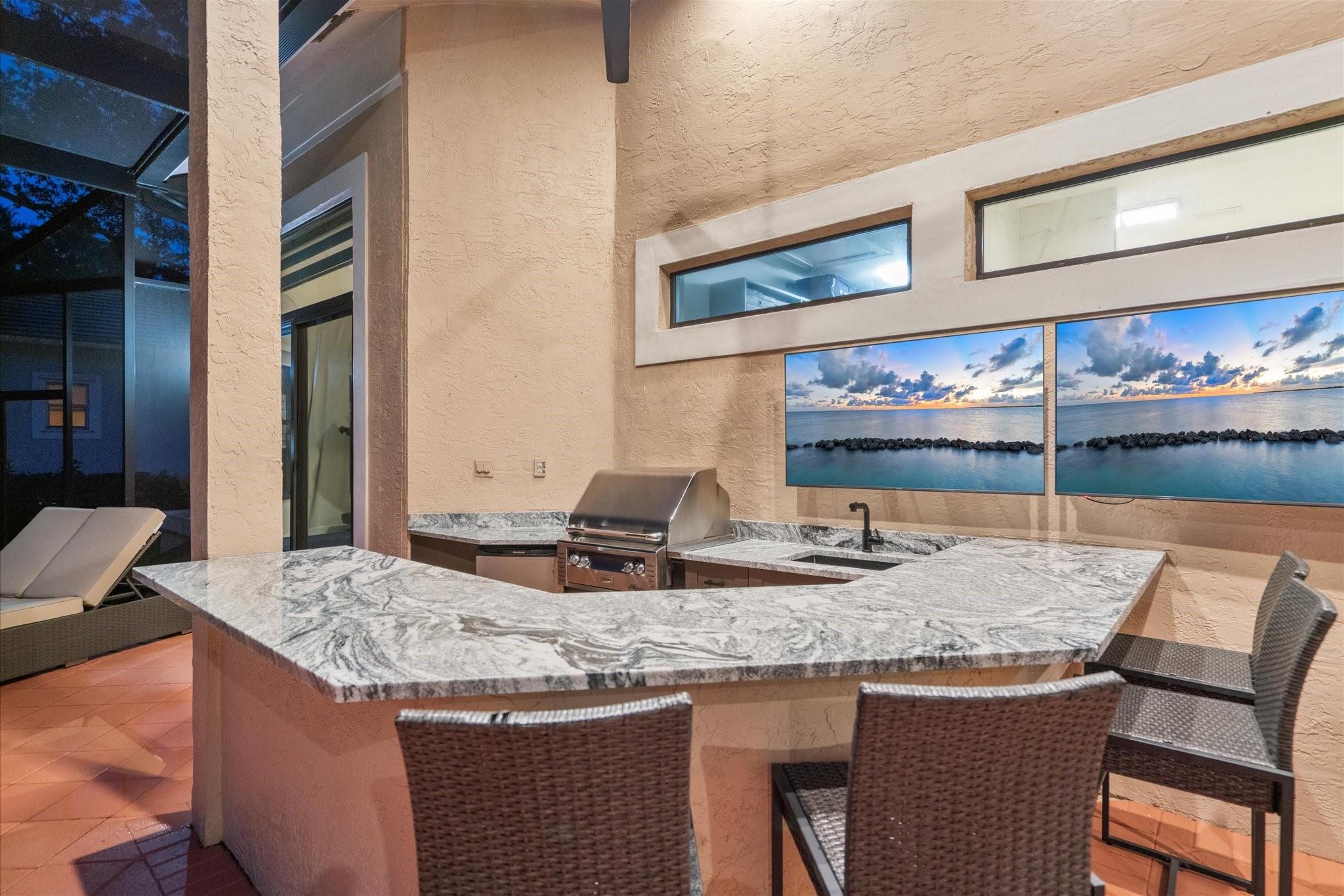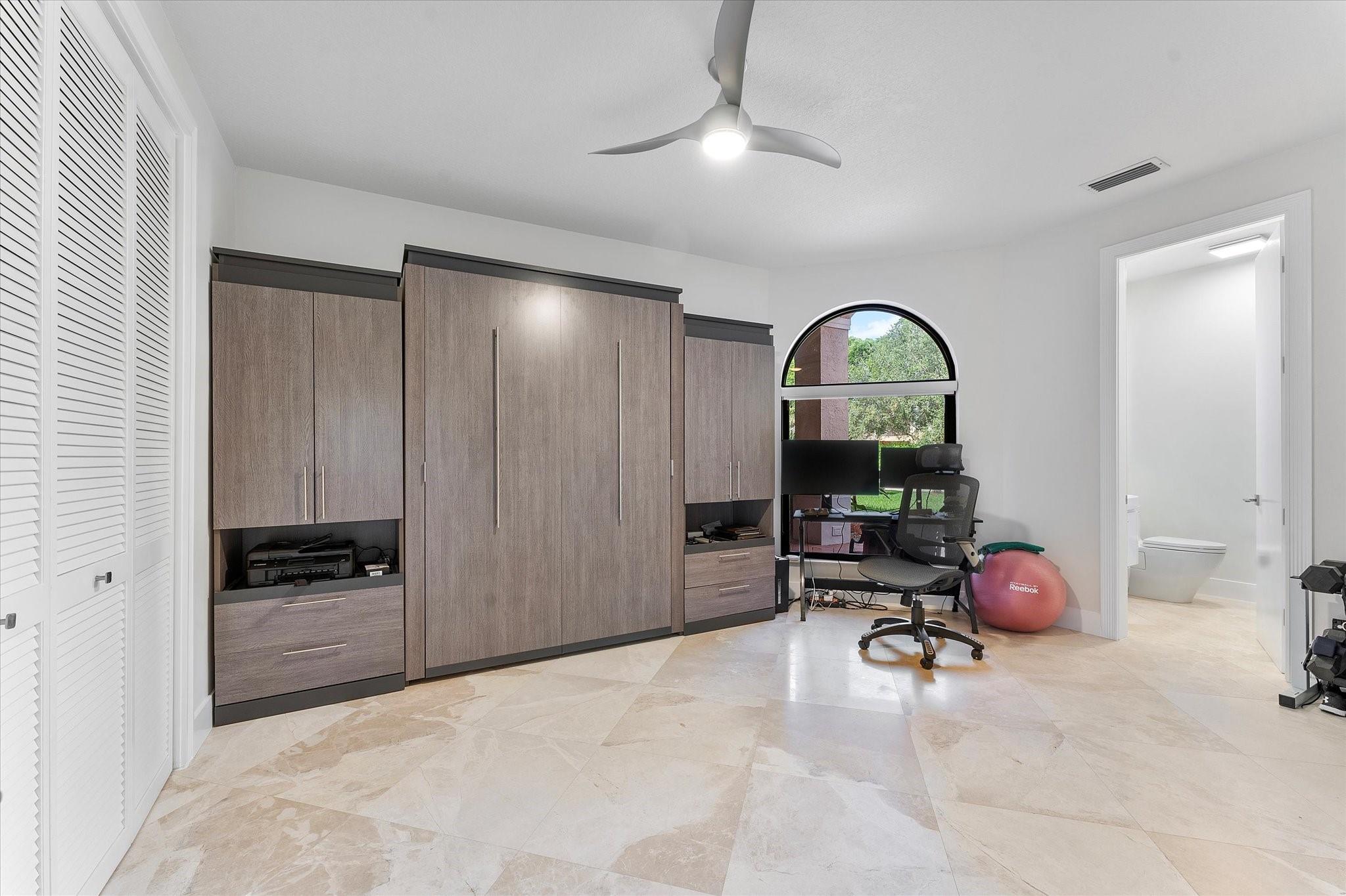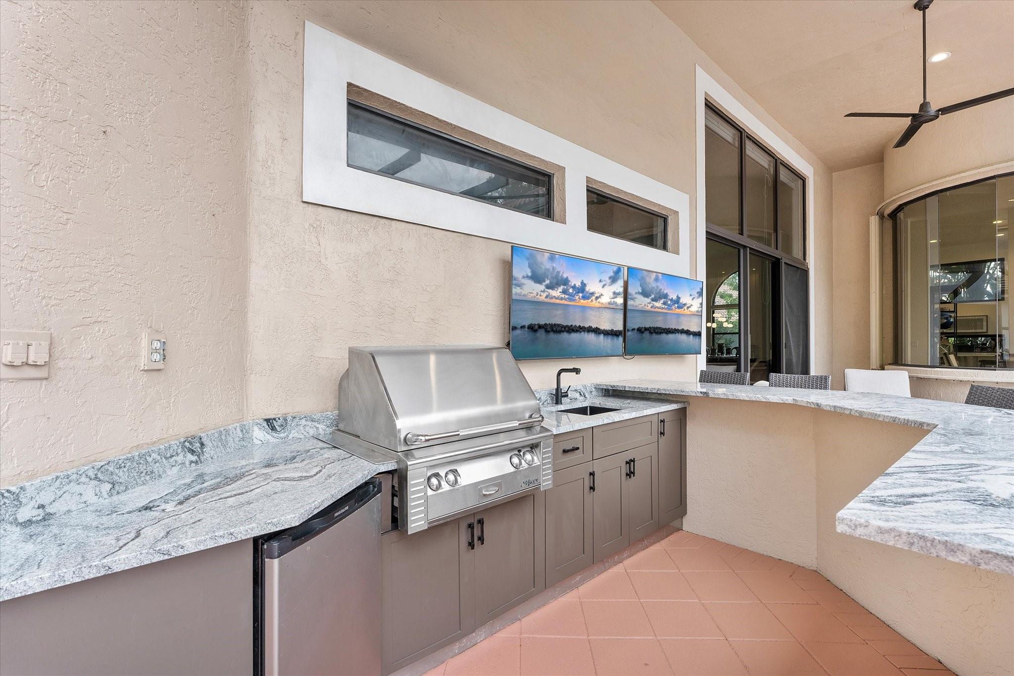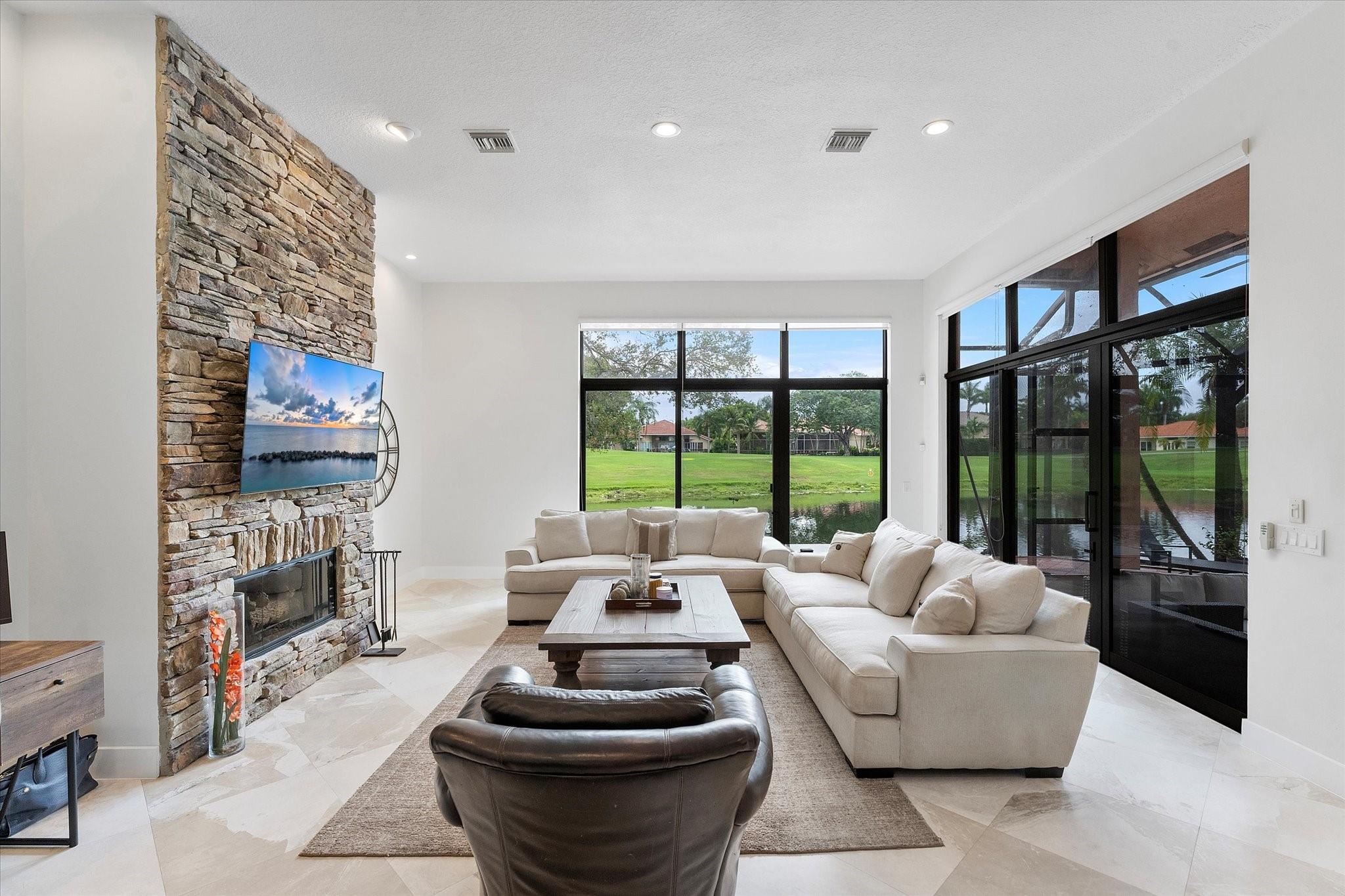 Stunning 4BR/4.5BA modern home in prestigious Eagle Trace with water and golf views. Features include high ceilings, impact windows and doors and LED lighting. The chef’s kitchen boasts JennAir appliances, a quartz island, and custom cabinetry. A large dining area is perfect for entertaining, & both the living and family rooms overlook the pool. The luxurious primary suite offers 2 custom walk-in closets and a spa-style bath with a floating vanity, soaking tub, and glass-enclosed shower. Enjoy a resurfaced saltwater pool, outdoor kitchen, high-end pool enclosure, new wireless sprinkler system, and updated landscaping. A newer A/C. Gated community with golf, tennis, and more. See feature sheet.