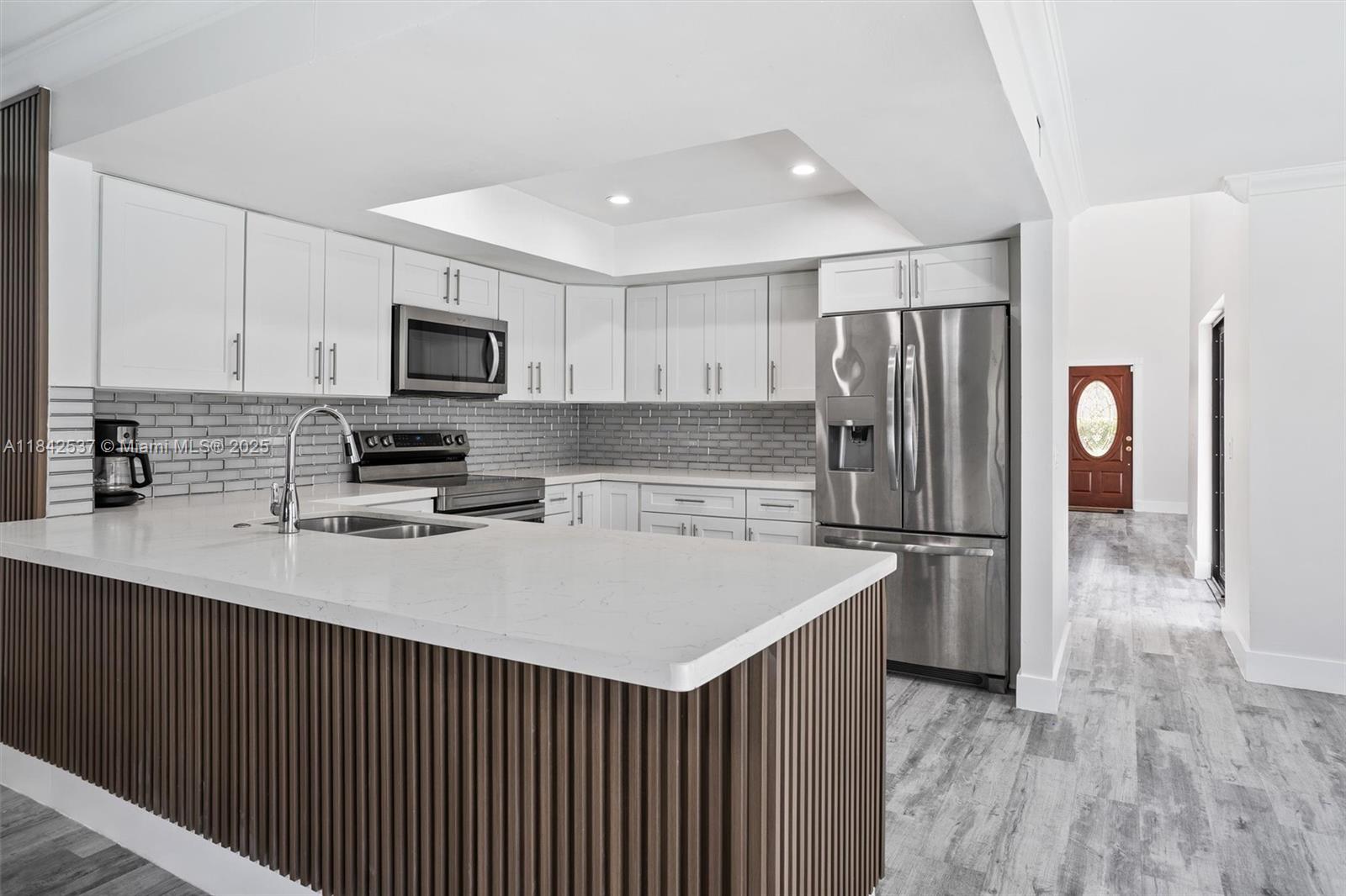Welcome to The Moors – Fully renovated 2-story dream home in gated community! Located near the Palmetto Expressway, this 4BD/3BA home features a spacious loft, new roof (10-year warranty), impact windows, waterproof laminate flooring, renovated bathrooms, The updated kitchen has quartz counters, wood cabinets, stainless steel appliances, and a pass-through to the living area. One bedroom and full bath are on the first floor; remaining bedrooms and loft upstairs. Oversized master with walk-in closet and luxurious bath with tub and shower. Enjoy 24/7 security, low HOA, and resort-style amenities: clubhouse, gym, guesthouse, and lake great for fishing. Covered patio and pool-sized yard. Firm price – non-negotiable.