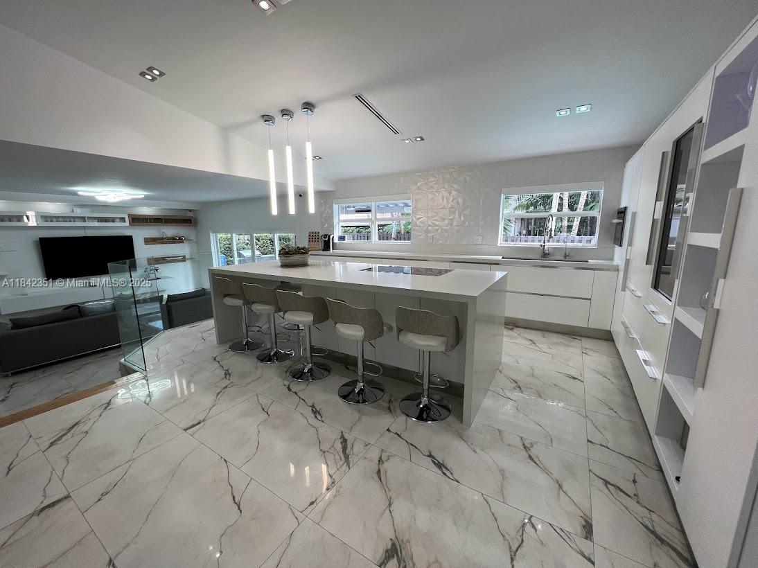 Modern open floor concept, completely remodeled. Glass and Brazilian wood staircase give this 5 bedrooms, 3 bath home an instant wow factor. Italian porcelain floors throughout, Italian marble floors in all bathrooms. LED lights in all kitchen cabinets. Master bedroom and bath created for comfort and relaxation on it's separate wing. Video surveillance cameras controlled directly from your phone. Patio with marble floors. 6 FT deep pool with safety gate in the must desired communit of Doral.