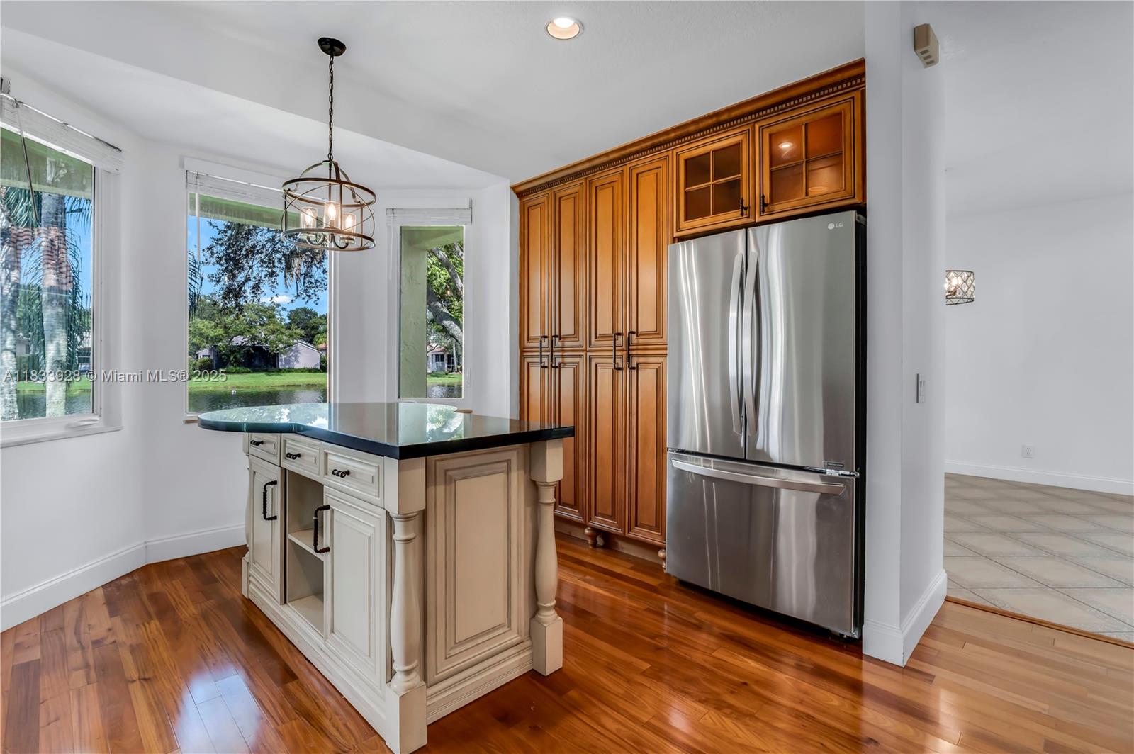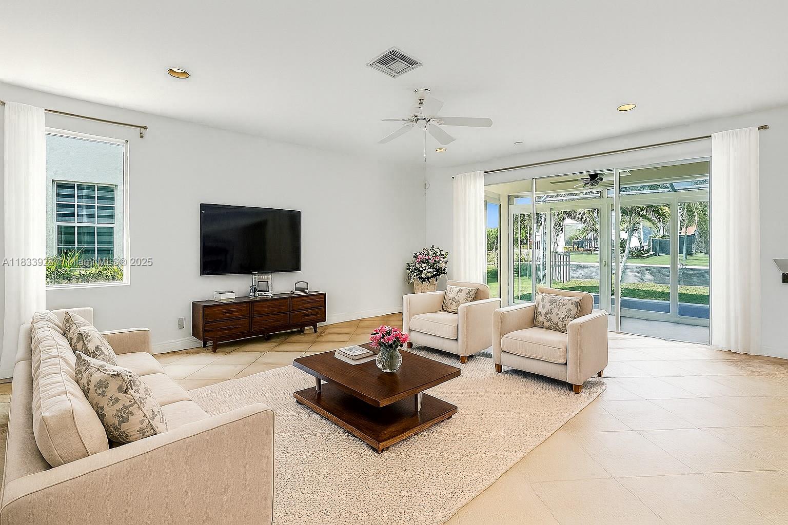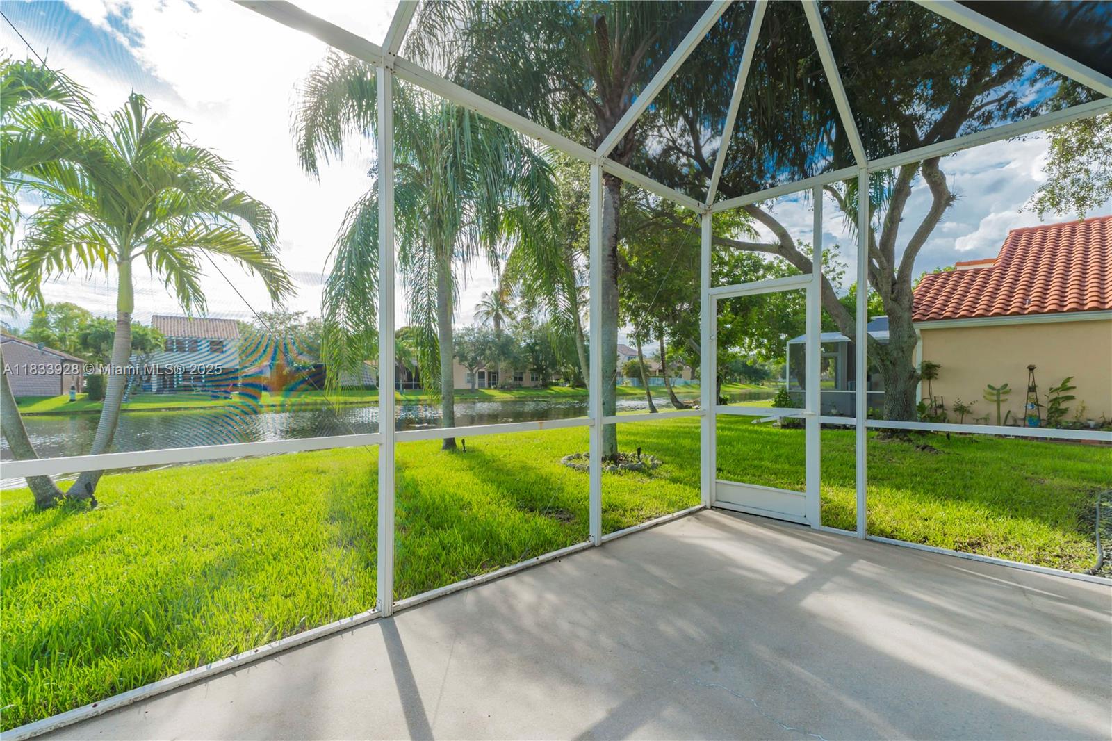 NEW IMPACT WINDOWS & DOORS, NEWER ROOF(2018)! Beautifully updated 5-bedroom +loft, 3.5 Bathroom, 2 Car Garage lakefront home featuring all freshly painted interior, & a spacious backyard w/ mature trees w/ more than enough room for a pool (over $100,000.00 in upgrades!). The kitchen boasts granite counter tops as well as dual-tone wood cabinets, custom hood, & stainless appliances. A/C (2022), water heater (2021), solar patio screens, remodeled bathrooms & an enclosed Impact Glass Sunroom that offers serene lake views & seamless indoor-outdoor living. The primary bath has travertine, wood cabinetry, dual sinks, & a rainfall shower. A wonderful opportunity to live in the highly desired community of The Lakes offering a clubhouse + pool, close to A+ schools. BEST VALUE IN THE LAKES!