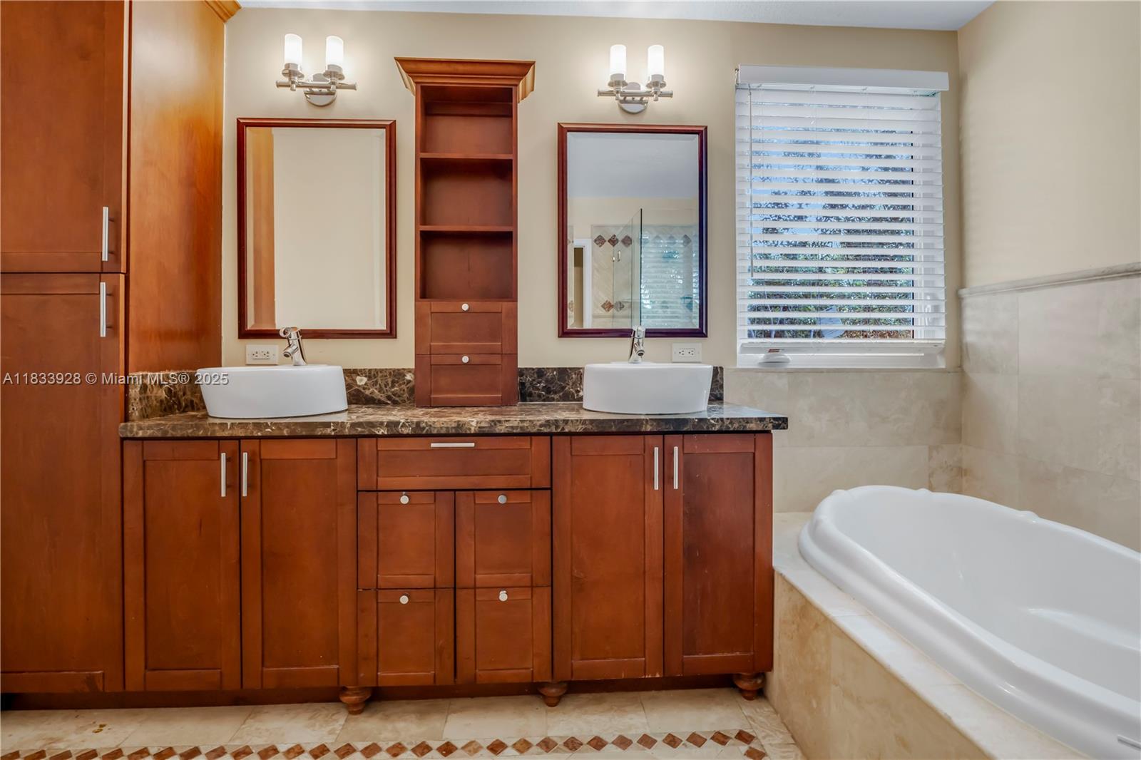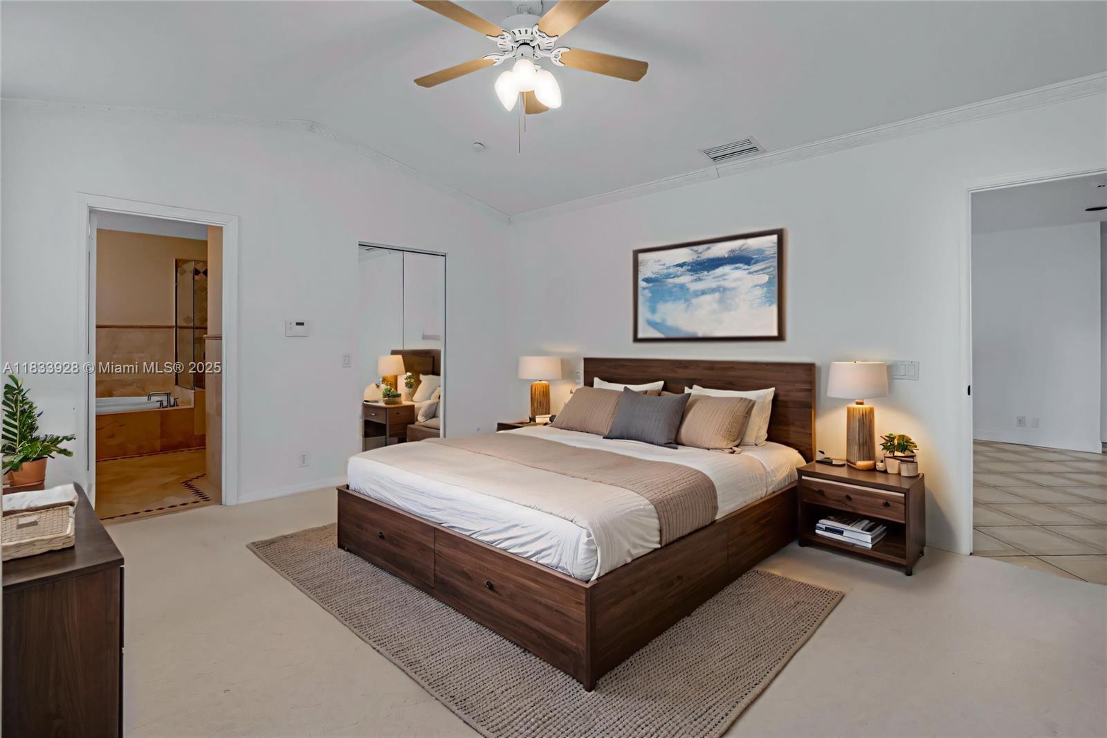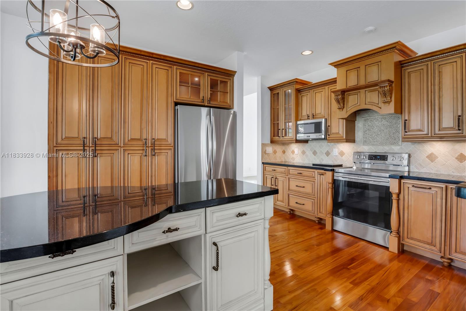 NEW IMPACT WINDOWS & DOORS, NEWER ROOF(2018)! Beautifully updated 5-bedroom +loft, 3.5 Bathroom, 2 Car Garage lakefront home featuring all freshly painted interior, & a spacious backyard w/ mature trees w/ more than enough room for a pool (over $100,000.00 in upgrades!). The kitchen boasts granite counter tops as well as dual-tone wood cabinets, custom hood, & stainless appliances. A/C (2022), water heater (2021), solar patio screens, remodeled bathrooms & an enclosed Impact Glass Sunroom that offers serene lake views & seamless indoor-outdoor living. The primary bath has travertine, wood cabinetry, dual sinks, & a rainfall shower. A wonderful opportunity to live in the highly desired community of The Lakes offering a clubhouse + pool, close to A+ schools. BEST VALUE IN THE LAKES!