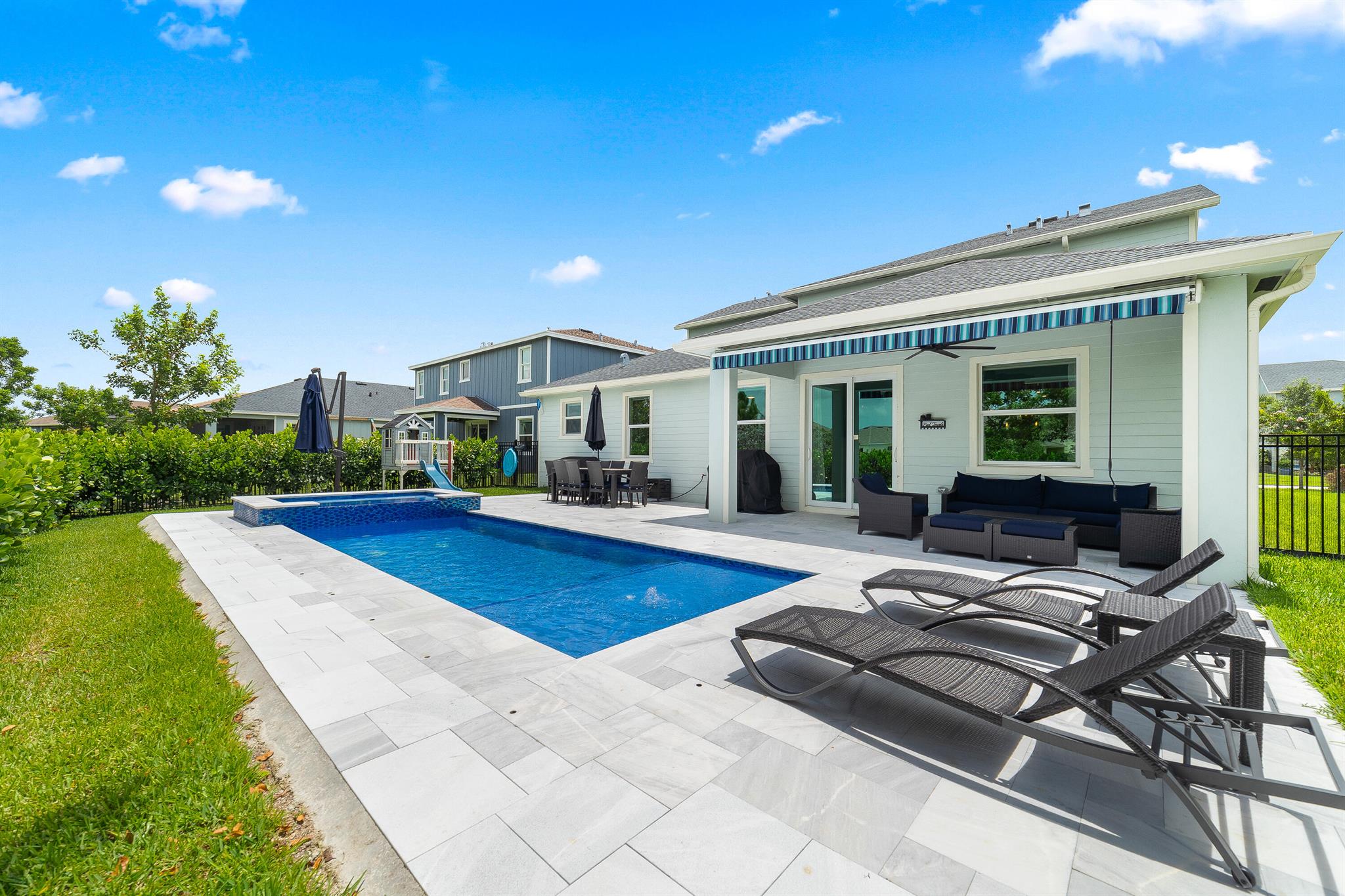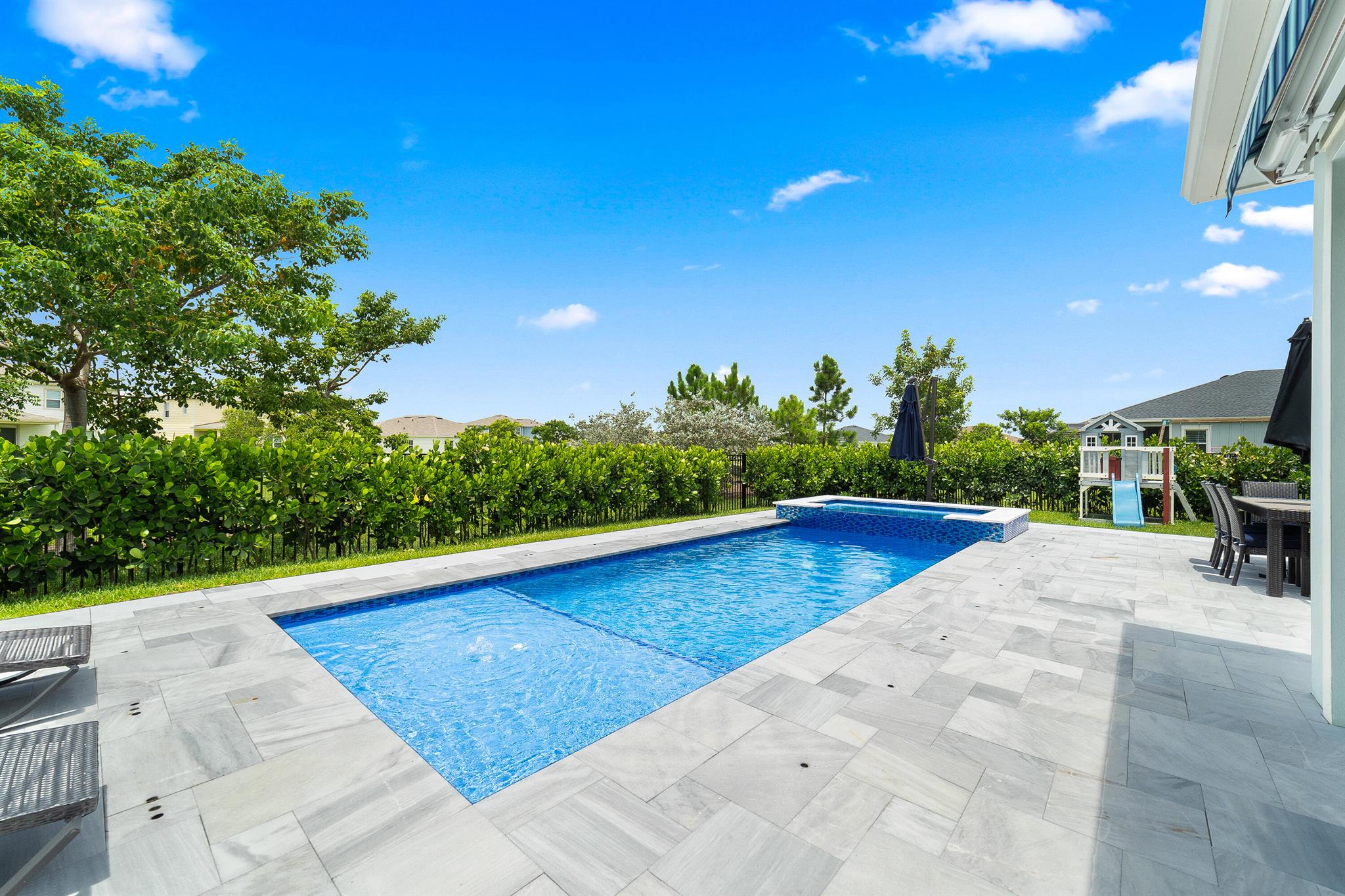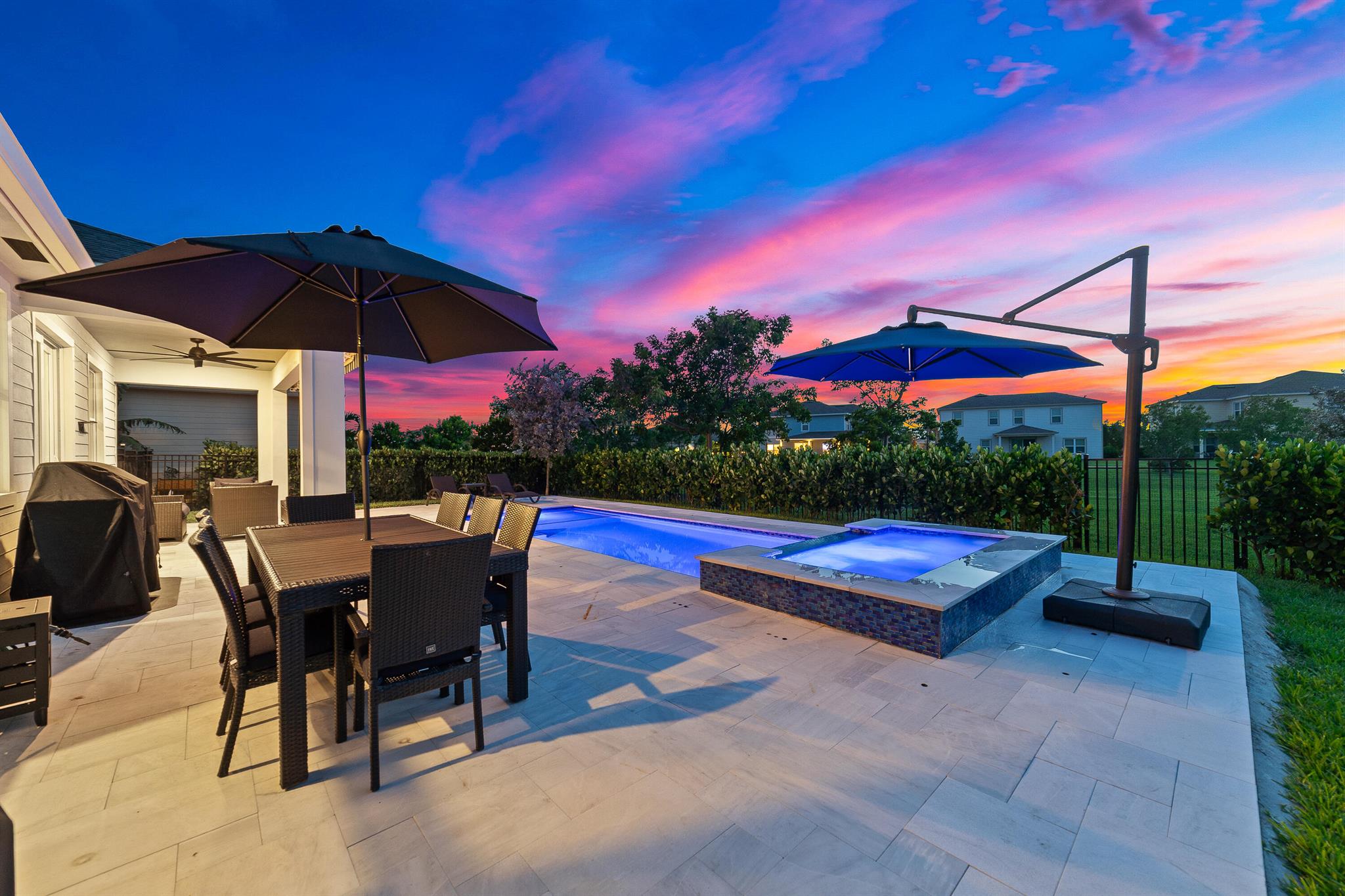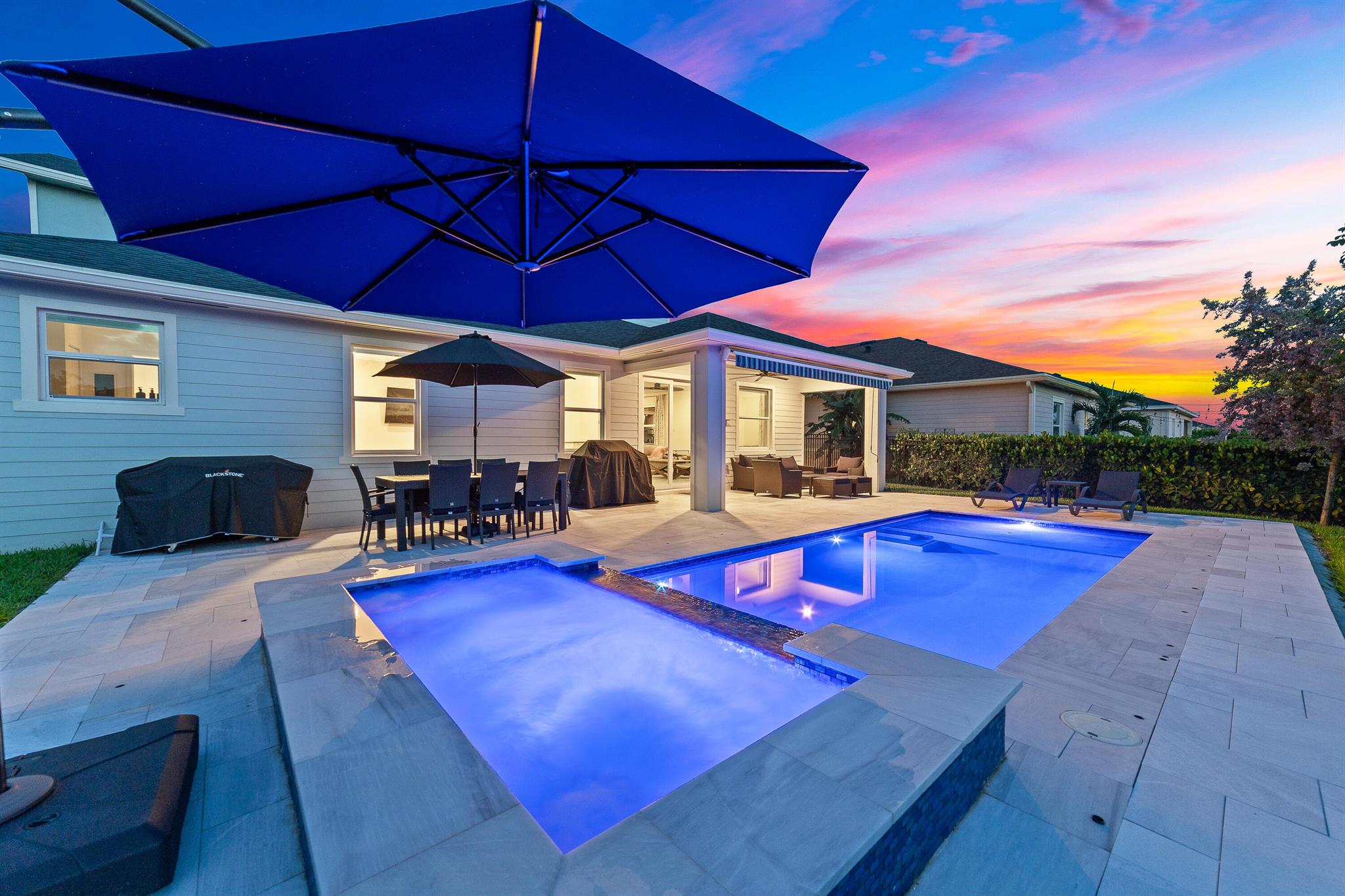 Modern. Grand. Gorgeous. Prepare to be impressed by soaring ceilings, abundant natural light, and custom built-ins strategically installed for maximum use of a mudroom and laundry space. The hidden gem. A second kitchen-style pantry designed to tuck away life's little joys--coffee, wine, and snacks--keeping your main living space sleek and clutter-free. Just outside you'll enjoy the stunning pool deck with salt water pool featuring a gas heater and hot tub, surrounded by a fully fenced yard with lush Clusia hedges for added privacy. With the touch of a button, extend your outdoor living space and block the sun using a motorized shade--comfort and style, redefined. The primary suite is conveniently located on the first floor, while upstairs is thoughtfully designed for family and guests
