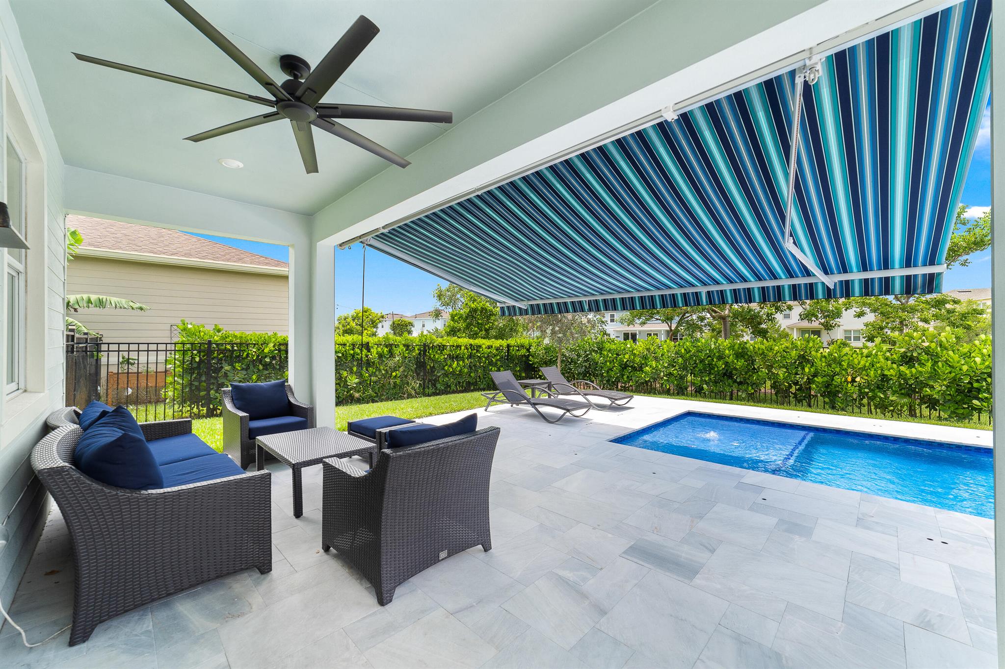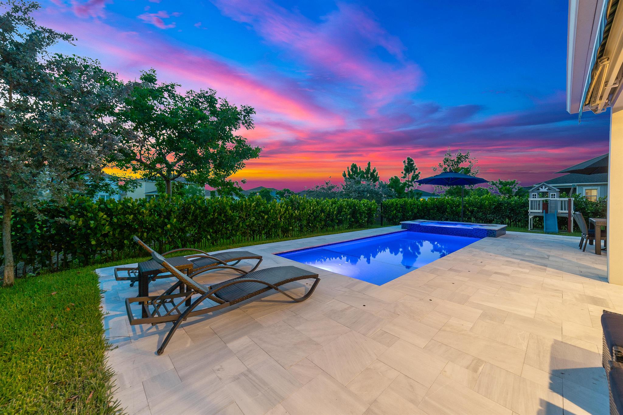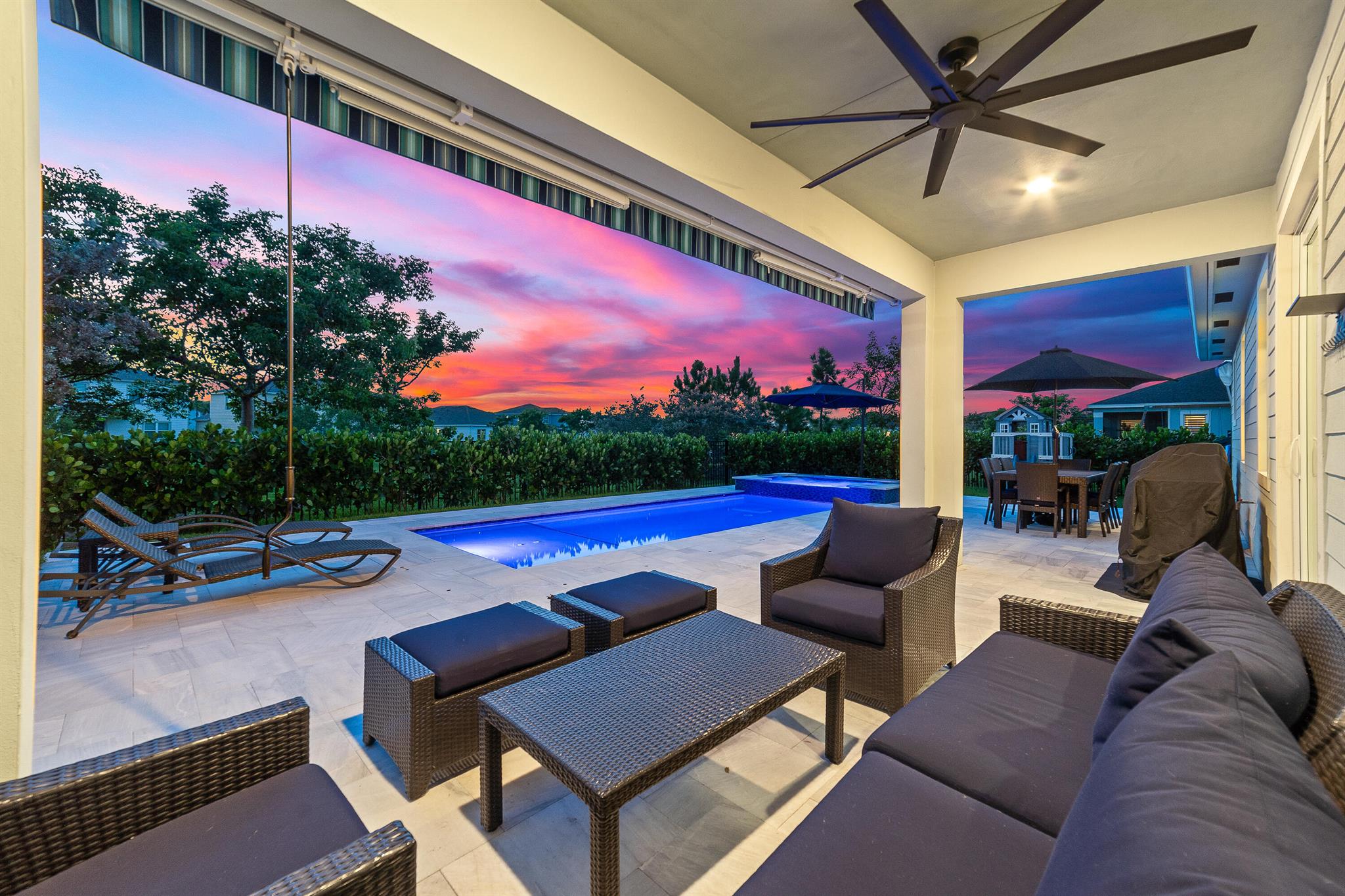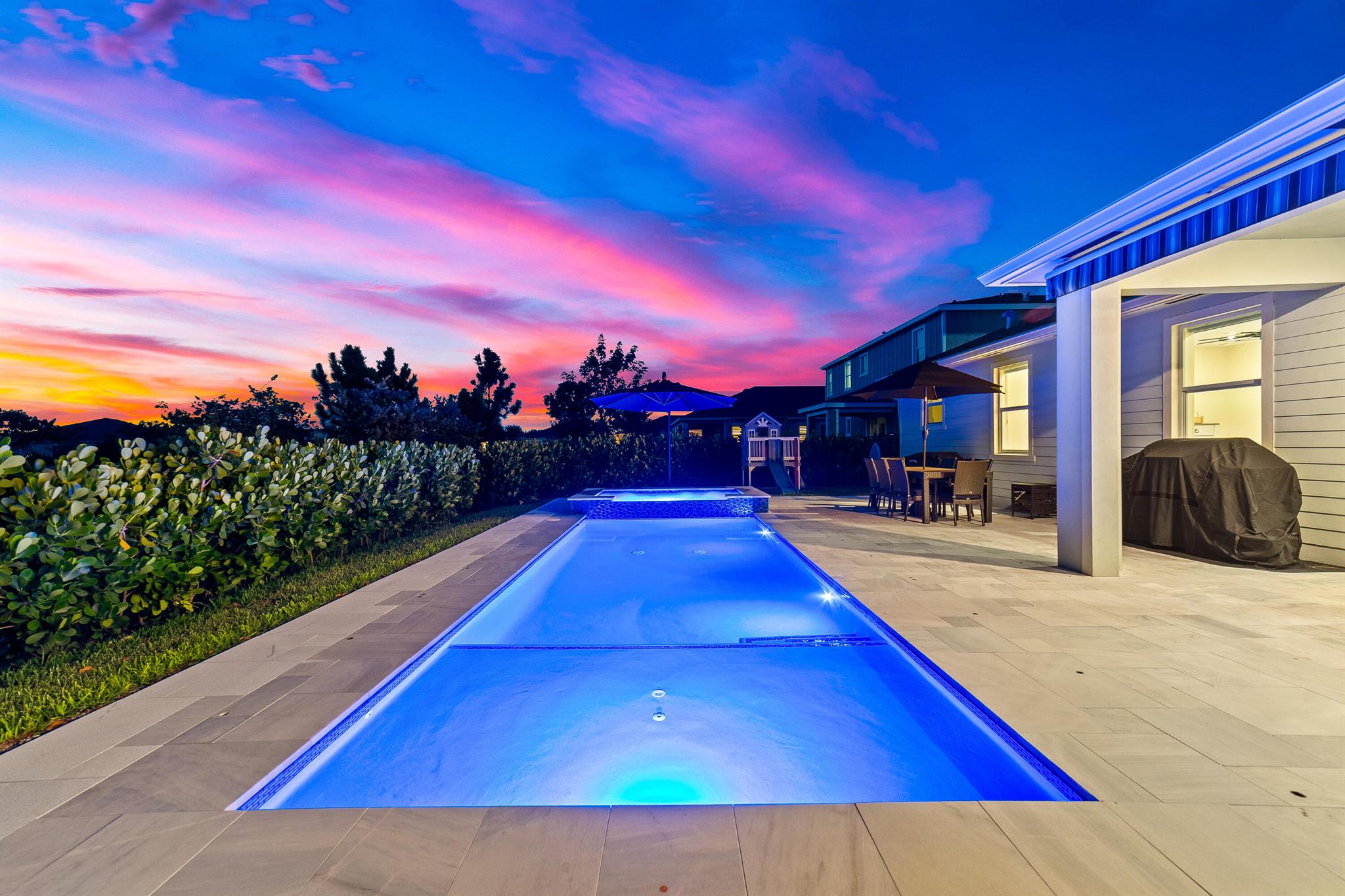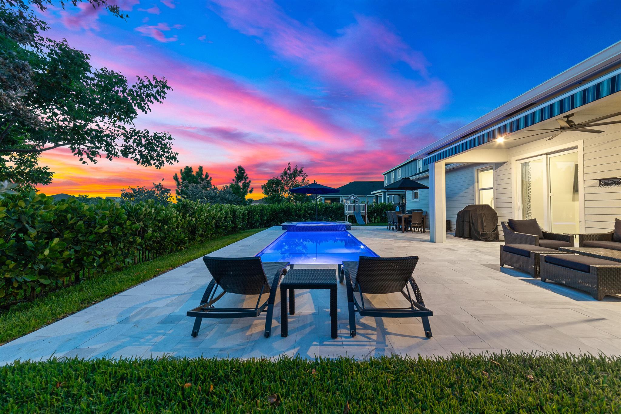 Modern. Grand. Gorgeous. Prepare to be impressed by soaring ceilings, abundant natural light, and custom built-ins strategically installed for maximum use of a mudroom and laundry space. The hidden gem. A second kitchen-style pantry designed to tuck away life's little joys--coffee, wine, and snacks--keeping your main living space sleek and clutter-free. Just outside you'll enjoy the stunning pool deck with salt water pool featuring a gas heater and hot tub, surrounded by a fully fenced yard with lush Clusia hedges for added privacy. With the touch of a button, extend your outdoor living space and block the sun using a motorized shade--comfort and style, redefined. The primary suite is conveniently located on the first floor, while upstairs is thoughtfully designed for family and guests