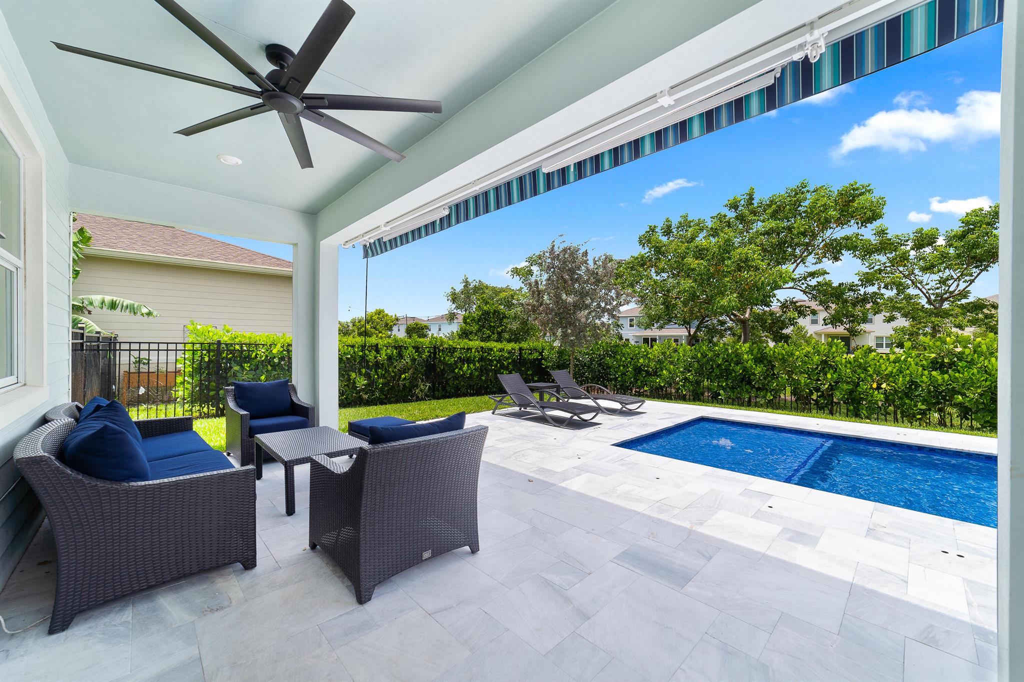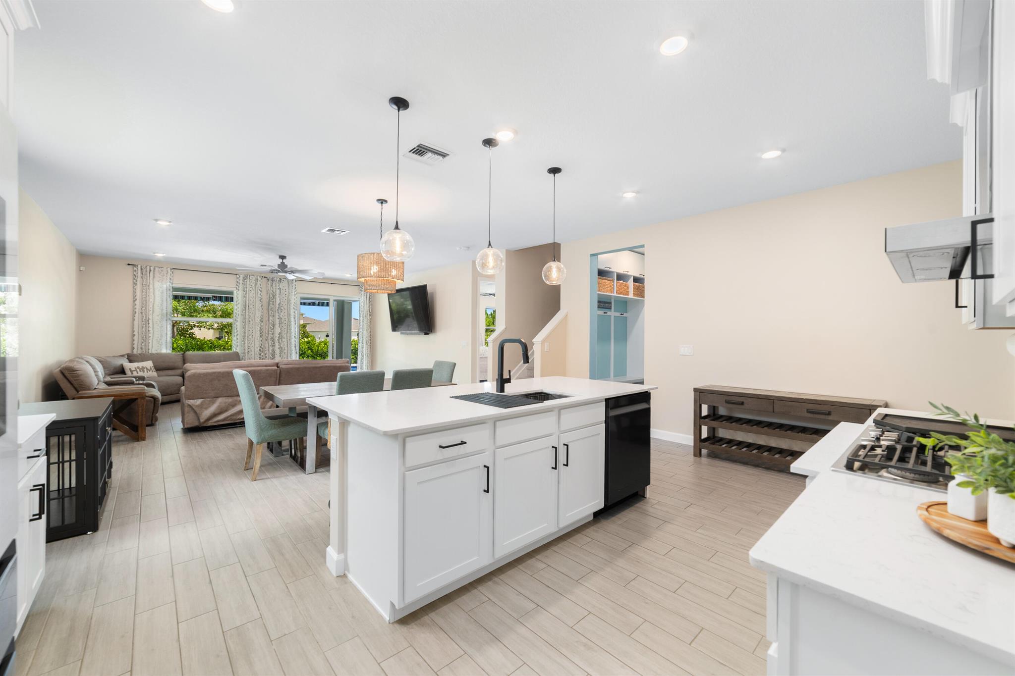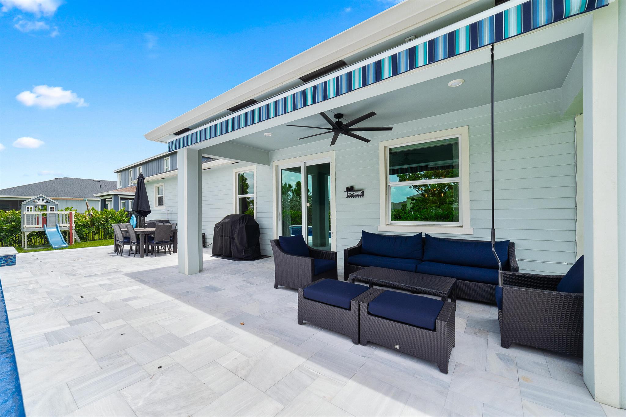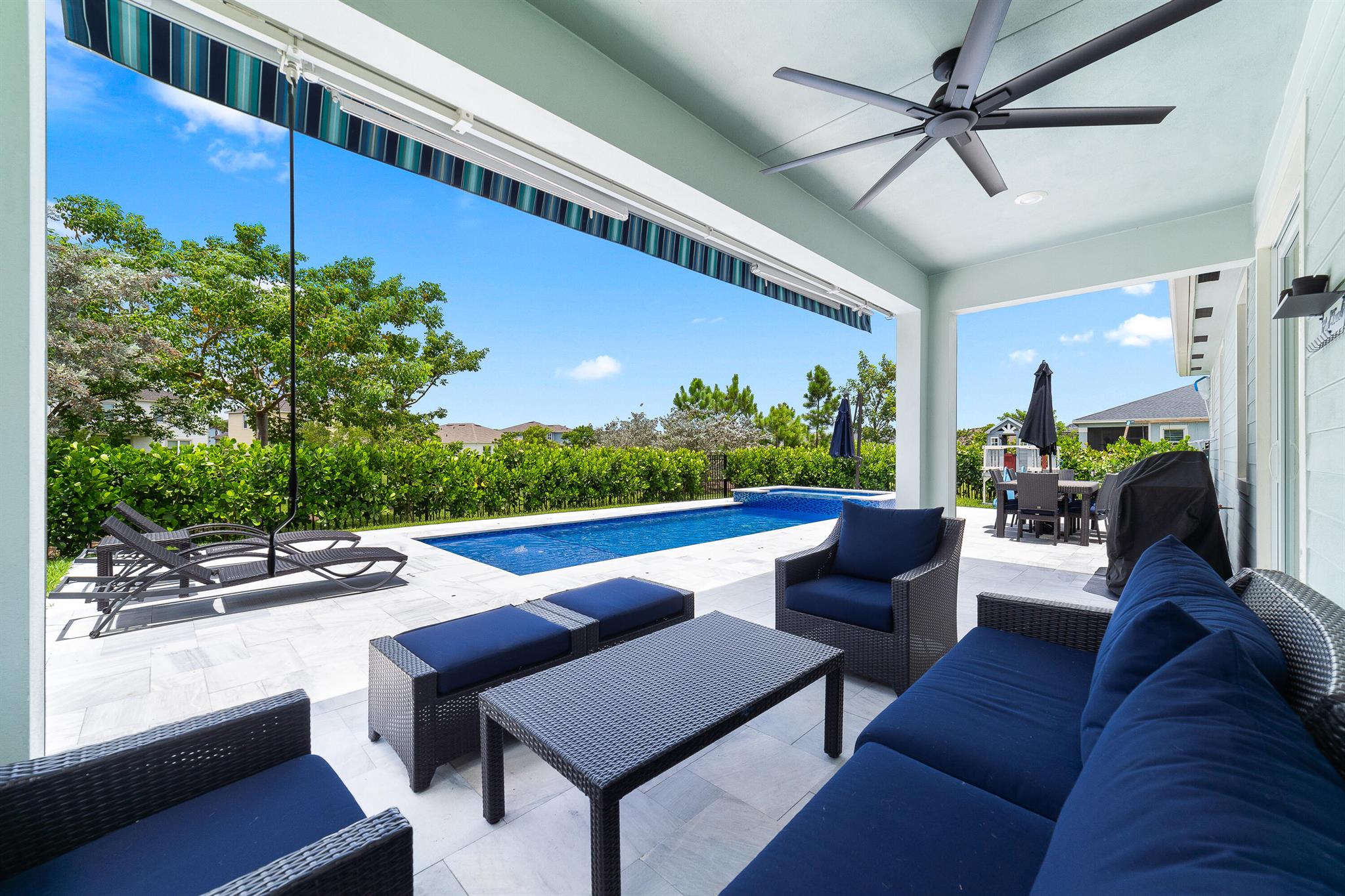 Modern. Grand. Gorgeous. Prepare to be impressed by soaring ceilings, abundant natural light, and custom built-ins strategically installed for maximum use of a mudroom and laundry space. The hidden gem. A second kitchen-style pantry designed to tuck away life's little joys--coffee, wine, and snacks--keeping your main living space sleek and clutter-free. Just outside you'll enjoy the stunning pool deck with salt water pool featuring a gas heater and hot tub, surrounded by a fully fenced yard with lush Clusia hedges for added privacy. With the touch of a button, extend your outdoor living space and block the sun using a motorized shade--comfort and style, redefined. The primary suite is conveniently located on the first floor, while upstairs is thoughtfully designed for family and guests
