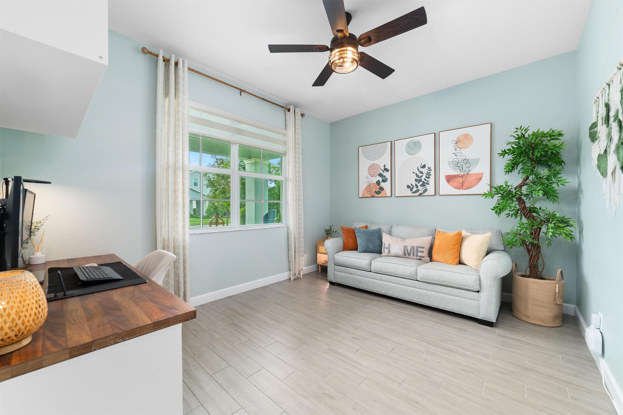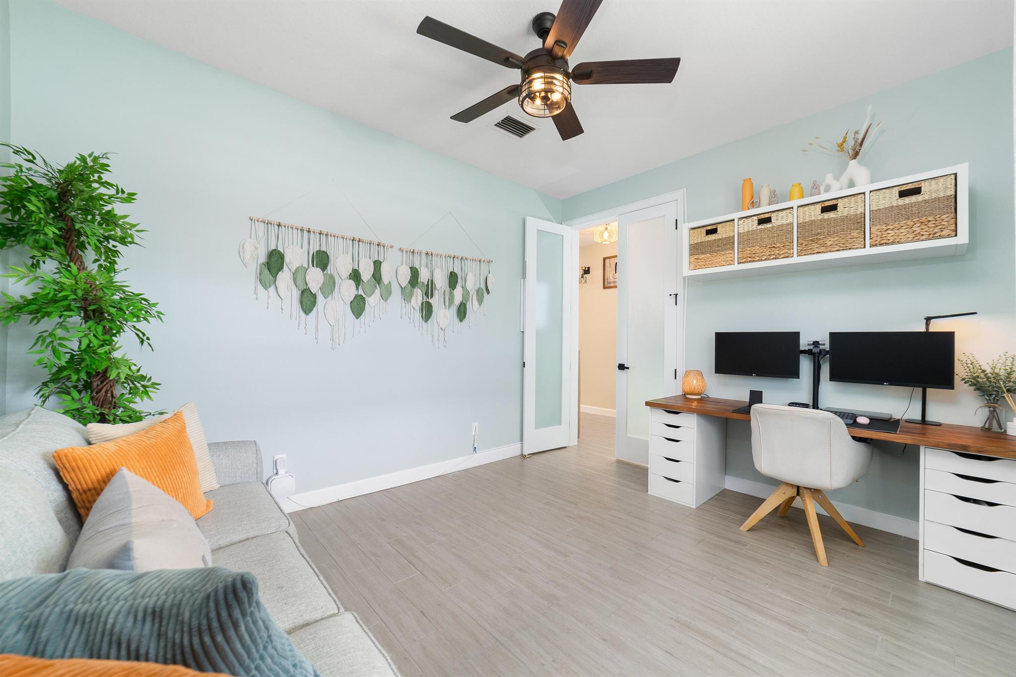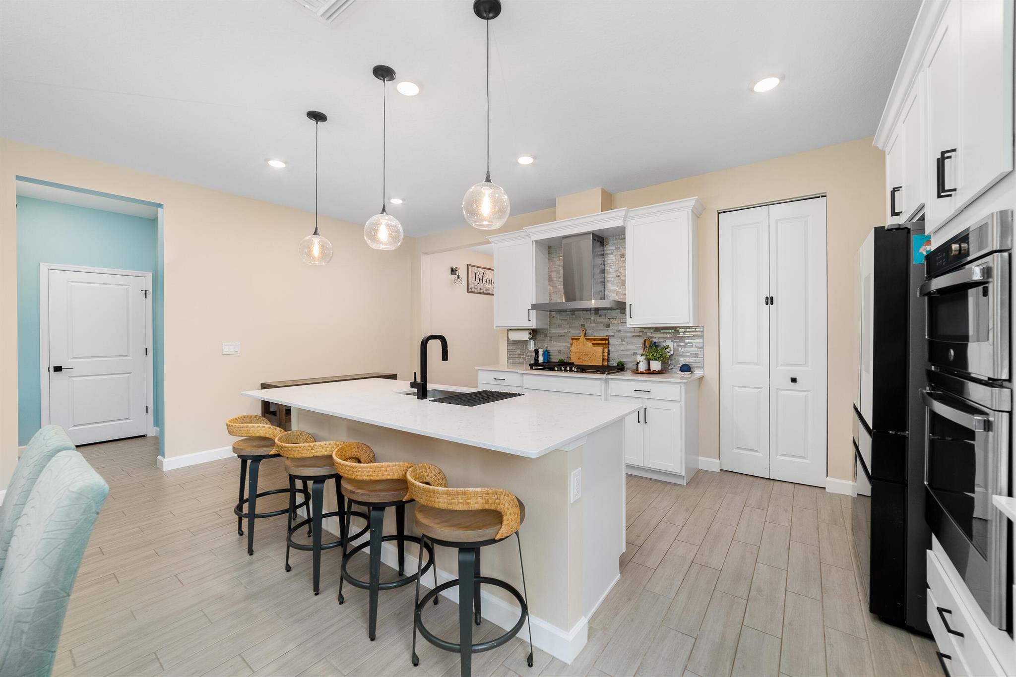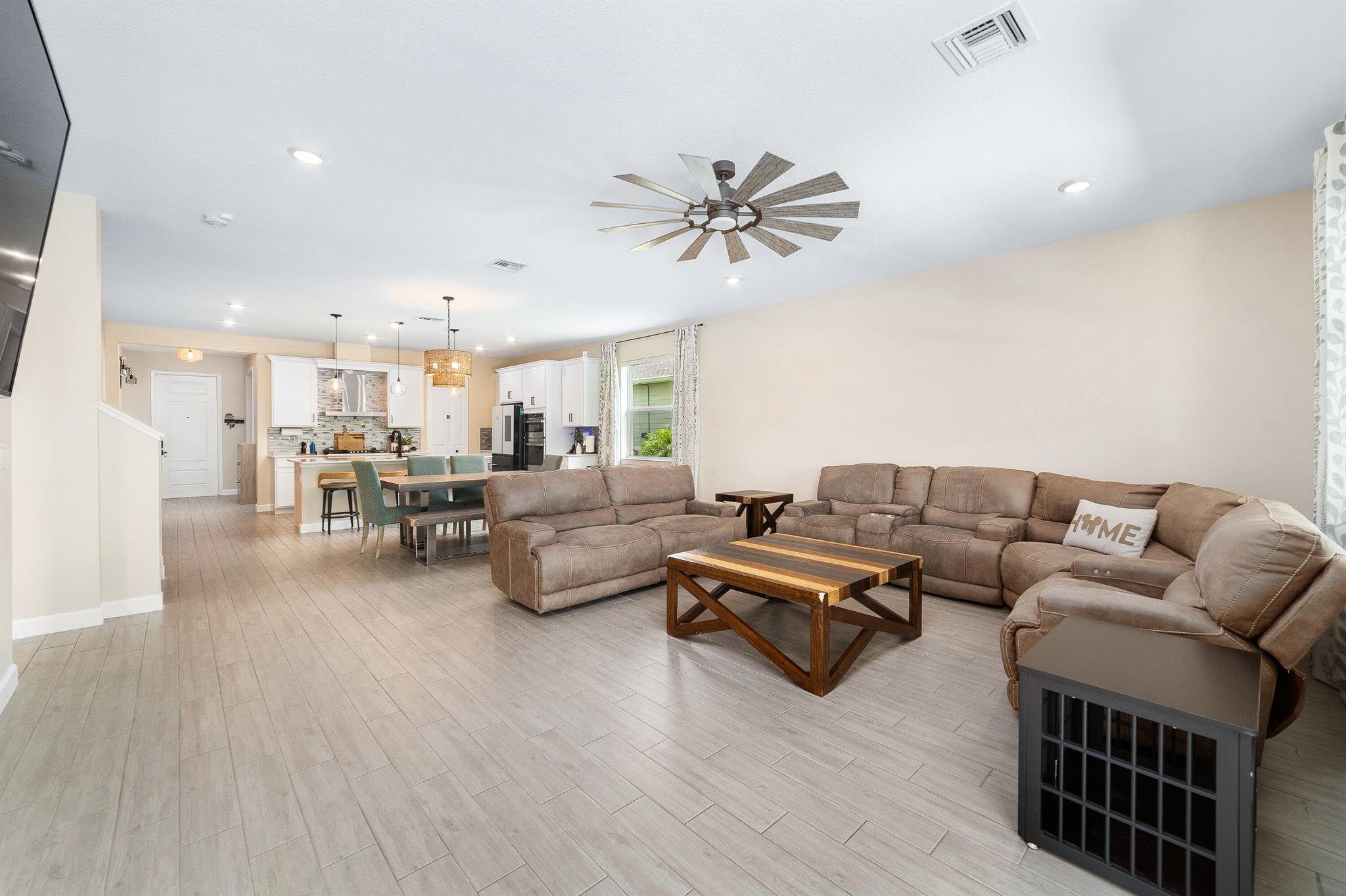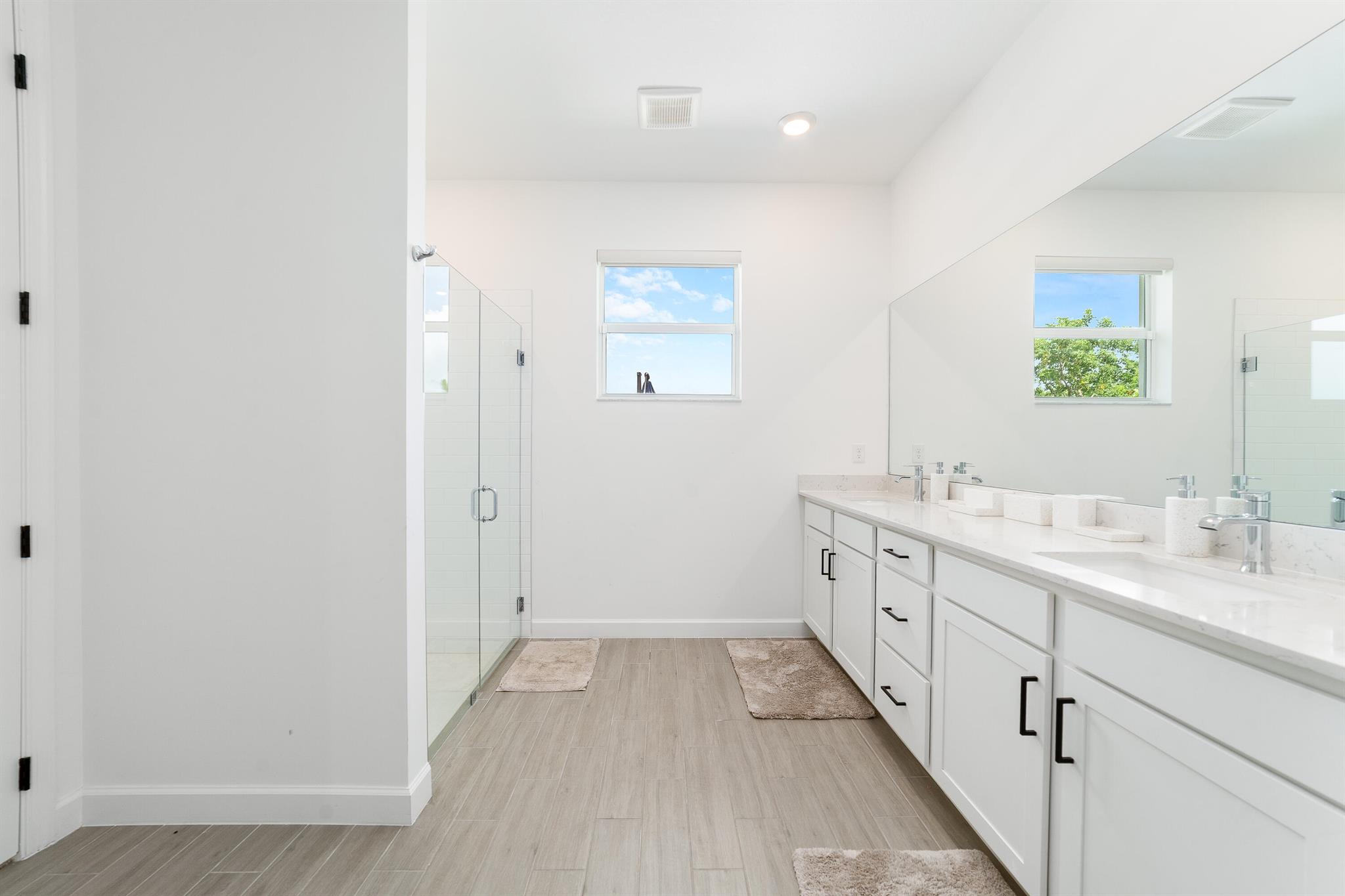 Modern. Grand. Gorgeous. Prepare to be impressed by soaring ceilings, abundant natural light, and custom built-ins strategically installed for maximum use of a mudroom and laundry space. The hidden gem. A second kitchen-style pantry designed to tuck away life's little joys--coffee, wine, and snacks--keeping your main living space sleek and clutter-free. Just outside you'll enjoy the stunning pool deck with salt water pool featuring a gas heater and hot tub, surrounded by a fully fenced yard with lush Clusia hedges for added privacy. With the touch of a button, extend your outdoor living space and block the sun using a motorized shade--comfort and style, redefined. The primary suite is conveniently located on the first floor, while upstairs is thoughtfully designed for family and guests