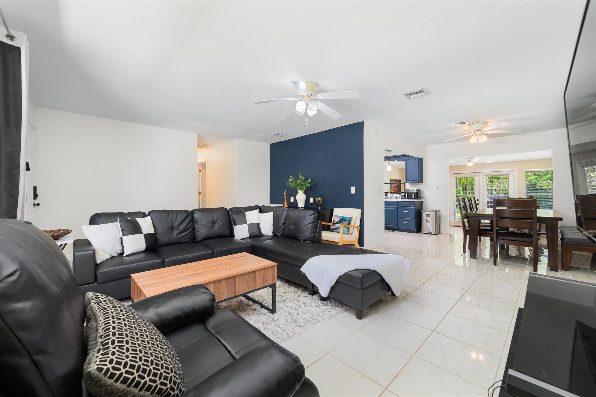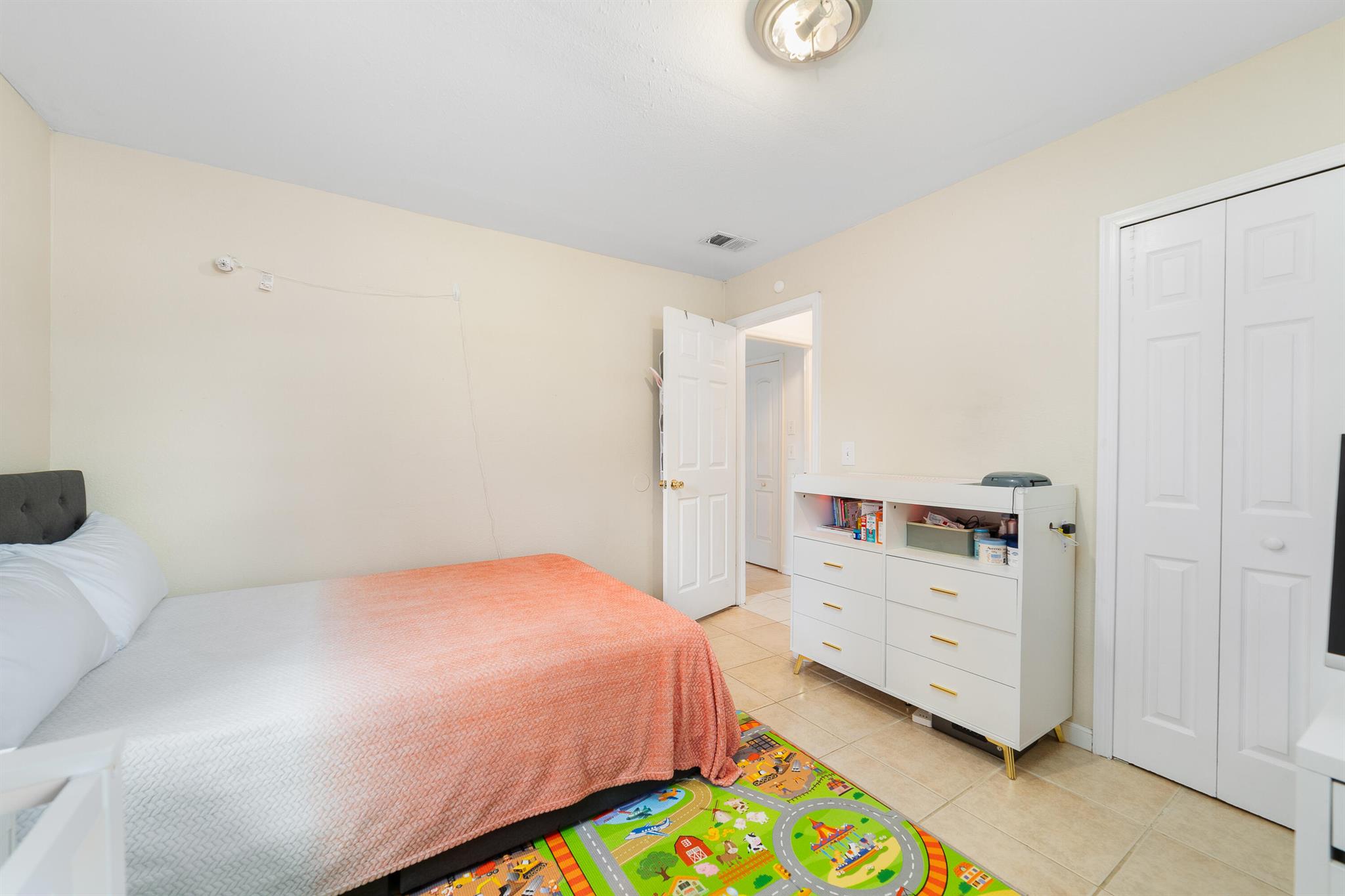 Welcome home to this immaculate 2 bedroom 2 bath opportunity located in the heart of Port St. Lucie with NO HOA! As soon as you enter, you notice the abundant natural light and view to the huge backyard. The home features a stacked bedroom floor plan and tile flooring throughout for added convenience. The kitchen boasts modern blue cabinetry with stainless steel appliances opening out to the dining area, perfect for entertaining. The primary bedroom provides tons of space, ample closet storage, comfortable en suite bath and french doors leading out to the backyard. The home also provides a large finished sunroom that offers a bonus space for office, playroom or den. Out back, the possibilities are endless. The huge backyard has plenty of room for play, entertainment or future pool.