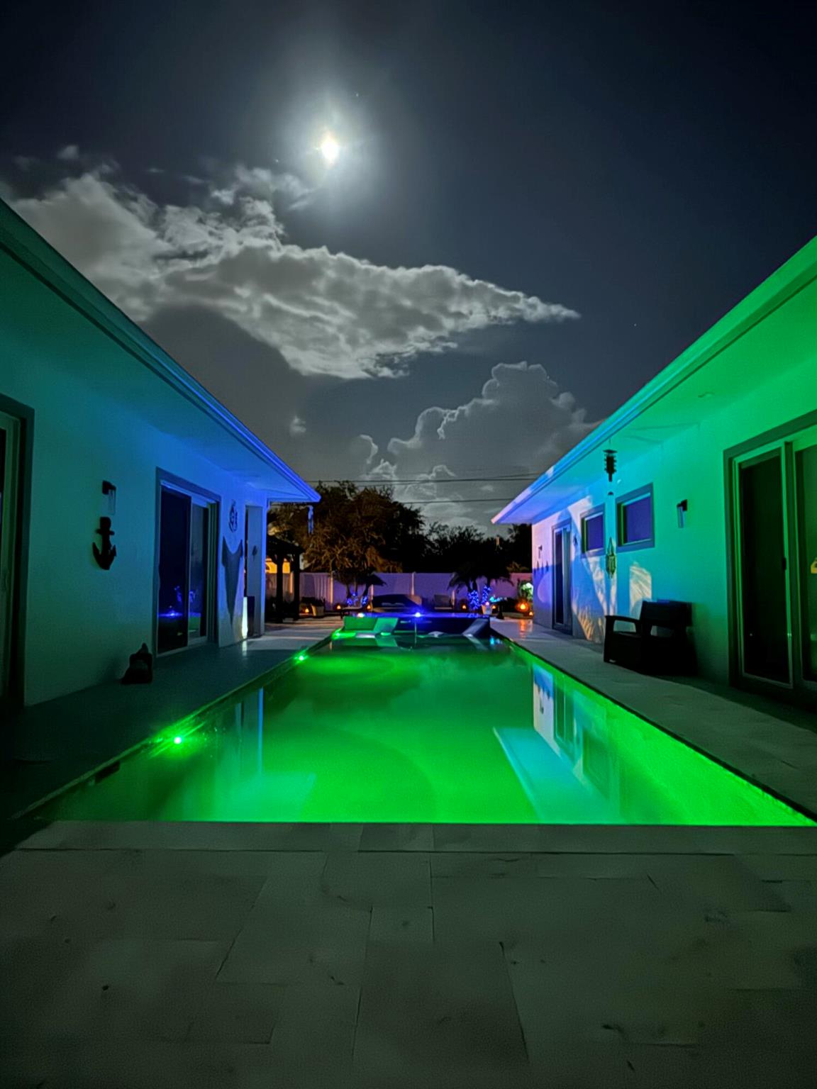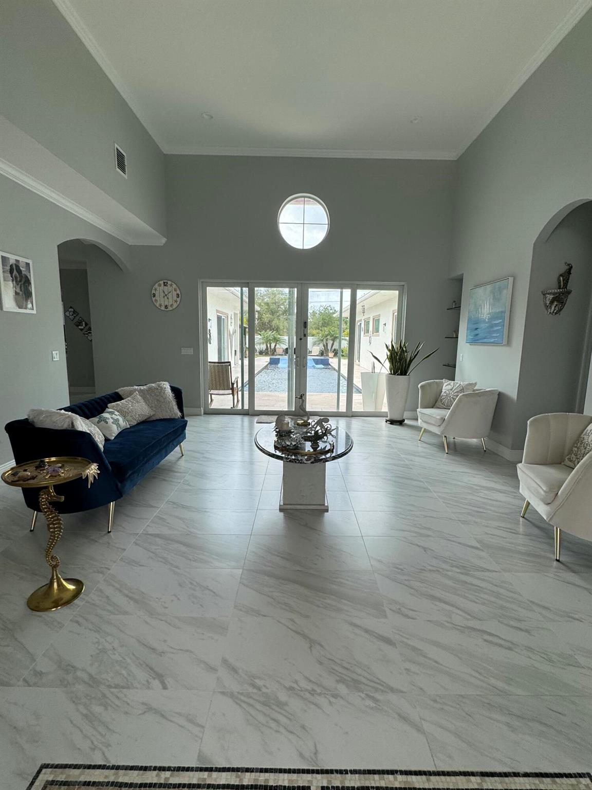 Mint condition! 3,444 sq ft custom built 2019 Builder's home with a unique floorplan, Porcelain tile floors and 14' volume Ceilings. The Kitchen features white cabinetry, Quartz countertops, Stainless Steel Appliances, oversized Island with Cooktop. Large 14k sq ft lot, Impact Windows throughout, white Vinyl Fence, 3 Car Garage, Circular Paved Driveway and a Metal Roof. Bring your cars, toys and golf cart, there is plenty of room! Elegant Travertine tile surrounds the Pool area. Pool features include a Jacuzzi, Heater and a Sun Shelf to enjoy sitting in the water under the Tiki table. No HOA!
