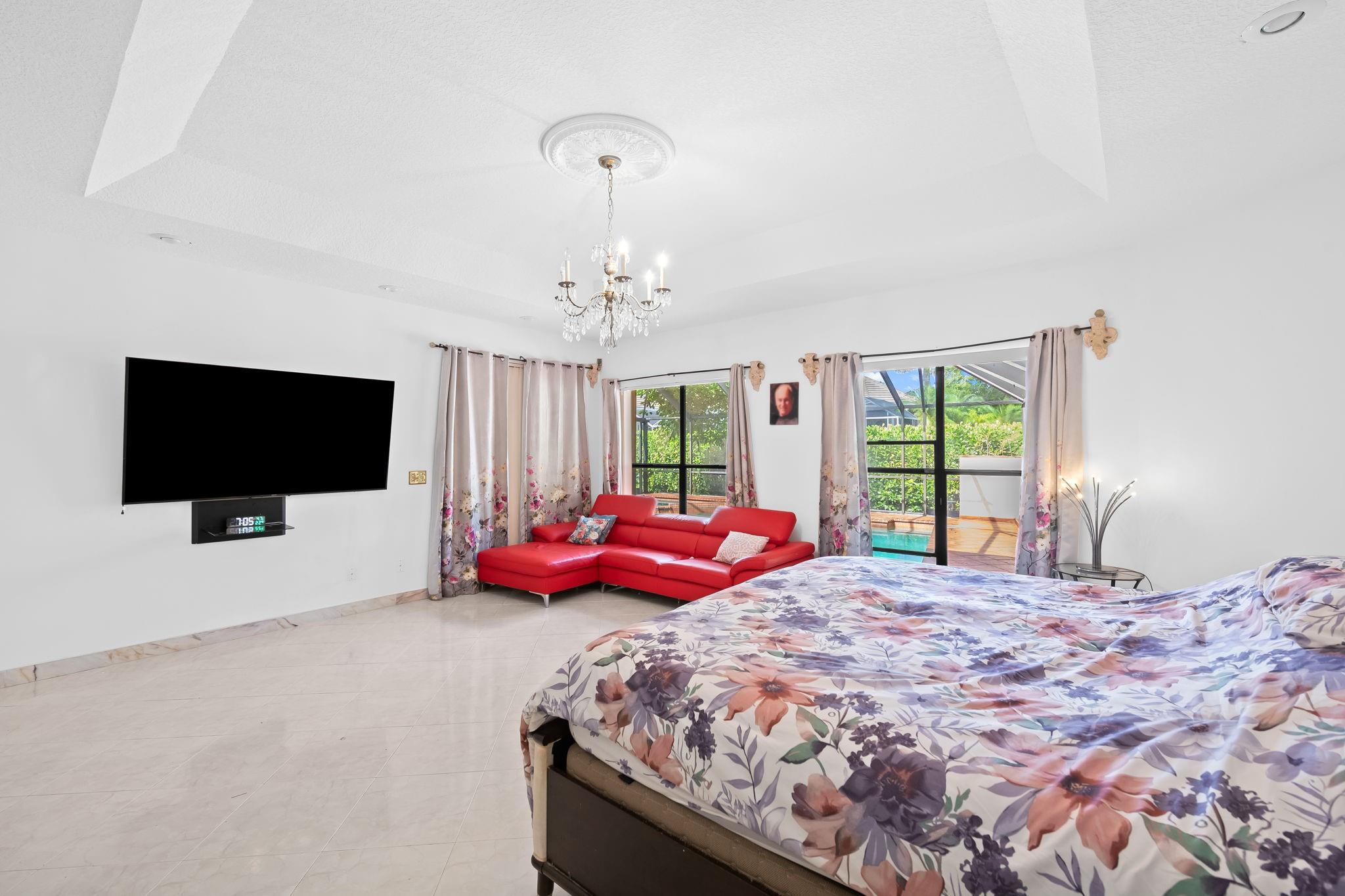 Exceptional 6BR/3-2hb stunning residence nestled on a corner lot in the prestigious, gated community of Eagle Trace. This super energy-efficient home features soaring ceilings, sleek LED lighting, and a thoughtfully designed floorplan ideal for both comfort and style. Chef's Kitchen – Outfitted with premium appliances, a massive granite island, custom cabinetry, it's a dream space for culinary creativity. Enjoy a generous dining area perfect for hosting, with large family room overlooking the screened-in pool. Lavish Primary Suite – Indulge in two custom walk-in closets and a spa-inspired bathroom complete with a floating vanity, soaking tub, and glass-enclosed shower. Enjoy amenities including golf, tennis, and more.