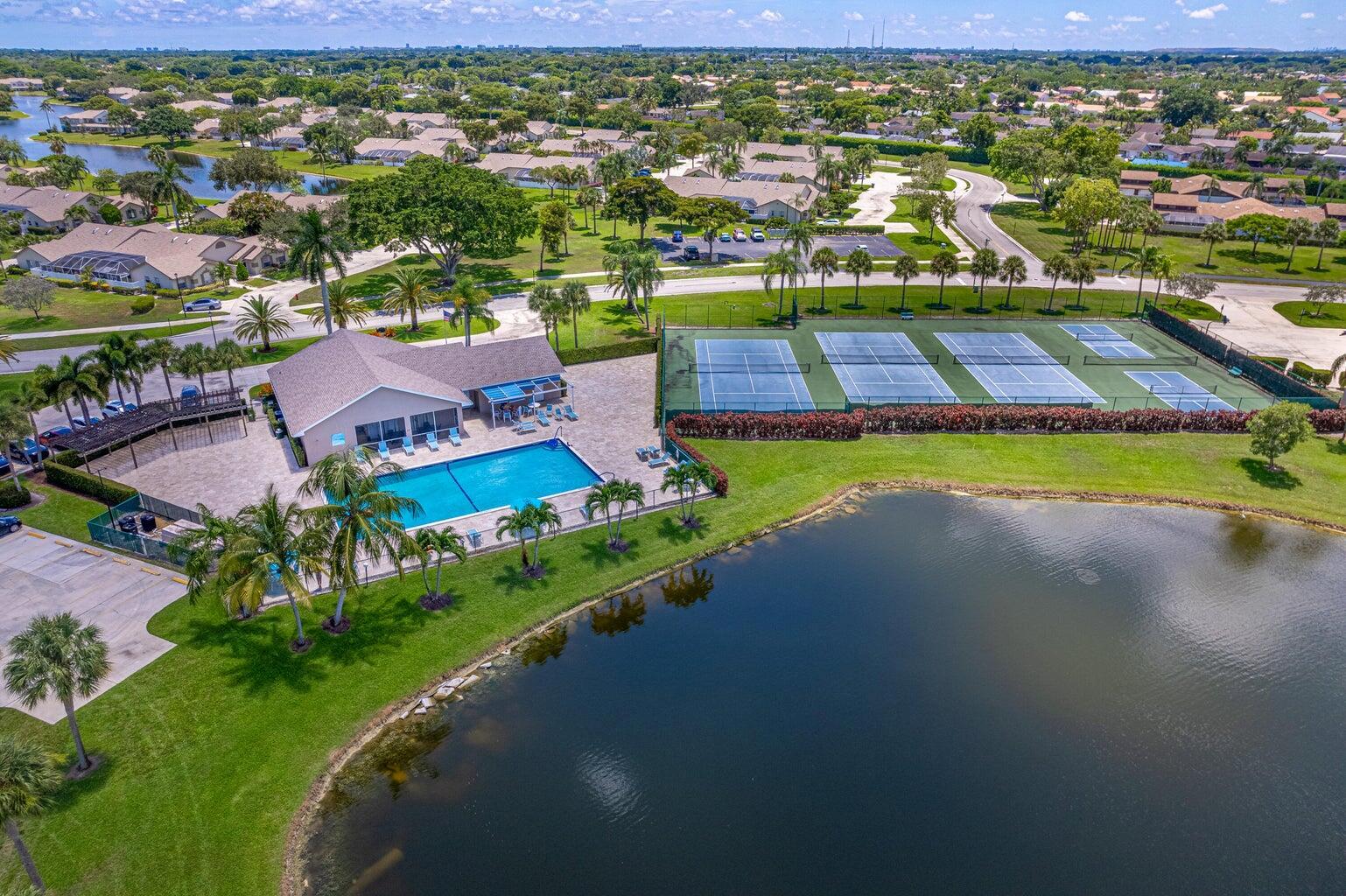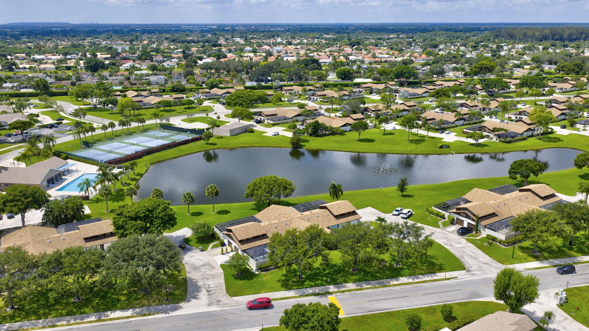 Move-In Ready Townhouse in Boca Gardens with Scenic Lake Views!Welcome to this charming 3-bedroom, 3.5-bathroom townhouse in the highly desirable Boca Gardens community and one of the most desired Azalea models. Featuring 1,325 sq. ft. of interior living space plus an additional 800 sq. ft. of private, screened-in outdoor living area, this home offers a well-laid-out floor plan perfect for both everyday living and entertaining.The open concept showcases beautiful, easy-to-maintain laminate flooring throughout the main living areas downstairs, with a thoughtfully designed kitchen and a comfortable flow throughout.Each bedroom features its own en-suite bathroom for added privacy.
