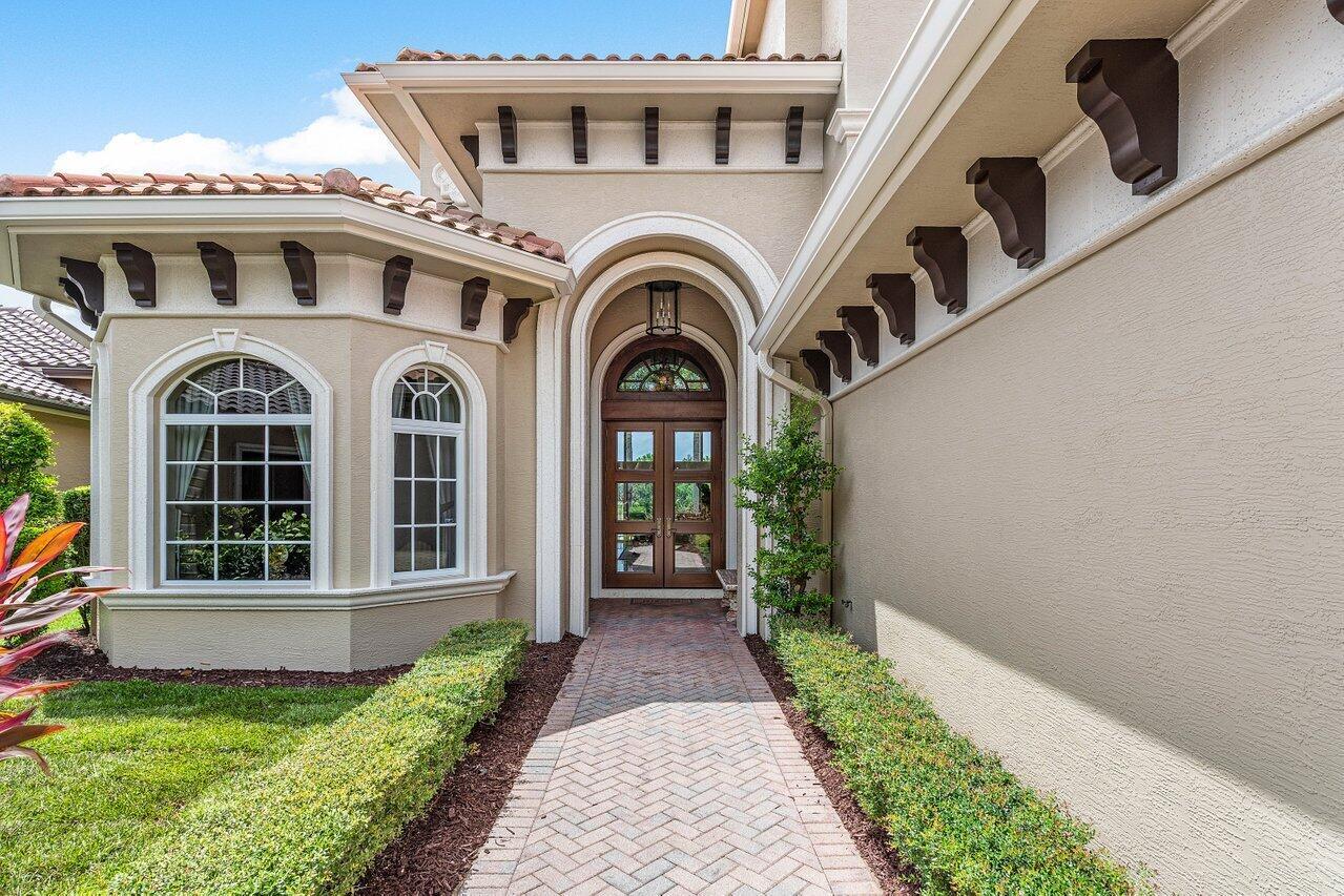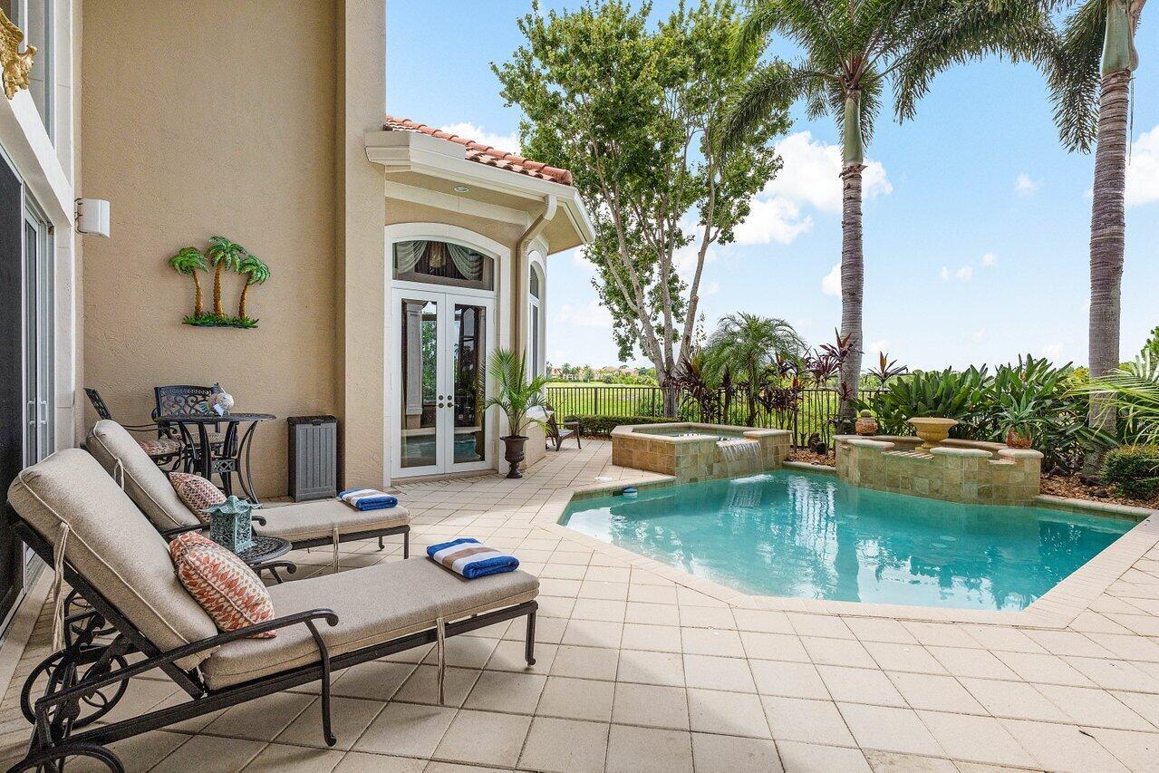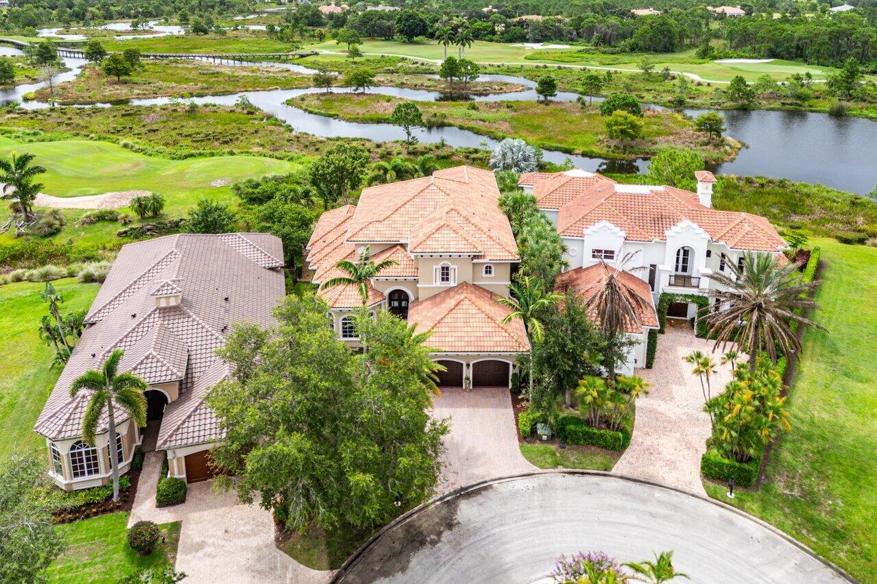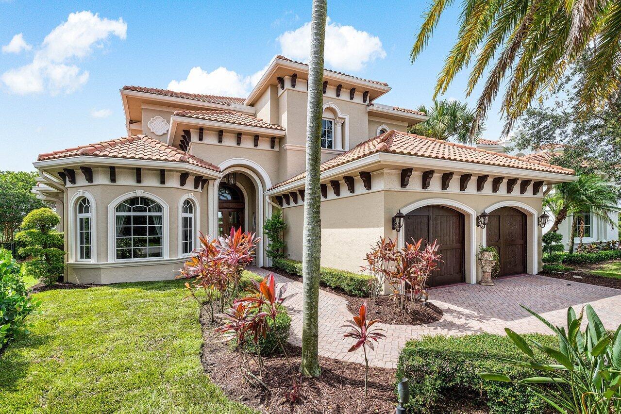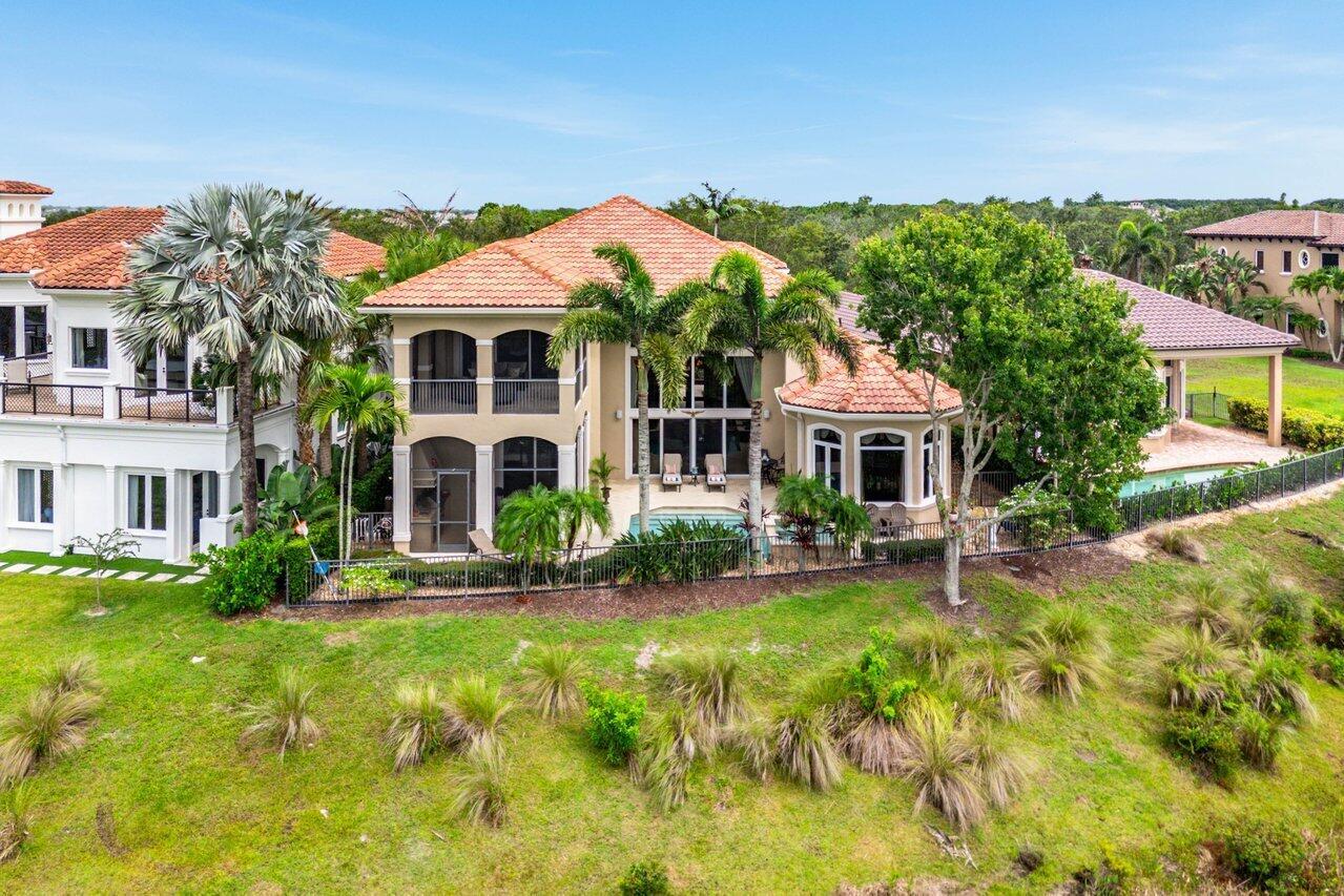 Overlooking the Tesoro River Preserve, this 2-story Custom Creation with 4 bedrooms, 4 en-suite baths, and 2 half-baths features distinctive scenic views of Water, Wildlife, Golf, and a park with moss-draped oak trees. This Spanish Revival home is a breathtaking sight, featuring soaring arched windows and entry foyer, carved wood and stone accents, 24-inch marble floors, natural stone, and abundant molding. Other distinctive details include all luxury brand appliances, a decorative Gas Fireplace, a 2nd-floor media room/Den, upstairs and downstairs laundry, a 3-zone AC system, a Whole-Home Audio System, Instant-on Hot Water, an AC Garage, a 1st-floor wet bar, and a 2nd-level breakfast bar. Enjoy the Beauty of the mature landscaping from the 2 screened-in loggias & a Heated Pool with Spa.