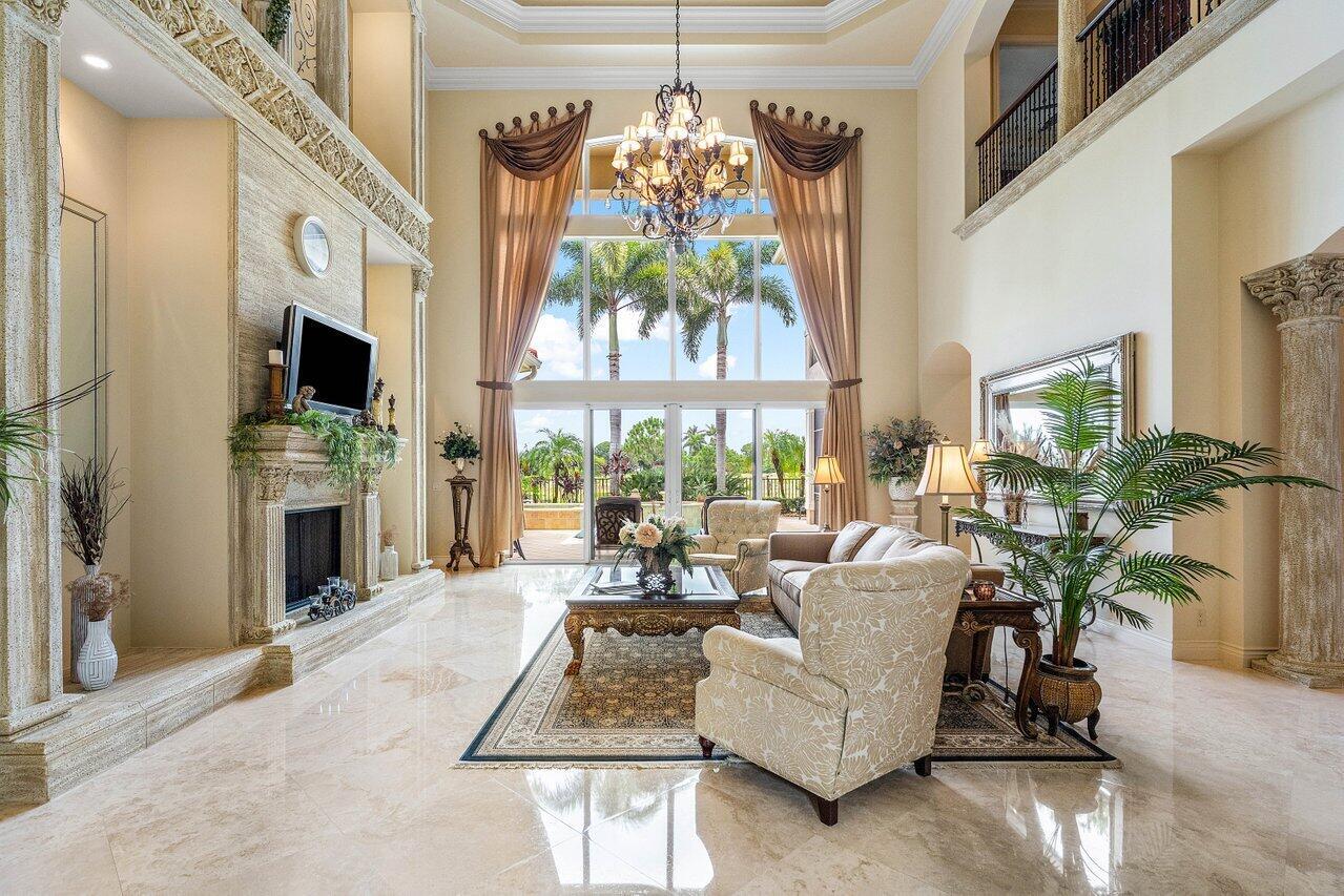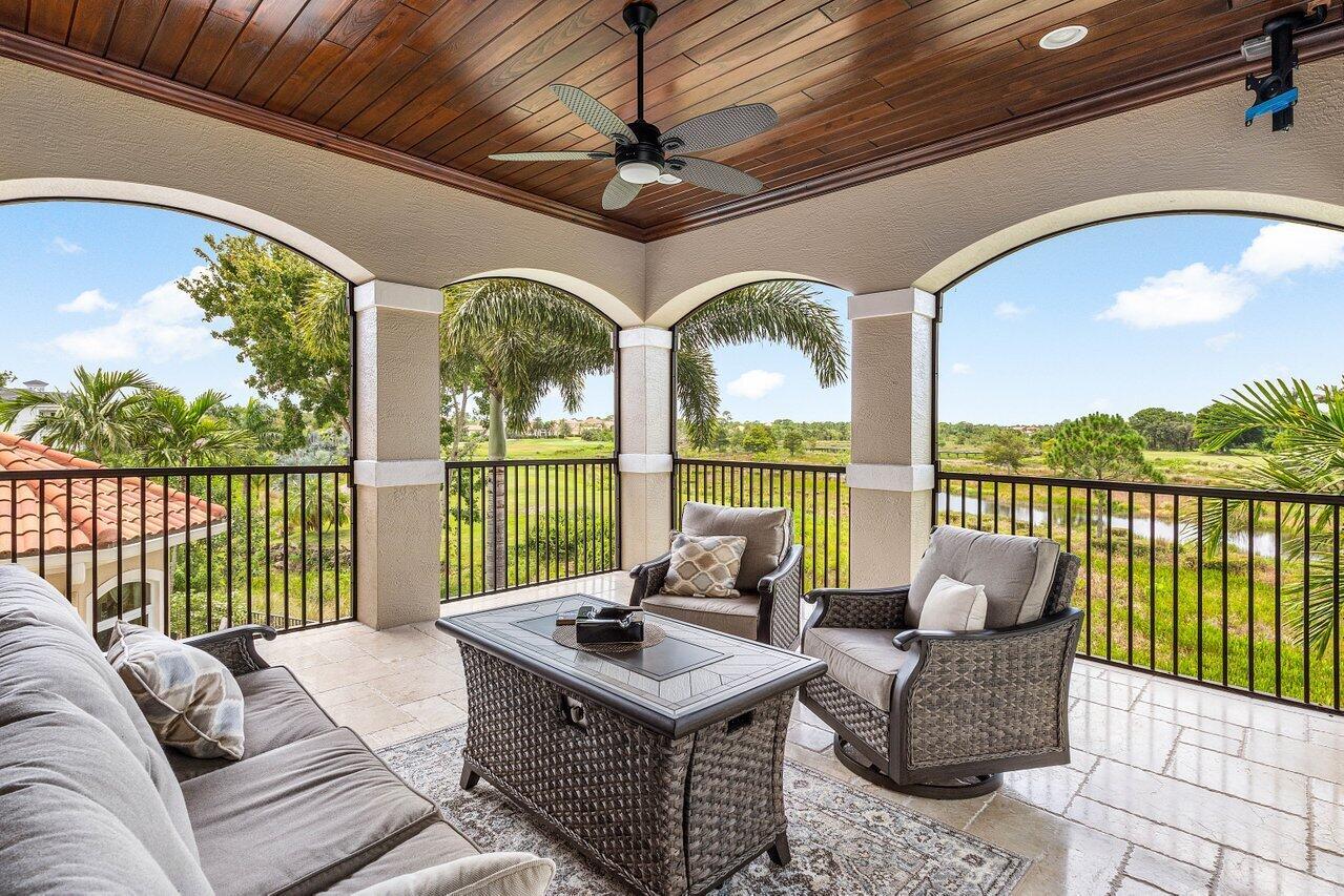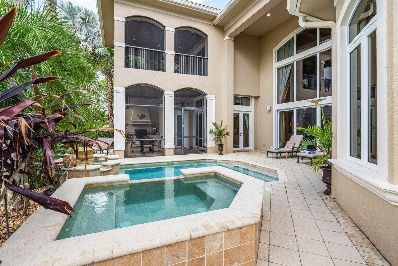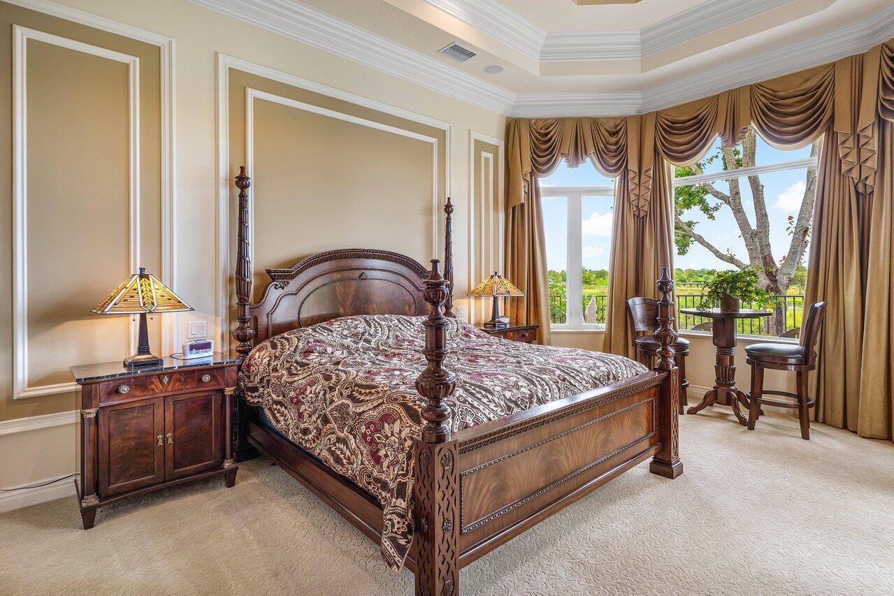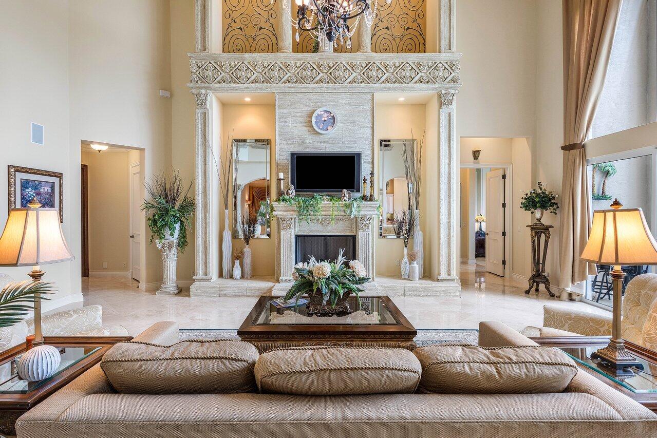 Overlooking the Tesoro River Preserve, this 2-story Custom Creation with 4 bedrooms, 4 en-suite baths, and 2 half-baths features distinctive scenic views of Water, Wildlife, Golf, and a park with moss-draped oak trees. This Spanish Revival home is a breathtaking sight, featuring soaring arched windows and entry foyer, carved wood and stone accents, 24-inch marble floors, natural stone, and abundant molding. Other distinctive details include all luxury brand appliances, a decorative Gas Fireplace, a 2nd-floor media room/Den, upstairs and downstairs laundry, a 3-zone AC system, a Whole-Home Audio System, Instant-on Hot Water, an AC Garage, a 1st-floor wet bar, and a 2nd-level breakfast bar. Enjoy the Beauty of the mature landscaping from the 2 screened-in loggias & a Heated Pool with Spa.