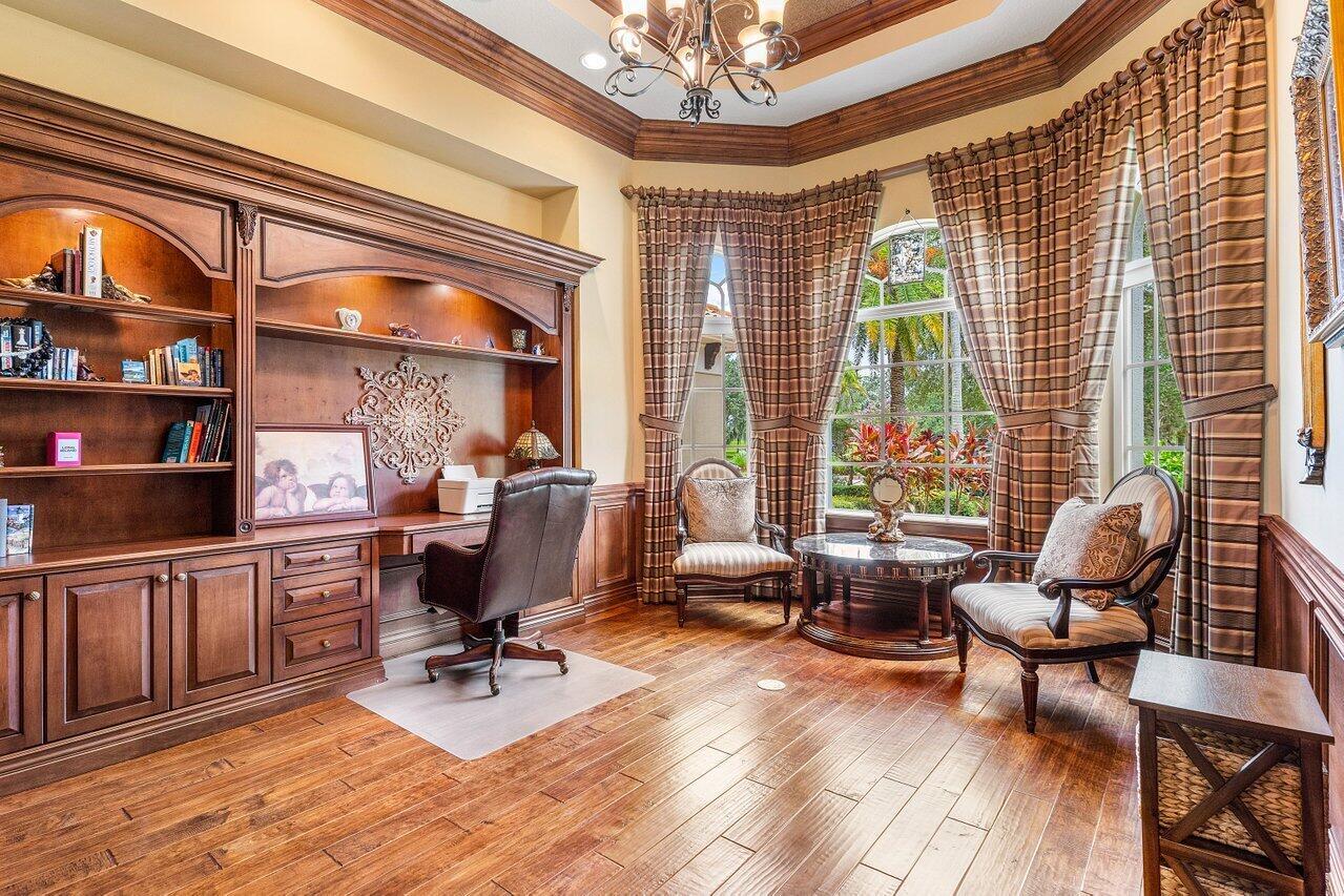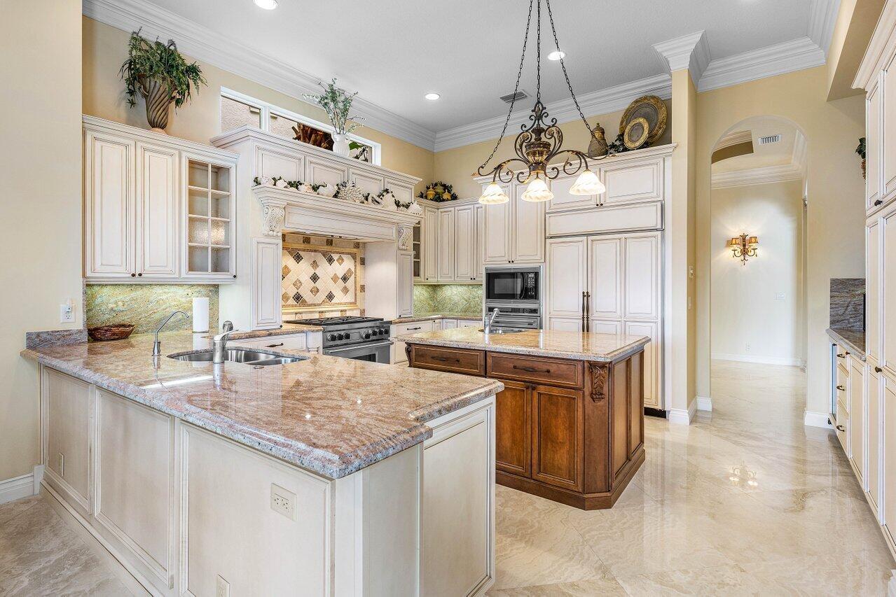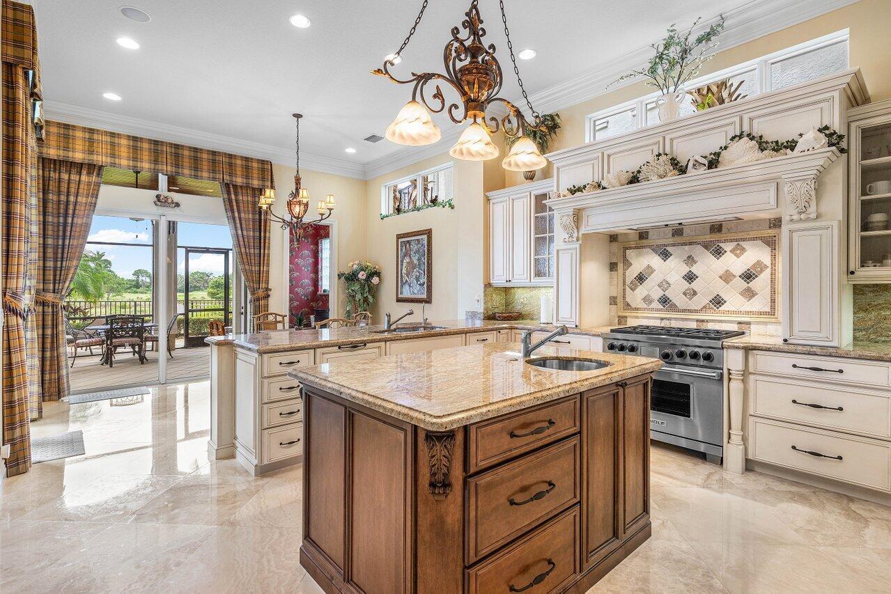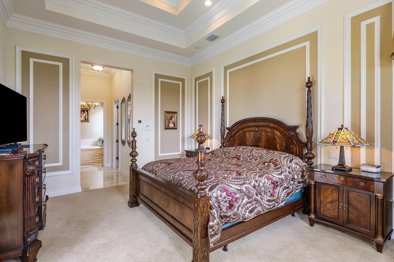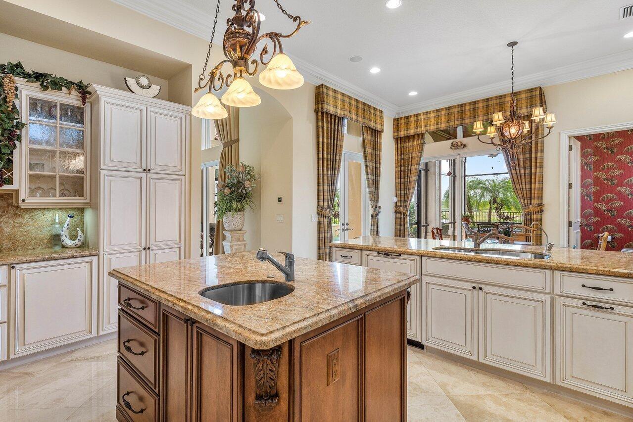 Overlooking the Tesoro River Preserve, this 2-story Custom Creation with 4 bedrooms, 4 en-suite baths, and 2 half-baths features distinctive scenic views of Water, Wildlife, Golf, and a park with moss-draped oak trees. This Spanish Revival home is a breathtaking sight, featuring soaring arched windows and entry foyer, carved wood and stone accents, 24-inch marble floors, natural stone, and abundant molding. Other distinctive details include all luxury brand appliances, a decorative Gas Fireplace, a 2nd-floor media room/Den, upstairs and downstairs laundry, a 3-zone AC system, a Whole-Home Audio System, Instant-on Hot Water, an AC Garage, a 1st-floor wet bar, and a 2nd-level breakfast bar. Enjoy the Beauty of the mature landscaping from the 2 screened-in loggias & a Heated Pool with Spa.
