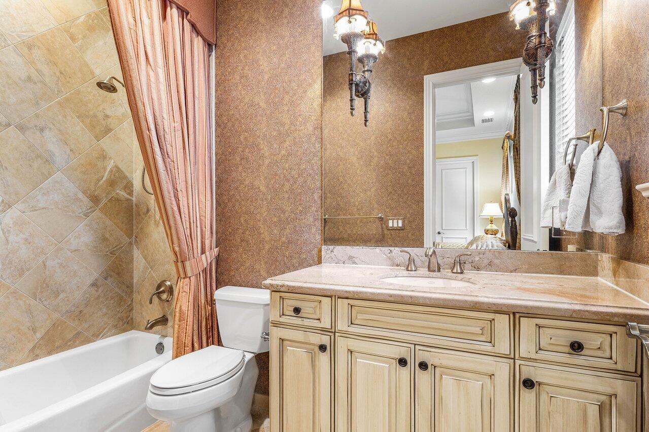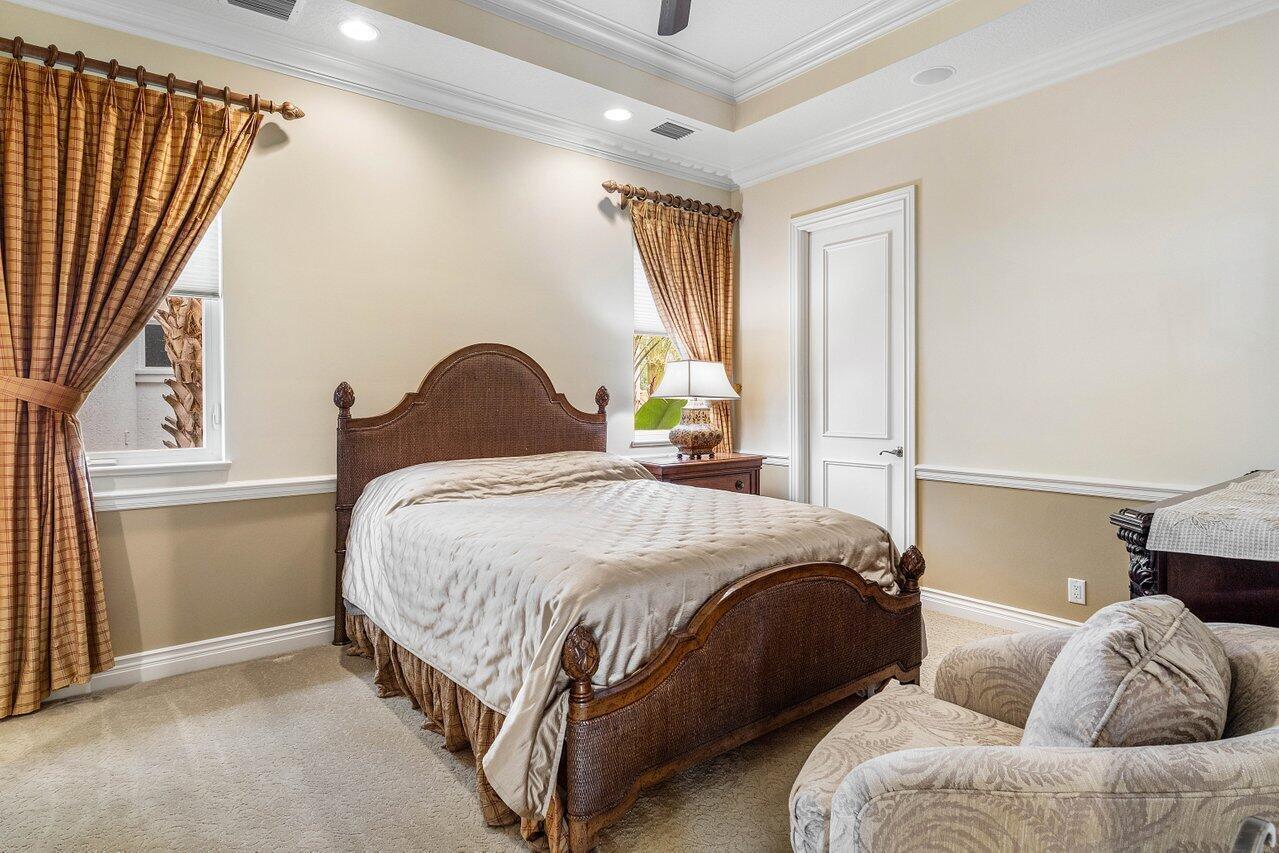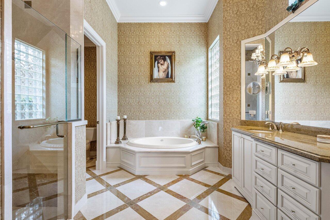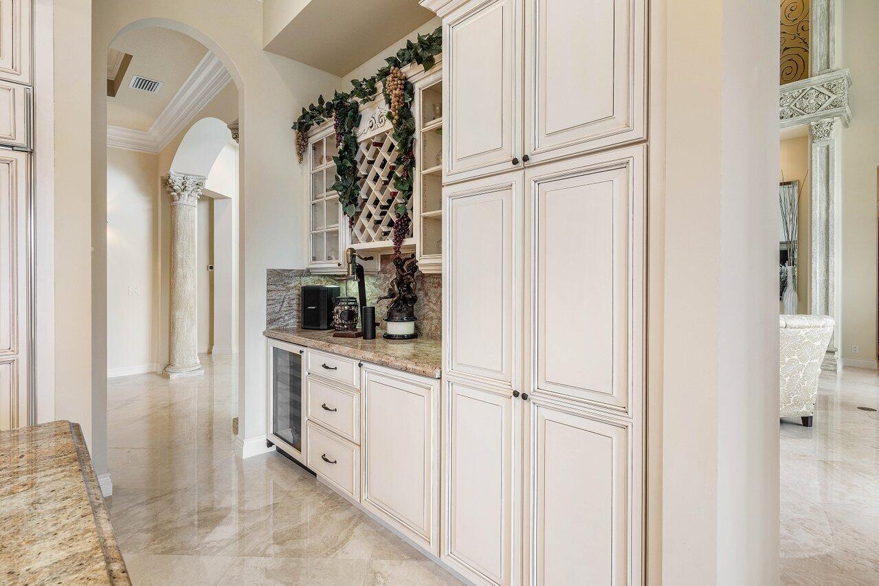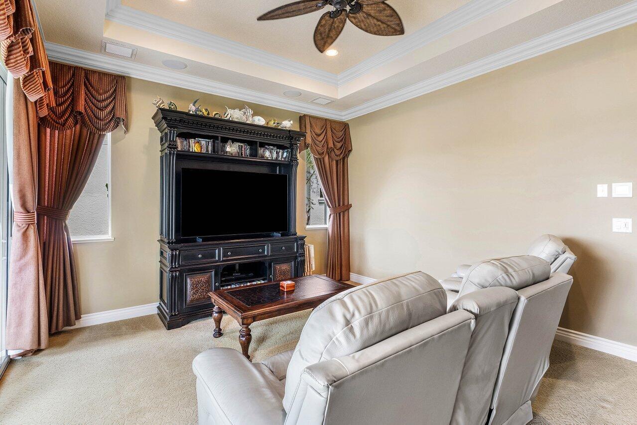 Overlooking the Tesoro River Preserve, this 2-story Custom Creation with 4 bedrooms, 4 en-suite baths, and 2 half-baths features distinctive scenic views of Water, Wildlife, Golf, and a park with moss-draped oak trees. This Spanish Revival home is a breathtaking sight, featuring soaring arched windows and entry foyer, carved wood and stone accents, 24-inch marble floors, natural stone, and abundant molding. Other distinctive details include all luxury brand appliances, a decorative Gas Fireplace, a 2nd-floor media room/Den, upstairs and downstairs laundry, a 3-zone AC system, a Whole-Home Audio System, Instant-on Hot Water, an AC Garage, a 1st-floor wet bar, and a 2nd-level breakfast bar. Enjoy the Beauty of the mature landscaping from the 2 screened-in loggias & a Heated Pool with Spa.