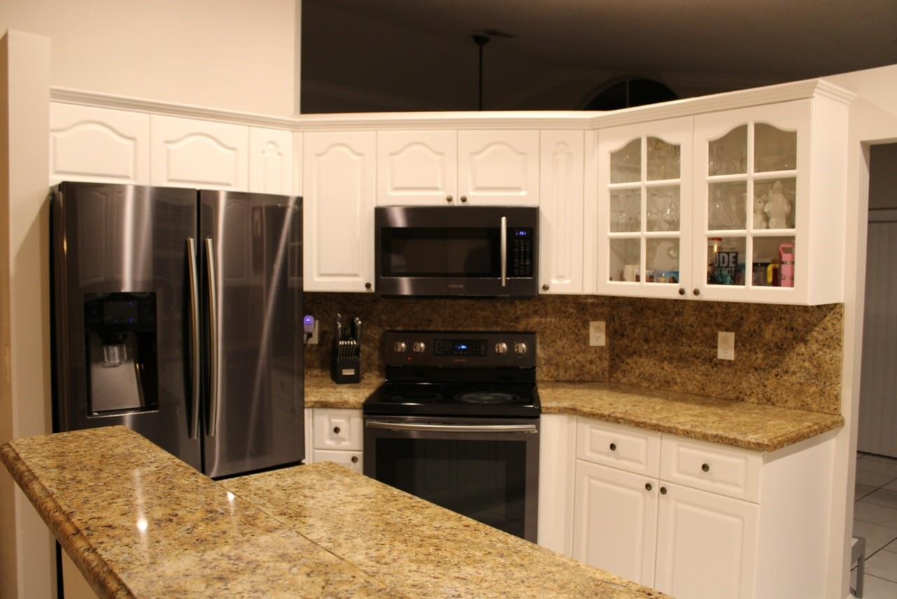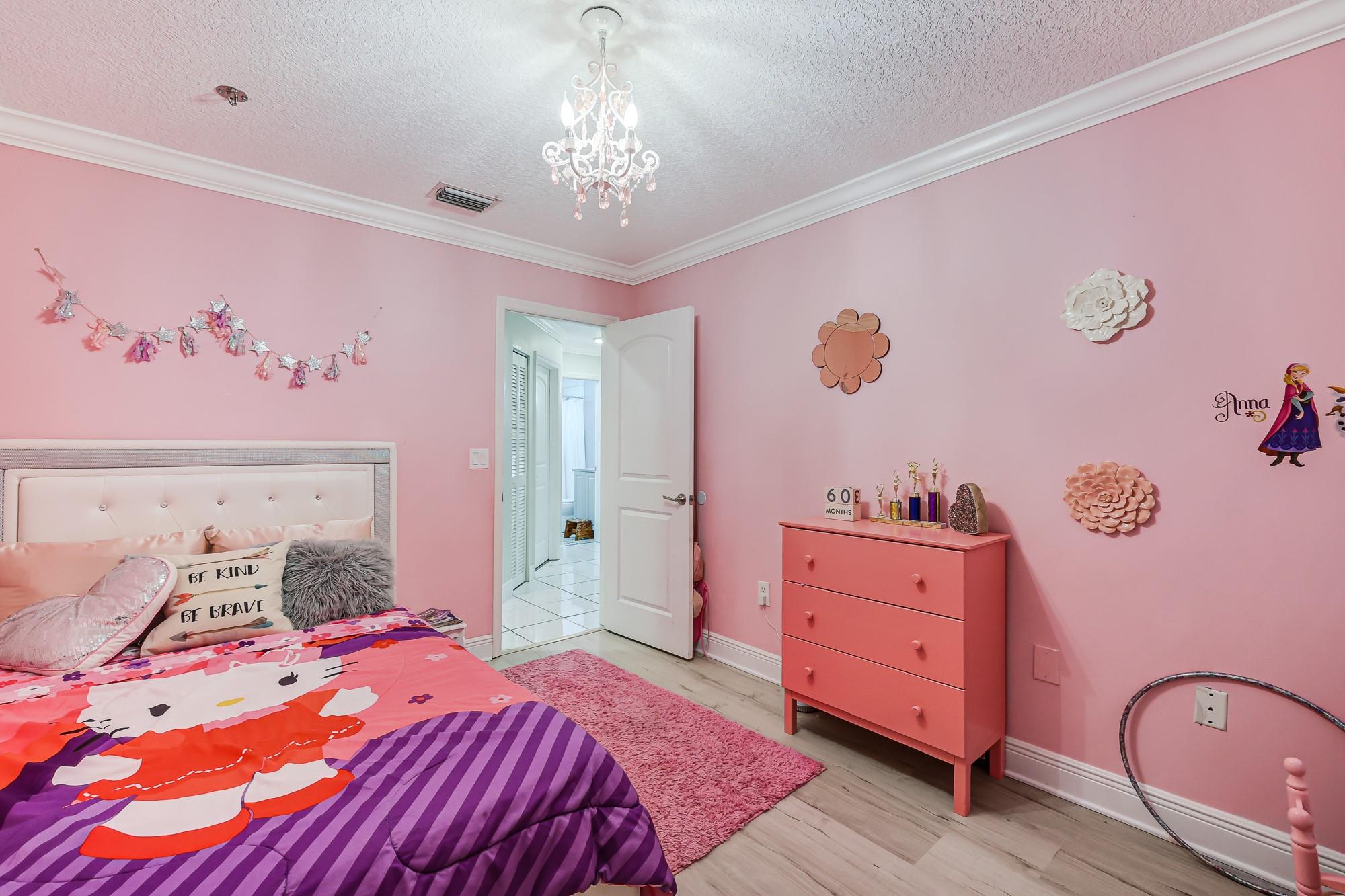 Spacious 4BR/2.5BA single-family home with 2-car garage in desirable Margate neighborhood, The Greens at Carolina—low HOA! Features include vaulted ceilings, crown molding, updated baths, ceramic tile throughout, and wood floors in bedrooms. The kitchen is being resurfaced with granite countertops. Impact-rated front and garage doors, accordion shutters, and a 2017 roof add value and security. Relax on your screened patio, taking in serene views of the golf course. Move-in ready and ideally located!
